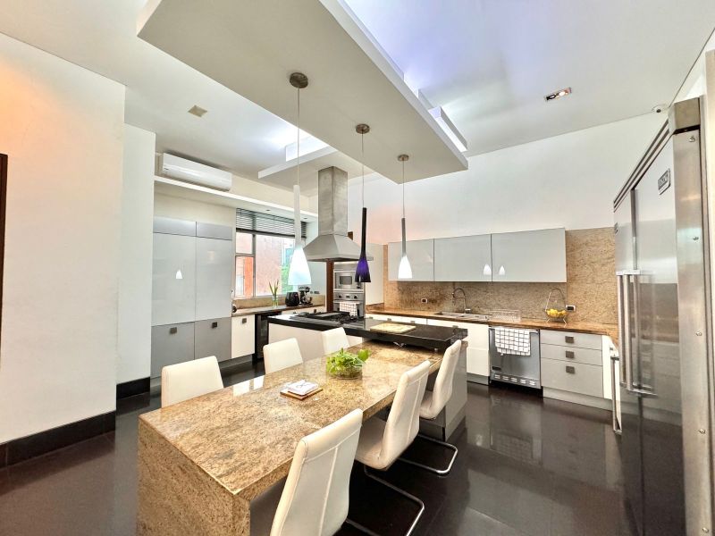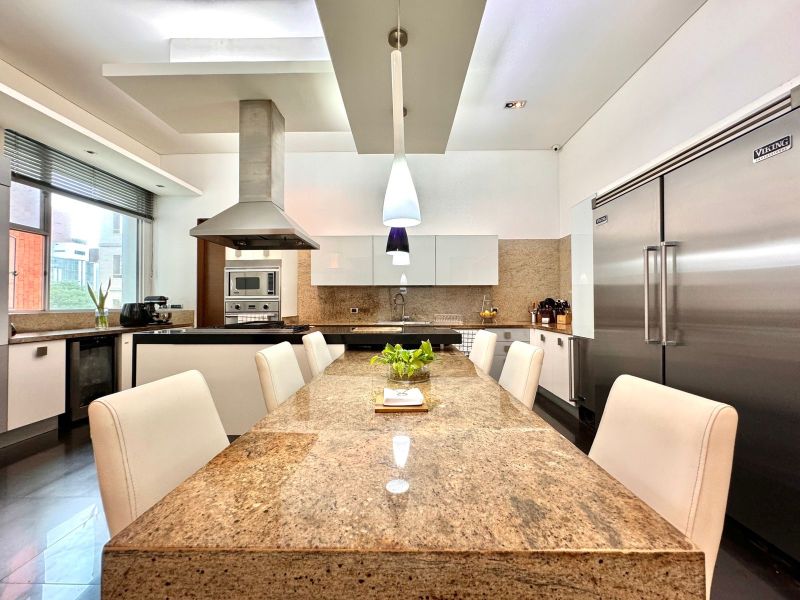 La cocina se muestra como un espacio protagónico, muy espaciosa y con una gran isla central.