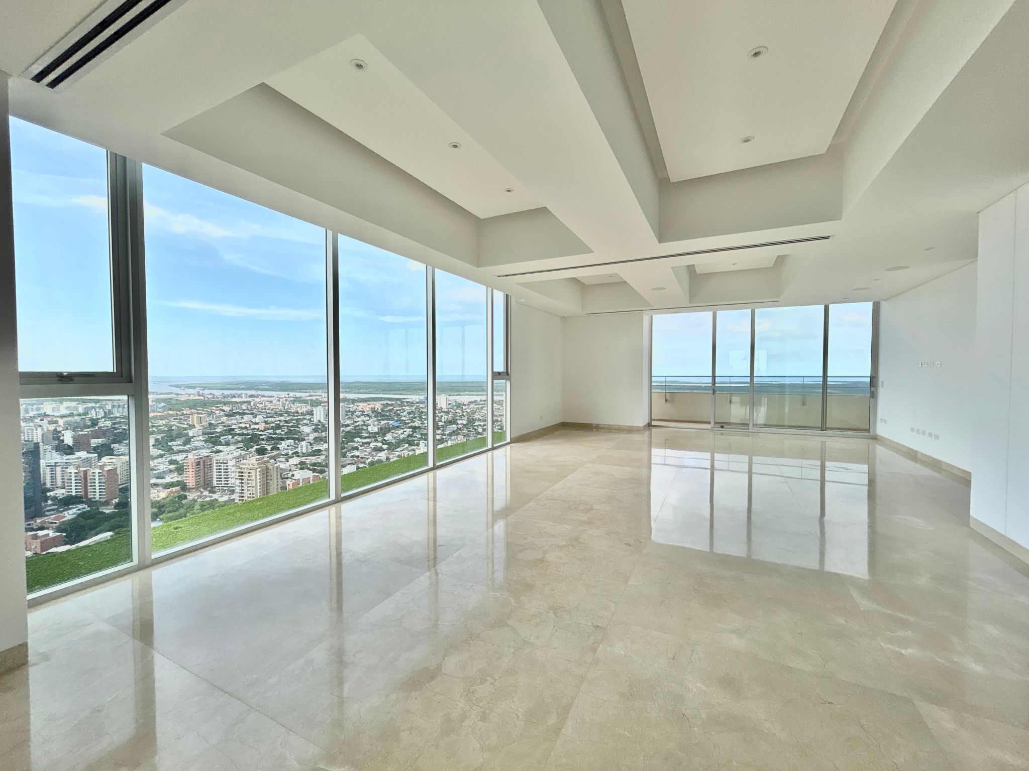 Desde el piso 39, este apartamento de lujo con un área total construida de 485.59M2 ofrece vistas panorámicas de la ciudad que parecen postales en cada ventanal.
