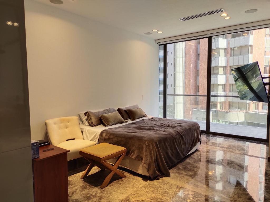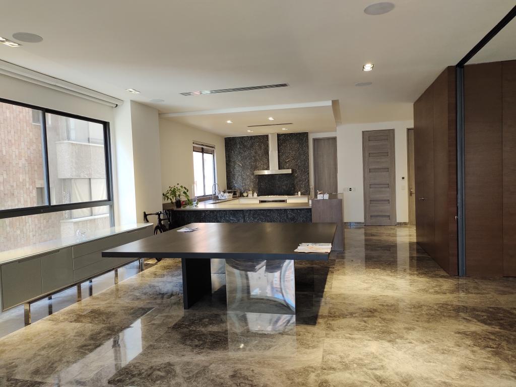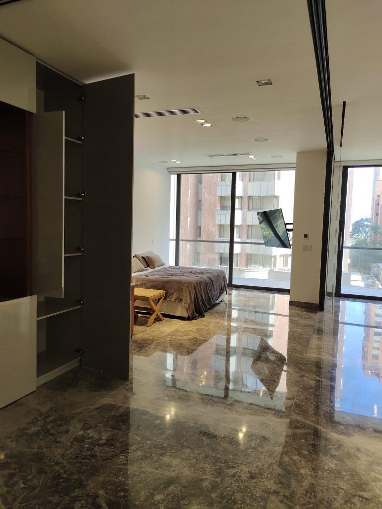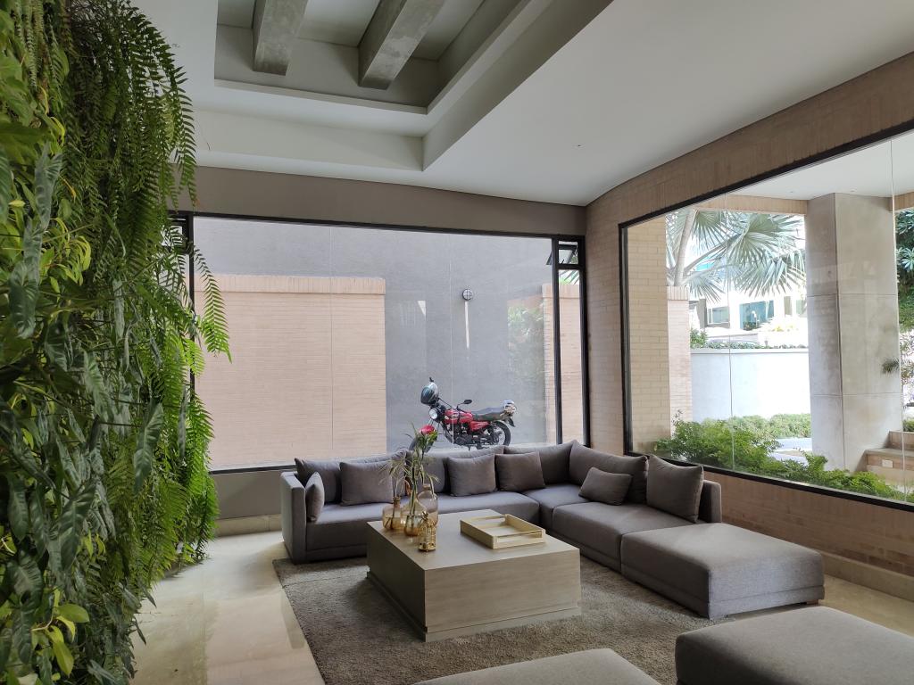 Este apartamento de 228 m² en Alto Prado responde a una estética contemporánea y coherente. Sus acabados, de buen gusto, se integran con una atmósfera donde la luz y la limpieza de los espacios construyen un ambiente sereno y bien logrado. La altura de 3.20M amplía la percepción del espacio, mientras el mármol italiano en los pisos y el balcón en porcelanato español aportan continuidad y equilibrio. La zona social se abre con naturalidad hacia el exterior, en una transición que privilegia el uso cotidiano sobre lo aparente. La tecnología está presente sin imponerse: domótica integral, aire central y sonido acompañan el día a día. El proyector de cine y su pantalla suman un matiz más íntimo al área social. La cocina abierta, equipada con Miele, Viking y Wolf, se integra con soltura, respaldada por una zona de labores generosa, junto con cuarto y baño de servicio. En el área privada, la habitación principal ofrece amplitud, baño y vestier tipo walk-in. La habitación de huéspedes mantiene el mismo estándar, con baño y vestier. Se entrega con una dotación que hace parte del conjunto: nevera Sub-Zero, lavadora, secadora, calentador de agua, televisores en cada habitación, jacuzzi, comedor y bife. El edificio, con su fachada en ladrillo a la vista y acera en sombra, se ubica a pocos metros del Parque Rosado, en un entorno consolidado. Dos parqueaderos en línea y un depósito completan la propiedad.