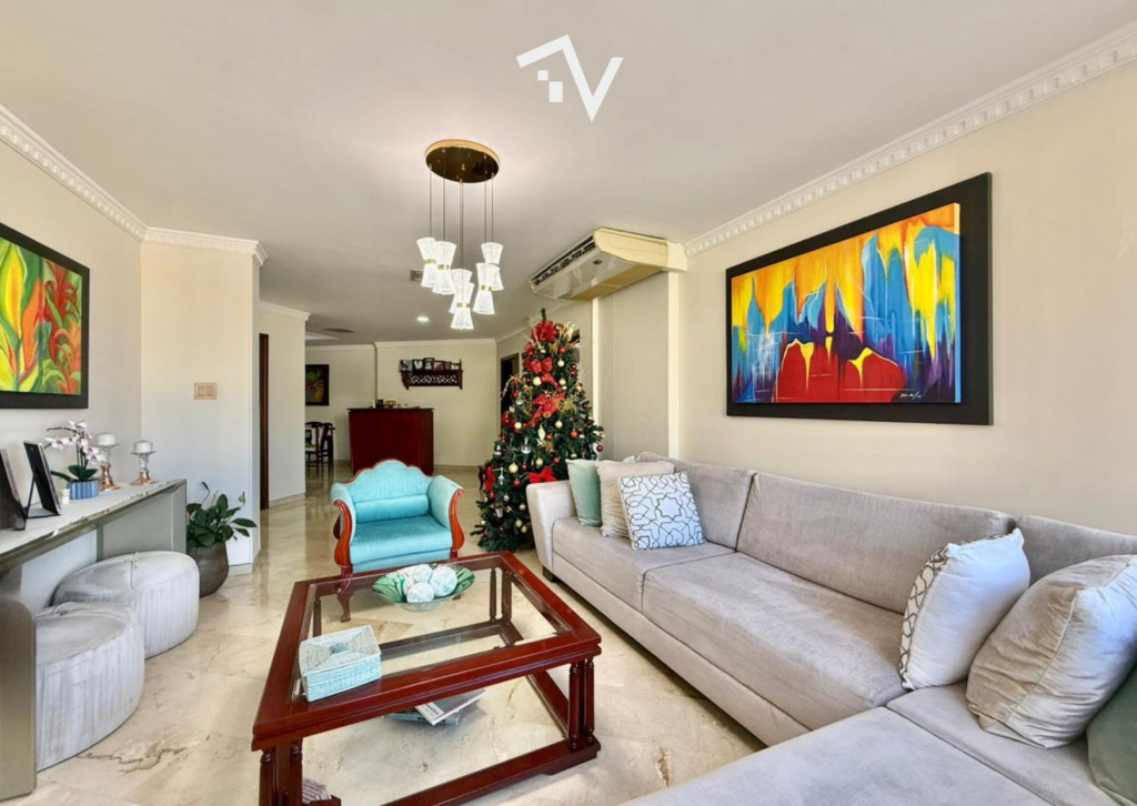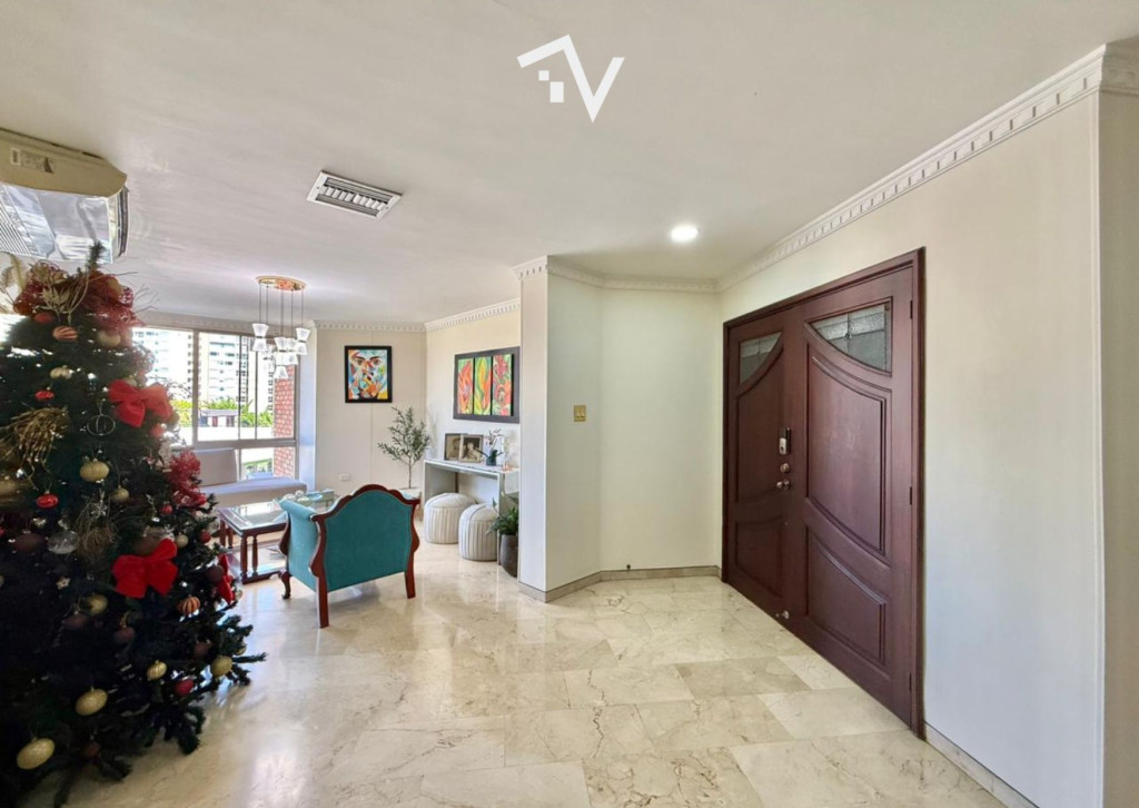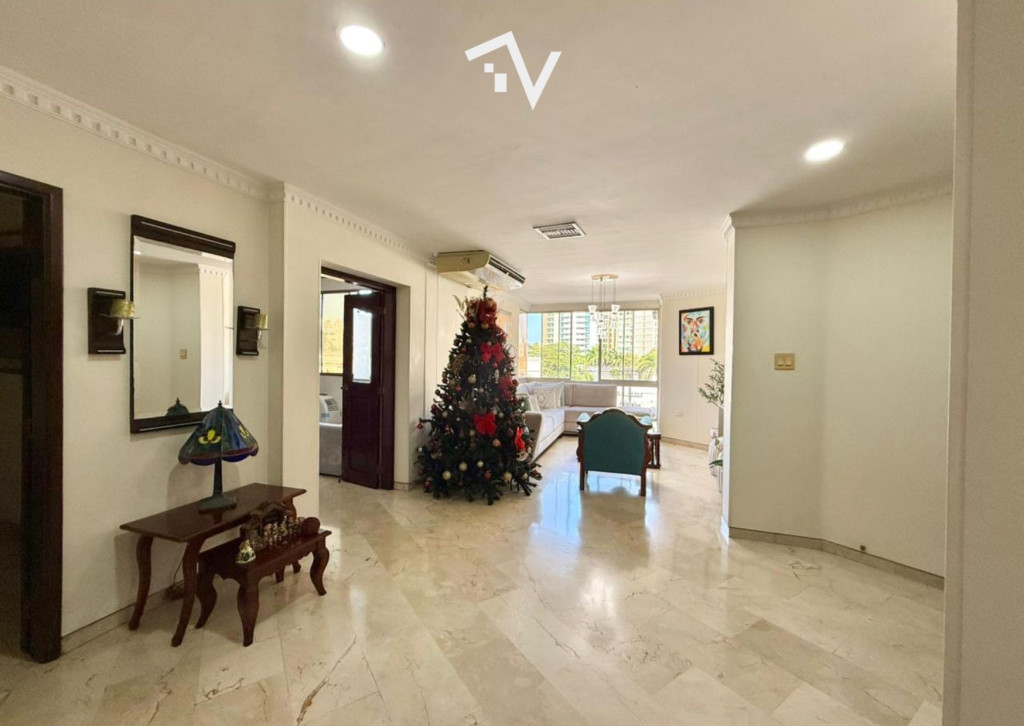 Un apartamento de 180 m² ubicado justo en el punto donde El Golf y Riomar se encuentran, combinando tradición, amplitud y una distribución pensada para vivir bien. Hace parte de un edificio clásico de fachada en ladrillo, sólido y discreto, con solo 20 apartamentos (dos por piso), lo que garantiza una convivencia tranquila. Cuenta con gimnasio, terraza con BBQ en el último piso, parque infantil y zona ajardinada en el primer nivel, ascensor y planta eléctrica para zonas comunes. El interior privilegia los espacios amplios y bien definidos: una zona social abierta y fluida, ideal para la vida diaria y el recibir, comedor independiente, estudio y baño social. La zona privada ofrece tres habitaciones, todas con baño, destacándose la principal con balcón privado. La cocina es cerrada y generosa en tamaño, acompañada de zona de labores, despensa, cuarto y baño de servicio. Los pisos en mármol aportan carácter y continuidad a los espacios. Incluye dos parqueaderos. Un apartamento que no busca llamar la atención, sino convencer por su solidez, ubicación y forma de habitarlo.