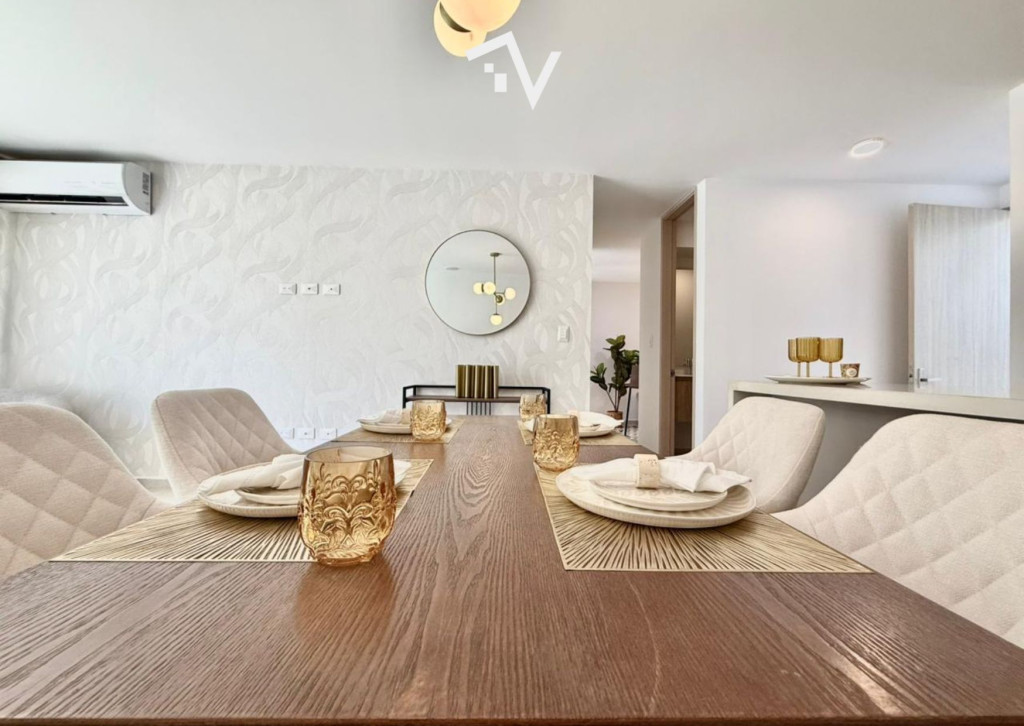 ARTEK MAR: TU PARAÍSO PRIVADO EN ALTOS DE LOS ROSALES Un apartamento diseñado para quienes buscan estilo, comodidad y proyección. Con 90.36 m² construidos y 80.80 m² privados, ofrece una sala-comedor que se abre al balcón social, cocina abierta, área de labores, y tres habitaciones muy bien distribuidas: la principal con vestier y baño privado, y las otras dos con clóset, compartiendo un baño en pasillo que también funciona como baño social. Cuenta además con balcón técnico para minisplit, un parqueadero y un depósito. Su ubicación en Altos de los Rosales lo convierte en una excelente oportunidad de inversión, en un sector en transformación y a solo cinco minutos del futuro Ecoparque Ciénaga de Mallorquín. El proyecto está compuesto por dos torres y 440 apartamentos, con parqueaderos subterráneos y un club house que eleva la experiencia residencial: dos salones sociales, gimnasio, sala de cine, salón de juegos, business center, spa con sauna y turco, dos piscinas, solárium, amplias zonas húmedas, jardines, plazoletas, pet-park, juegos infantiles, máquinas biosaludables, cancha múltiple y más de 3.500 m² de zonas verdes. Todo complementado por planta eléctrica de suplencia total. El precio incluye parqueadero y depósito.