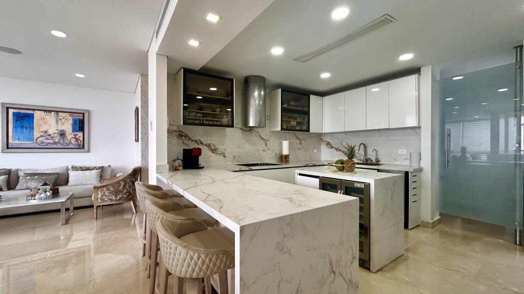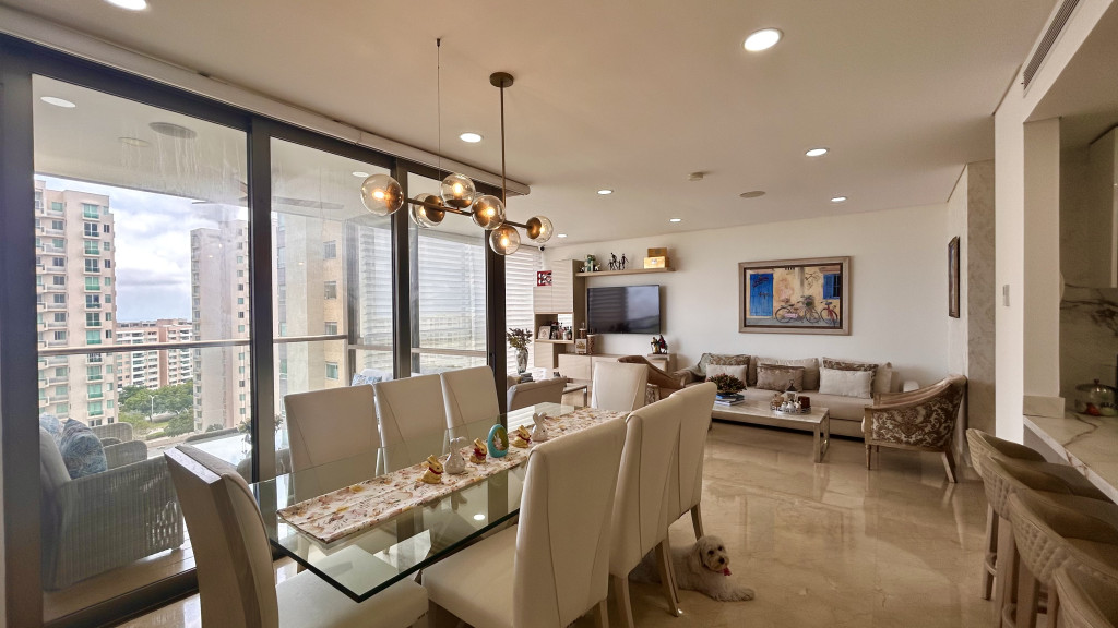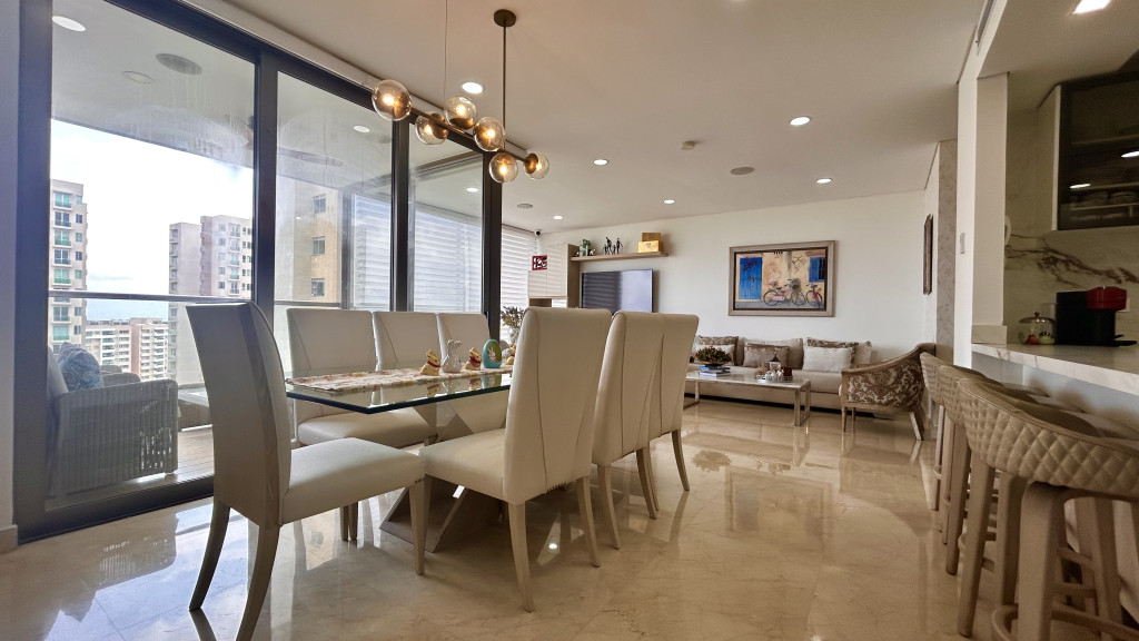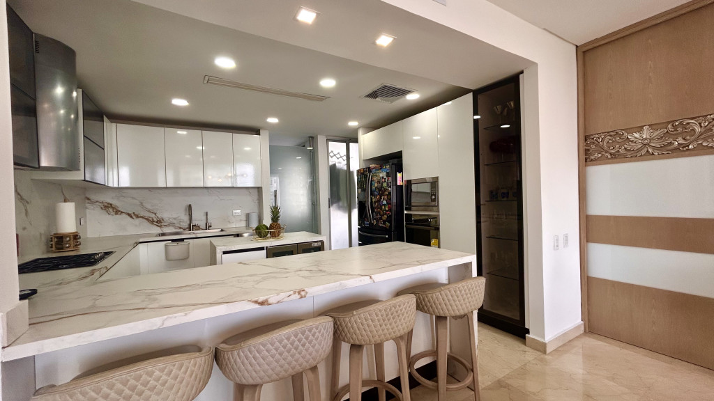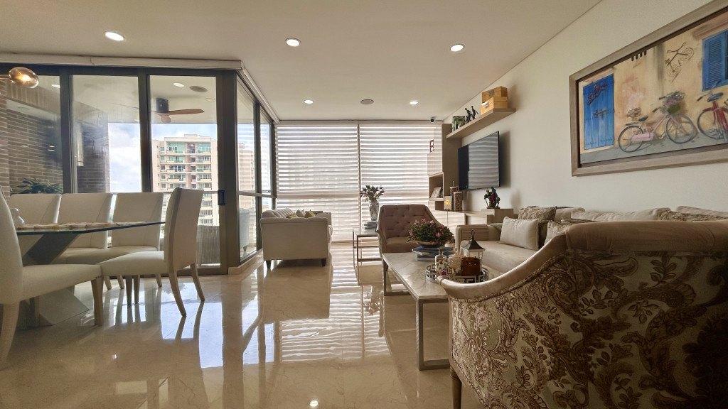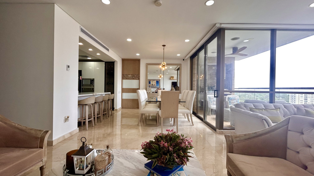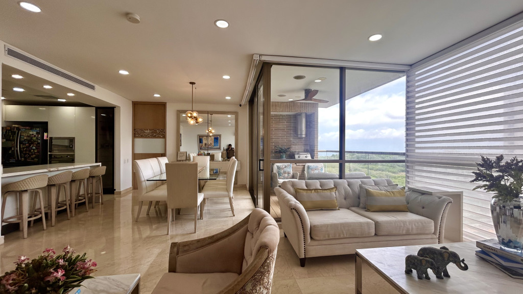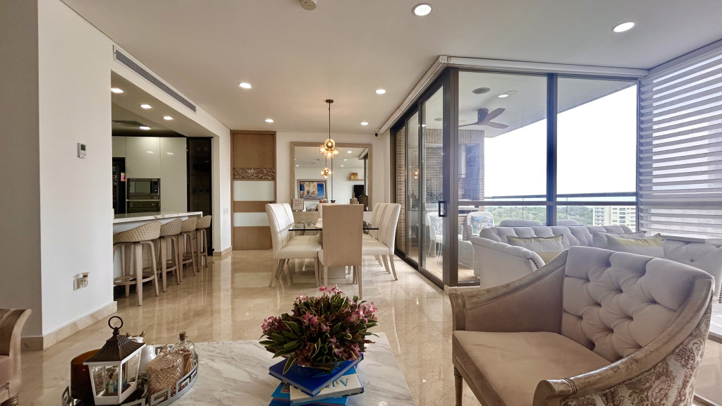 Domótica, lujo y vista al río en una de las mejores ubicaciones de Barranquilla. Un apartamento donde la tecnología eleva tu estilo de vida: controla luces, sonido, cámaras, puerta principal y TV de la habitación principal desde un sistema integrado, todo incluido dentro de un espacio con acabados premium y una vista privilegiada hacia el río y la Ciénaga de Mallorquín. Ubicado en el exclusivo Boulevard de Buenavista, uno de los sectores de mayor valorización y demanda de la ciudad, rodeado de parques, zonas verdes y muy cerca de los principales centros comerciales como Centro Comercial Buenavista, Mallplaza Buenavista y Plaza del Parque. El conjunto residencial ofrece amenidades completas para disfrutar cada día: piscina, gimnasio, cancha múltiple, salón social, vigilancia 24 horas y planta eléctrica de suplencia total. Además, el apartamento fue mejorado con pisos en mármol, cocina con isla central, cava de vinos e ice-maker empotrado.