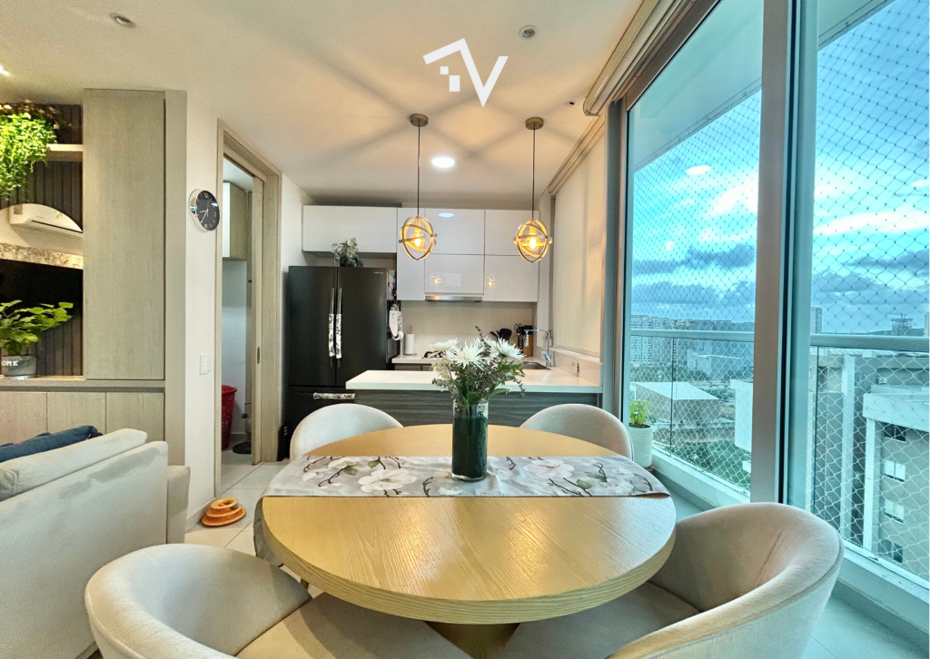 Te despiertas y lo primero que ves es la luz entrando por un balcón que rodea todo el apartamento. Estás en el lado sombra, con la brisa perfecta y un ambiente fresco para empezar el día. Apartamento en venta de 73 m² en conjunto cerrado. Cuenta con 2 habitaciones, la principal con baño privado, y un baño completo en pasillo que alterna como baño social, cocina integral abierta, área de labores y un balcón perimetral que conecta con cada espacio, dándole amplitud y luz natural a todo el hogar. Incluye 2 parqueaderos lineales, depósito y acceso a zonas comunes como piscina, salón social y turco. Un lugar pensado para tu comodidad, en un entorno tranquilo y bien ubicado. ¿Listo para conocerlo?