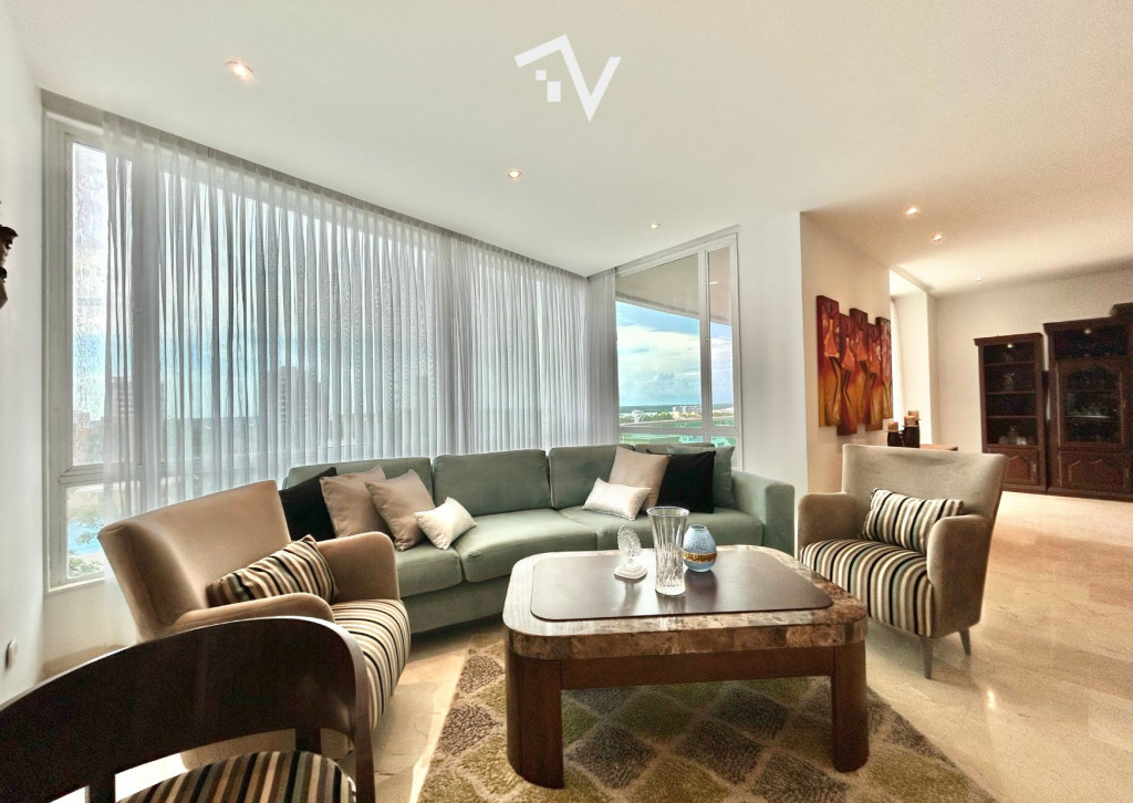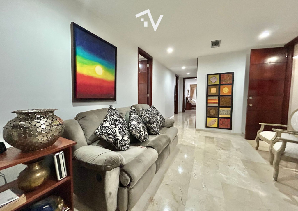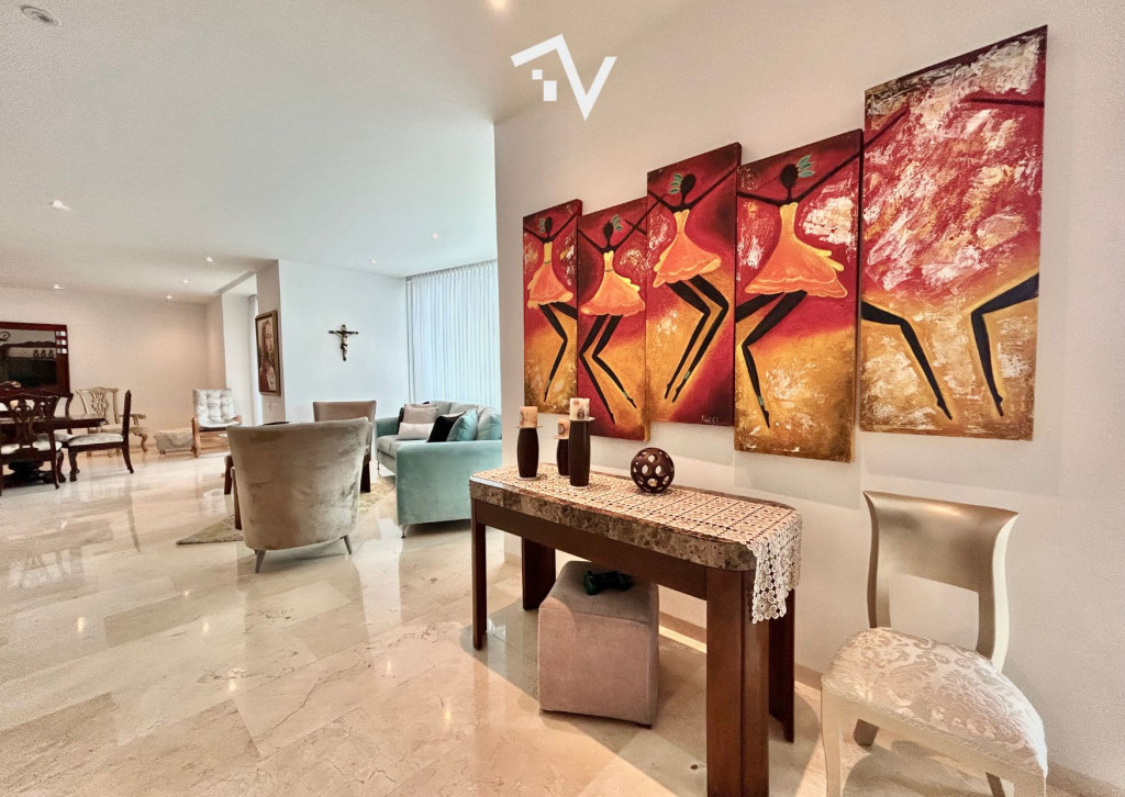 En una de las cuadras más codiciadas del barrio El Golf de Barranquilla, en la acera sombra, se levanta un edificio sobrio y exclusivo: apenas 17 apartamentos, cada uno ocupando un piso entero. Allí, este apartamento de 340 m² se convierte en un refugio donde es posible escapar del bullicio y sumergirse en la calma y la intimidad de un mundo propio. El ascensor privado conduce directamente al recibo, mientras un segundo elevador discreto conecta con el área de servicio. Los pisos de mármol imponen la atmósfera de un hogar concebido para quienes saben reconocer el valor de cada detalle. La sala principal, bañada de luz, se prolonga hacia un balcón y se integra con un estudio y un comedor independiente. Tres habitaciones tipo suite, cada una con baño y vestier, completan la zona privada. La cocina, revestida en porcelanato, se enlaza con el área de labores y el cuarto-baño de servicio en un trazo que combina sencillez y funcionalidad. Dos balcones abren la mirada hacia la ciudad y permiten habitarla con su luz cambiante, y tres parqueaderos lo complementan. El edificio, de 17 pisos, dispone de planta eléctrica de suplencia total y un salón social reservado. Aquí no se trata solo de un lugar para vivir: se trata de pertenecer a un círculo reducido, donde la privacidad y la distinción marcan la diferencia.