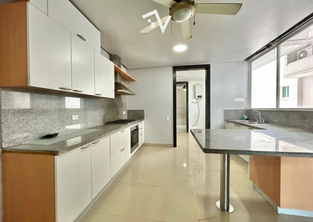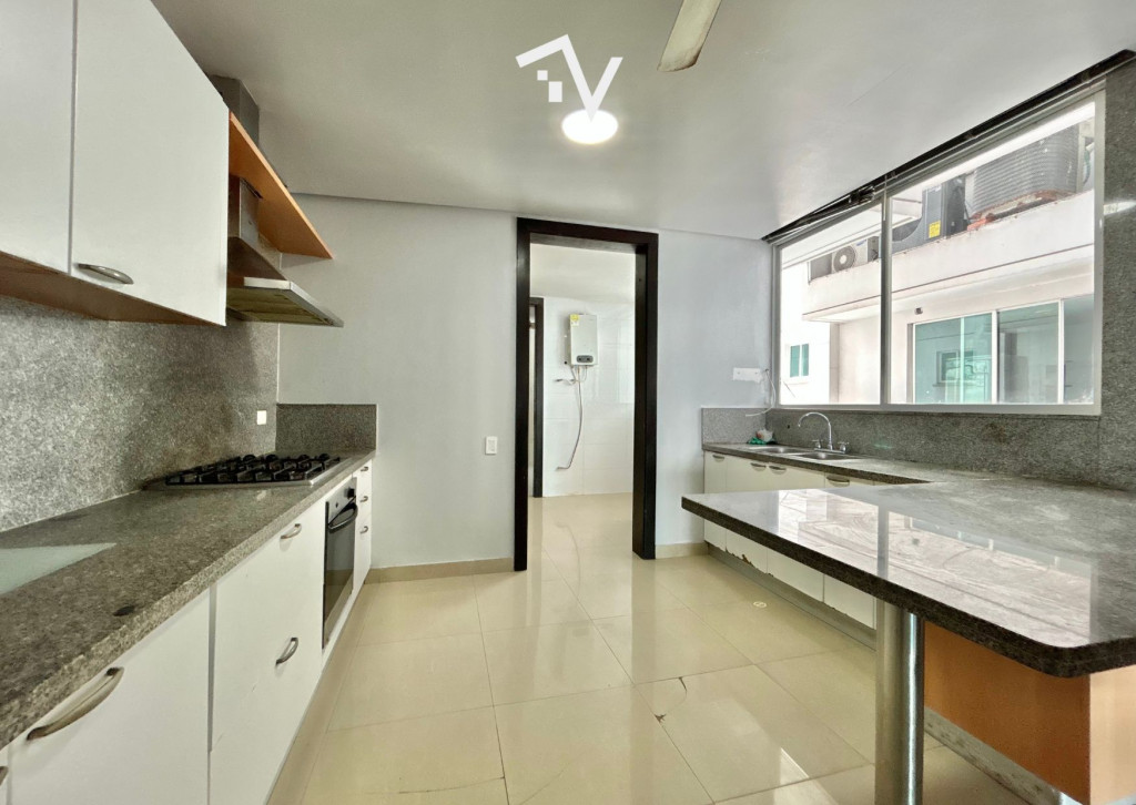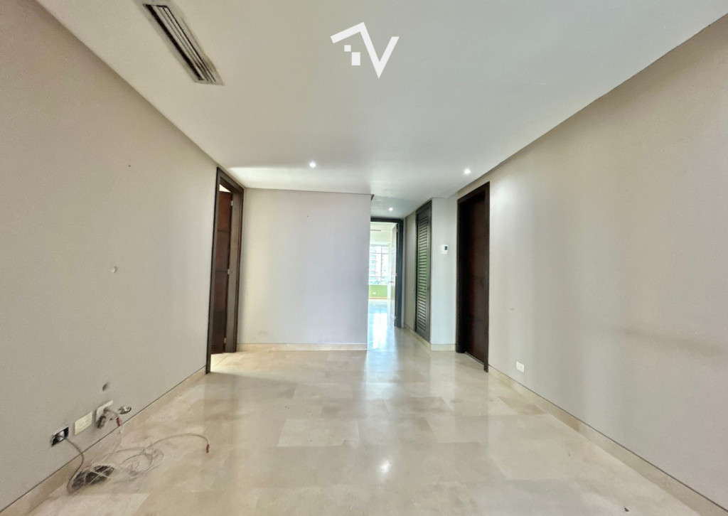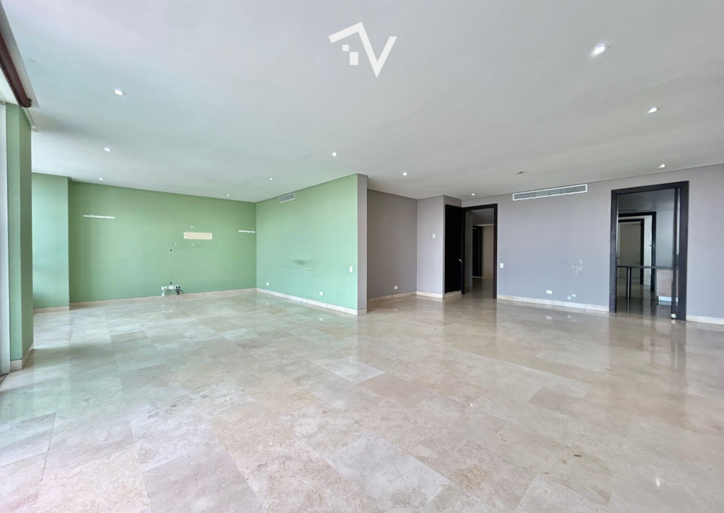 Apartamento de 269M2 para remodelar en una de las mejores cuadras de el barrio El Golf de Barranquilla. Excelente distribución, ascensor entrega directamente al apartamento a un amplio recibidor, el área social está distribuida en sala, comedor, baño social, cocina cerrada muy amplia, con zona de labores, alcoba y baño de servicio, tres alcobas con espacios generosos, cada una con baño interno y vestier. El apartamento está ubicado dentro de un edificio de 17 pisos, dos apartamentos por piso, dos ascensores, salón social, parque infantil, planta eléctrica con suplencia total y cuarto para escoltas. Suficientes parqueaderos para visitantes.