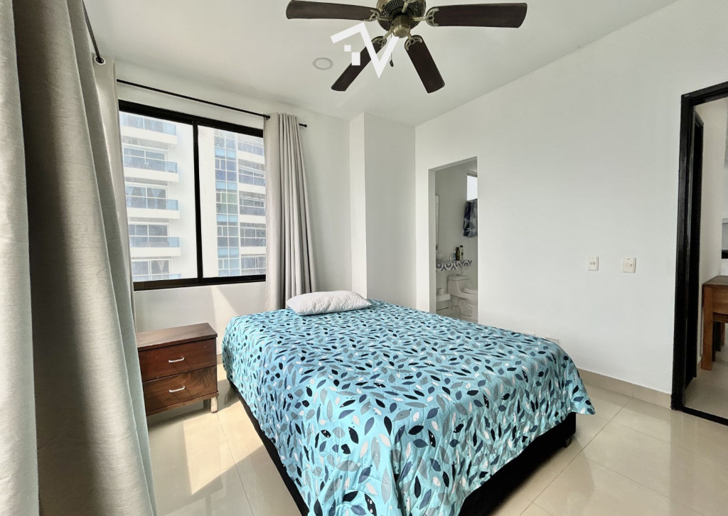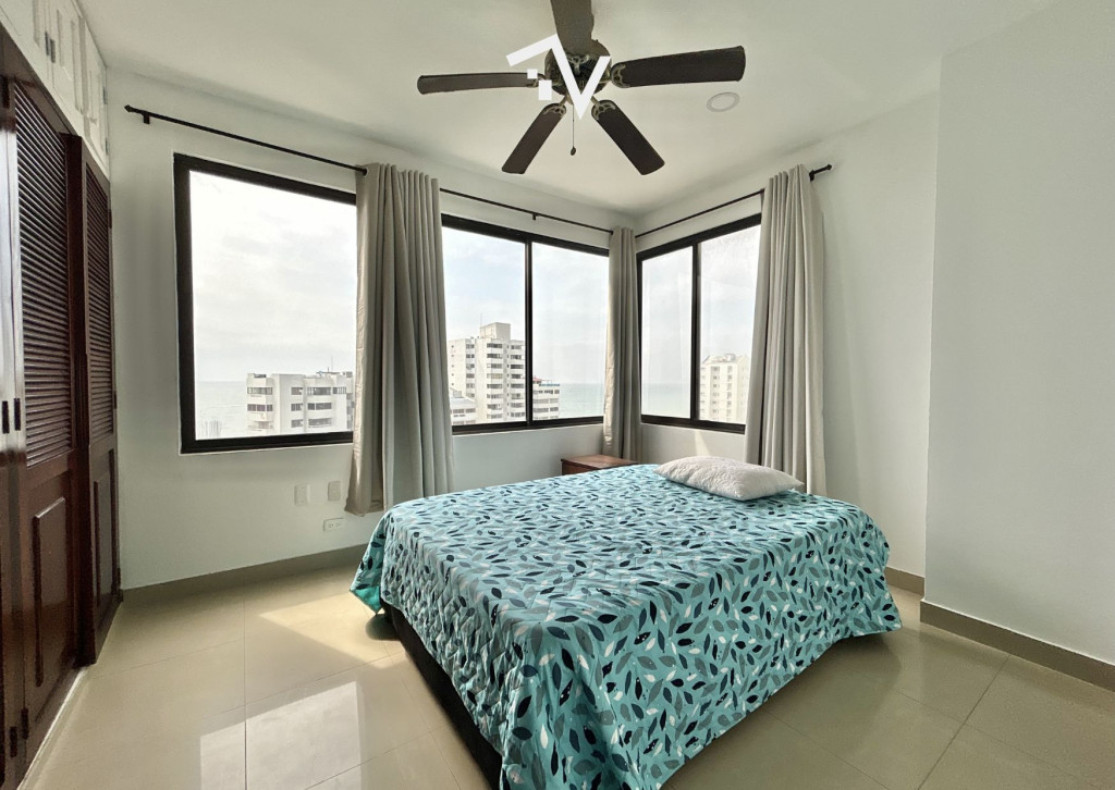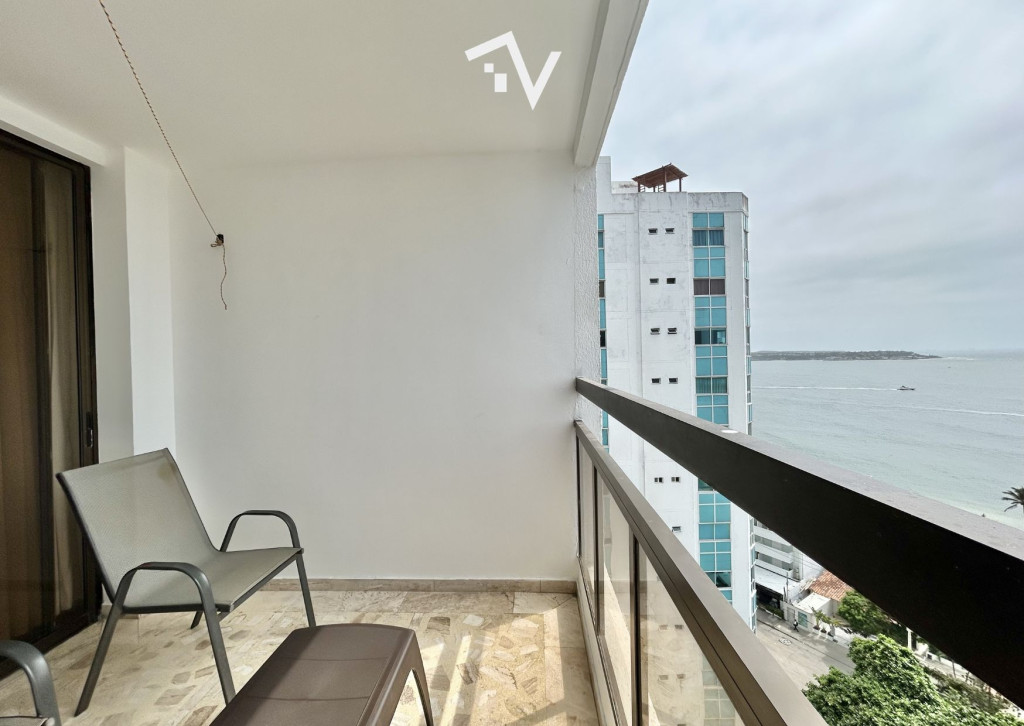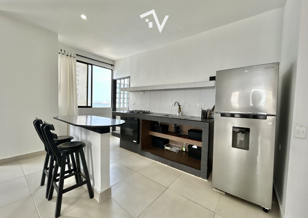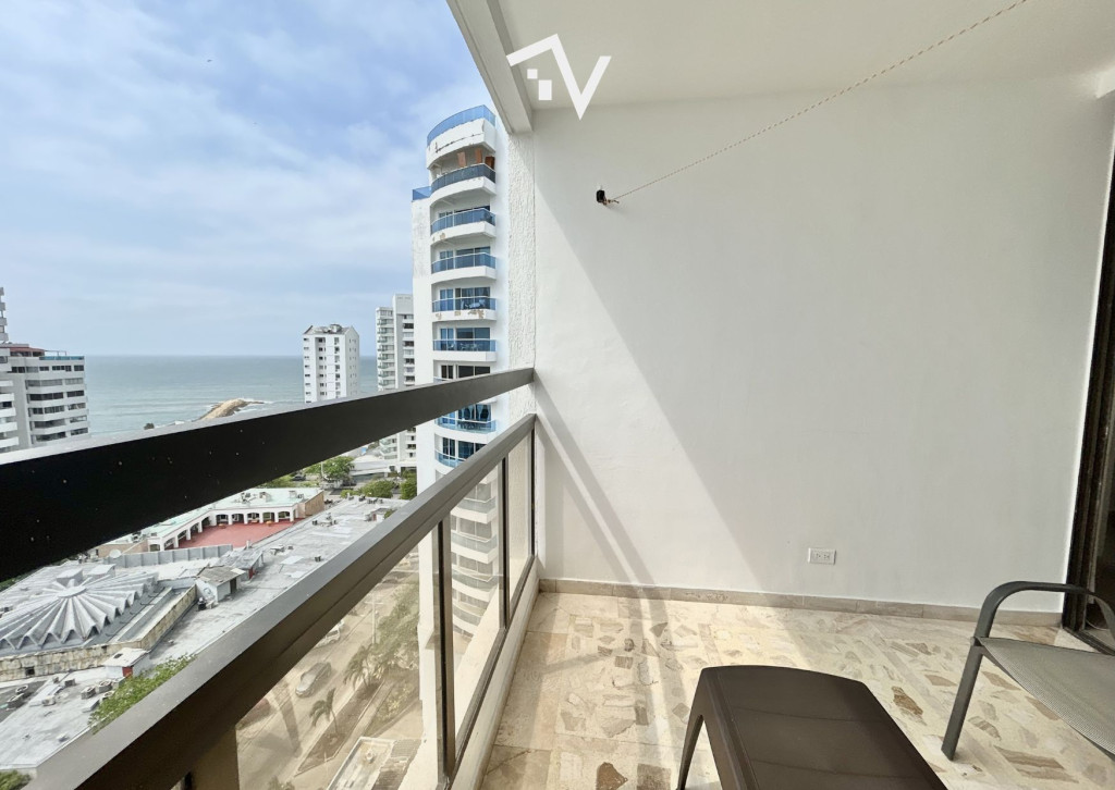 Apartamento con vista hacia Bocagrande, en el tradicional sector de El Laguito. Este apartamento amoblado de 80 m², completamente remodelado, se encuentra en un edificio de aproximadamente 30 años de construcción y se vende tal como se aprecia en las fotografías, listo para habitar o destinarlo a renta. Desde el piso 12, la vista despejada y la brisa marina se integran de forma natural al espacio. Cuenta con una sola habitación amplia, con baño interno, ofreciendo una distribución cómoda y privada, con un segundo baño que completa al apartamento. El área social se conecta directamente con el balcón, permitiendo que la luz y el paisaje sean protagonistas sin excesos. El edificio dispone de piscina, salón social, turco, jacuzzi y ascensor. Su ubicación estratégica facilita el acceso a comercio, restaurantes y servicios, manteniendo siempre la cercanía al mar como su mayor atractivo.