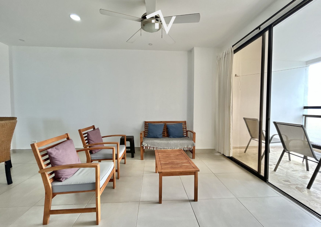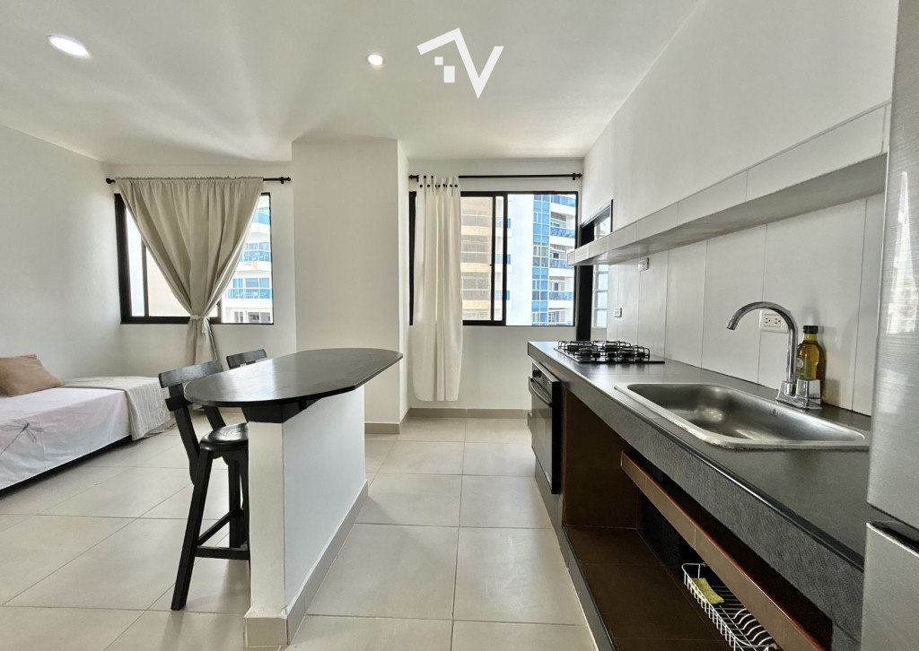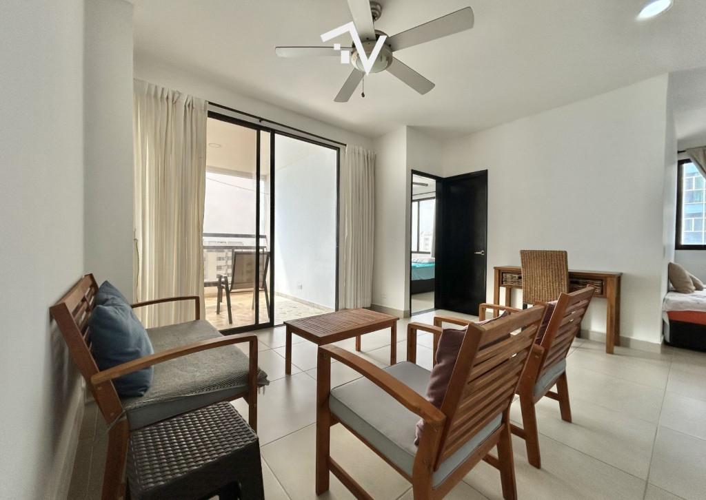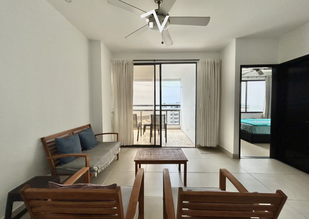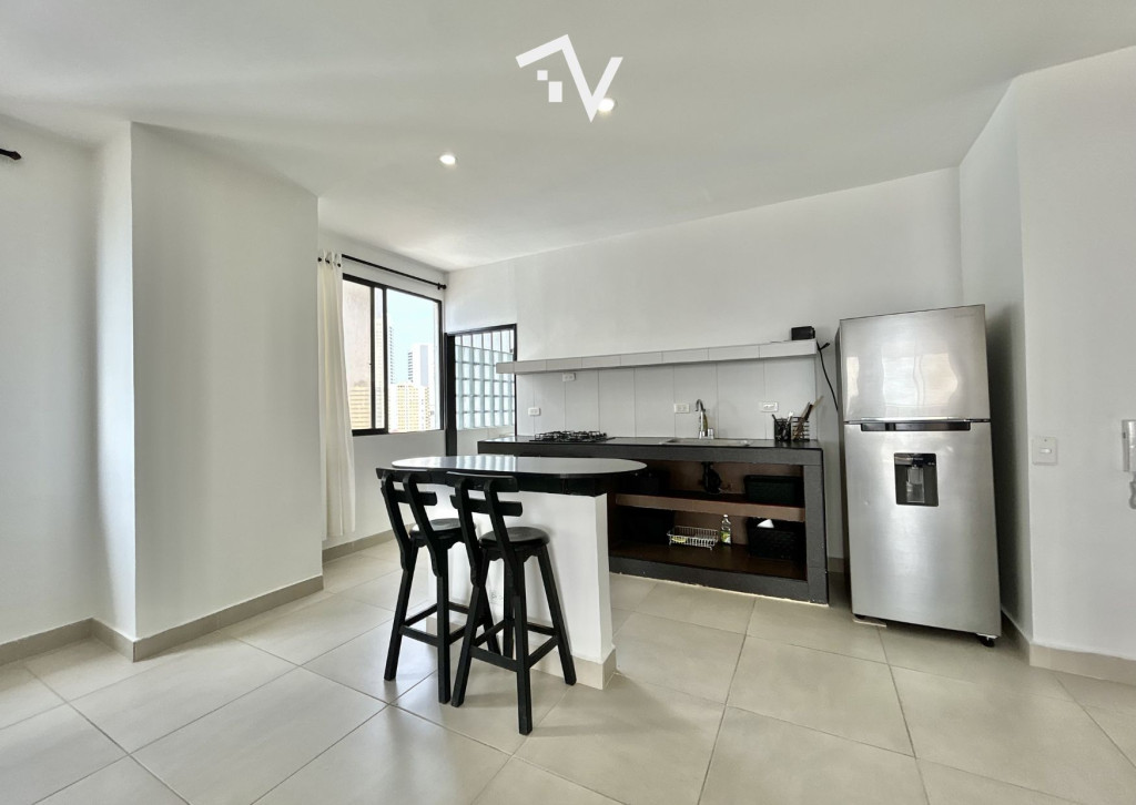 Apartamento con vista hacia Bocagrande, en el tradicional sector de El Laguito. Este apartamento amoblado de 80 m², completamente remodelado, se encuentra en un edificio de aproximadamente 30 años de construcción y se vende tal como se aprecia en las fotografías, listo para habitar o destinarlo a renta. Desde el piso 12, la vista despejada y la brisa marina se integran de forma natural al espacio. Cuenta con una sola habitación amplia, con baño interno, ofreciendo una distribución cómoda y privada, con un segundo baño que completa al apartamento. El área social se conecta directamente con el balcón, permitiendo que la luz y el paisaje sean protagonistas sin excesos. El edificio dispone de piscina, salón social, turco, jacuzzi y ascensor. Su ubicación estratégica facilita el acceso a comercio, restaurantes y servicios, manteniendo siempre la cercanía al mar como su mayor atractivo.
