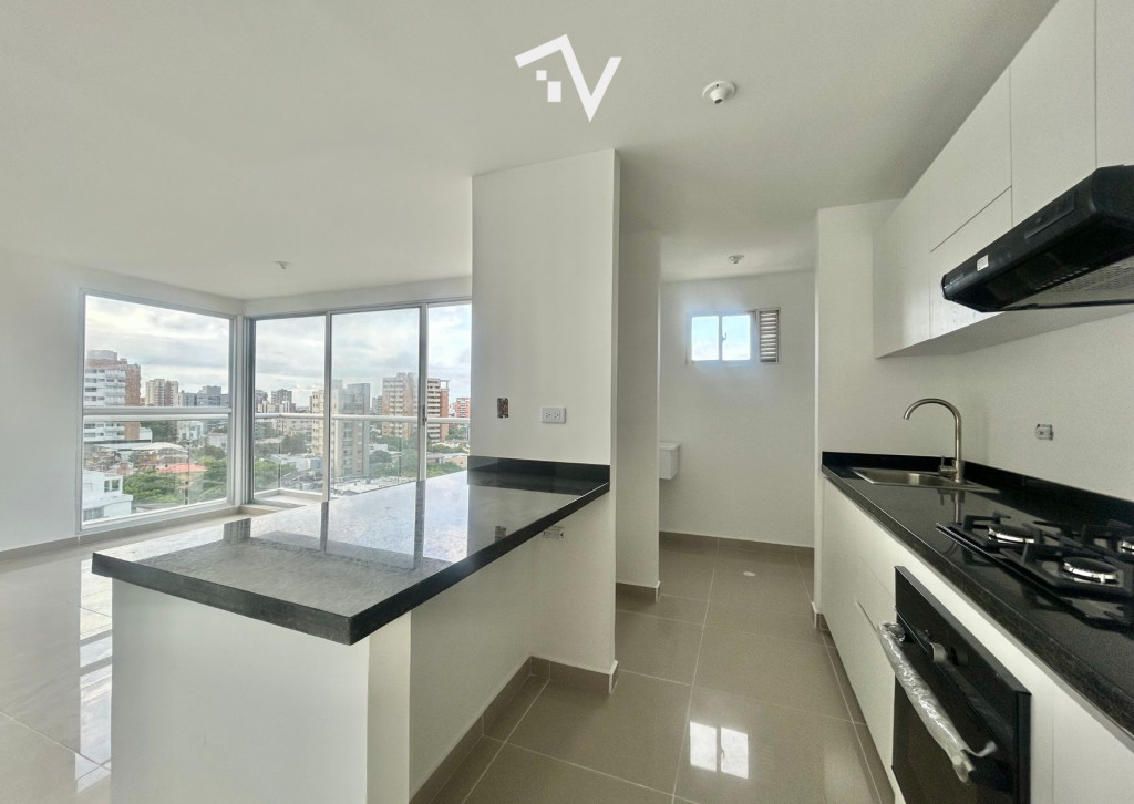 Apartamento para estrenar en Nuevo Horizonte Moderno apartamento de 77.66 m² construidos (66.38 m² privados), con un diseño funcional que aprovecha cada espacio. Al ingresar, encontrarás a la derecha la cocina abierta, integrada con la sala-comedor, que se extiende hacia un balcón en lado sombra con vista al horizonte del mar, creando un ambiente fresco, luminoso y agradable. Un pasillo conduce a las tres habitaciones: la principal con baño y vestier, y las auxiliares que comparten un baño completo, también de uso social. Incluye parqueadero privado y se entrega con puntos para aire acondicionado en sala y en las tres habitaciones. La cuota de administración proyectada es de aproximadamente $4.000 por m². El edificio cuenta con recepción tipo lobby, ascensor, y un total de 49 apartamentos distribuidos en 9 pisos (7 por nivel). En la terraza del piso 9, se encuentran las zonas sociales: Pet Park, parque infantil, zona BBQ y piscina, ideales para disfrutar de momentos de descanso en un entorno moderno y acogedor. A menos de 400 metros, a tan solo seis minutos a pie, se encuentra el Parque Sagrado Corazón, uno de los espacios más representativos y completos de Barranquilla.