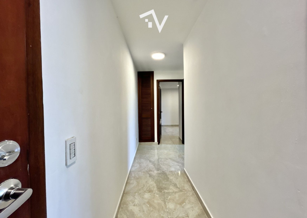 Ubicado en Villa Country, frente al boulevard y a pocos pasos del Centro Comercial Villa Country, este apartamento se encuentra en un sector tradicional y residencial, con acceso inmediato a servicios, comercio y vías principales. Cuenta con un área de 71 m². El apartamento se conserva en buen estado, con baños y cocina actualizados, y una distribución práctica que favorece la vida diaria. Dispone de dos habitaciones: la principal con baño privado, y una segunda habitación que utiliza un baño completo exterior, el cual funciona también como baño social. La cocina abierta tipo americano se integra de manera natural con la sala y el comedor, generando un ambiente social continuo, ideal para compartir. La zona de labores es independiente, lo que aporta orden y funcionalidad al espacio. Incluye un garaje privado, brindando comodidad y seguridad para su vehículo. El edificio, de aproximadamente 30 años de construcción, cuenta con ocho pisos, dos ascensores y seis apartamentos por nivel. Una opción interesante para quienes valoran la ubicación en un sector consolidado y un metraje bien aprovechado, con el potencial de actualizar algunos espacios según el gusto de su próximo propietario.