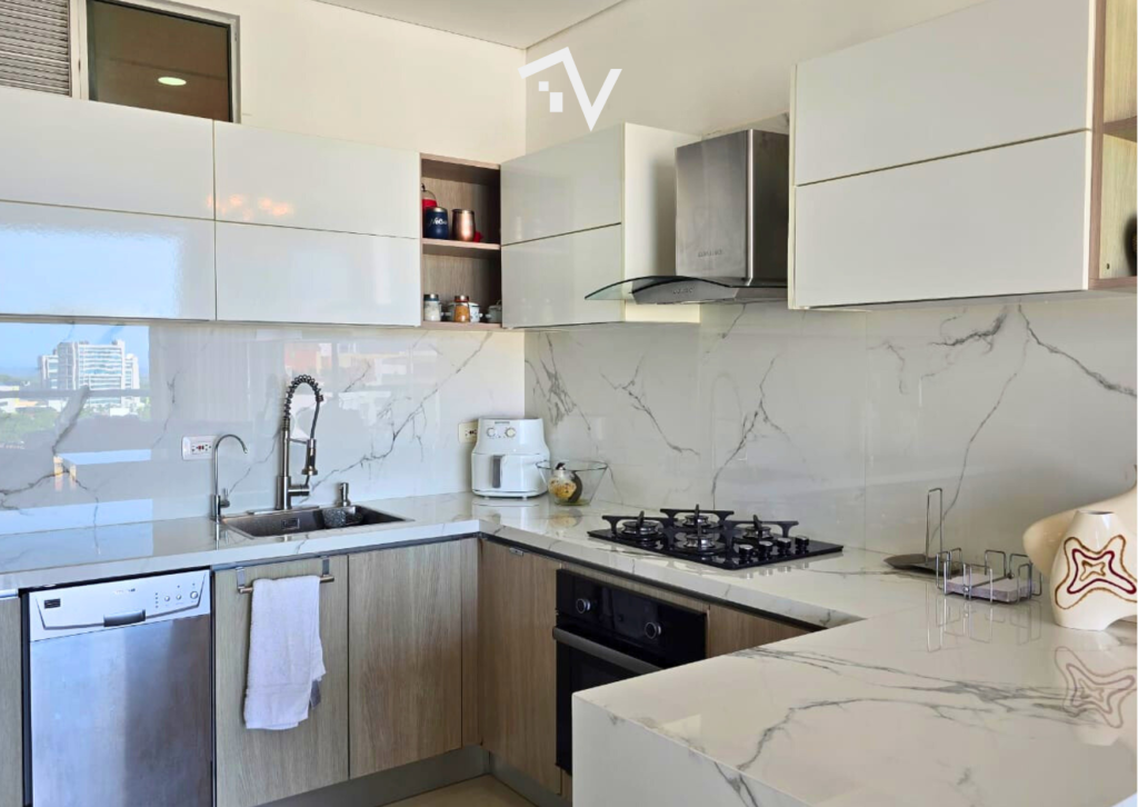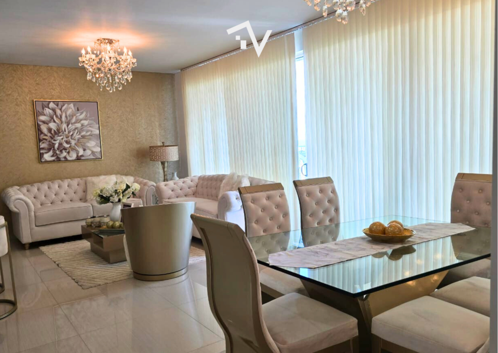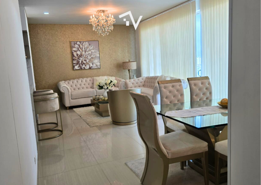 Cada detalle este apartamento de 133.41 m2 ubicado en la mejor esquina de Villa Santos, es el balance perfecto entre el diseño de sus espacios interiores y las zonas comunes del conjunto. Pensado para ofrecer confort: Acera sombra (hacía la 48), sala-comedor, cocina, zona de labores, baño social, sala de estar, balcón, tres habitaciones, tres baños, depósito, dos garajes en linea. El edificio compuesto por dos torres, fachada de ladrillo, piscina de adultos y niños, baño turno y sauna, mirador panorámico con 2 jacuzzis y BBQ por torre, sendero de patinaje, mini cancha de futbol y parque infantil, gimnasio equipado, salón social, lobby tipo hotel con 2 salas de espera. Sin duda, un lugar donde la comodidad y el estilo se encuentran.