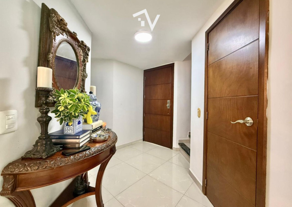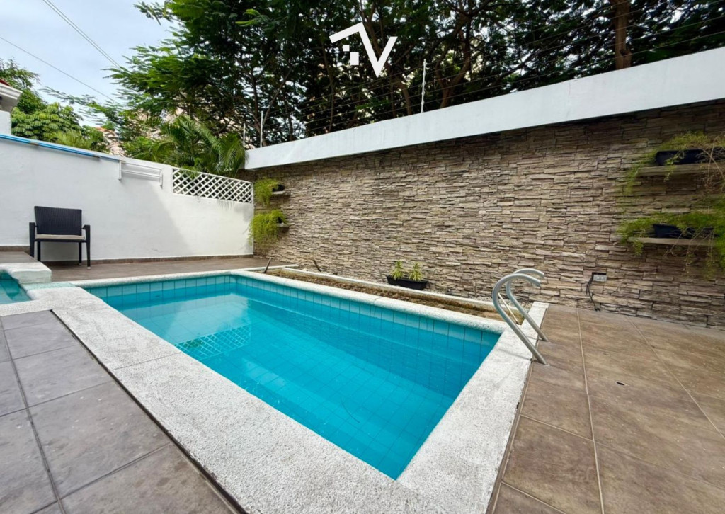 En el barrio Santa Mónica, esta casa de dos niveles combina amplitud y funcionalidad en un entorno plenamente residencial. Originalmente de 125 m², fue ampliada hasta alcanzar los 190 m² construidos en total, que se levanta sobre un generoso lote de 238 m². Su mayor distintivo: Es la única del conjunto con piscina privada, un privilegio que realza su valor y la convierte en un refugio ideal para disfrutar en familia. En la primera planta, un diseño de concepto abierto integra la sala, comedor y estudio; cocina cerrada, iluminada, cómoda y funcional, Además, cuenta con baño social, zona de labores + cuarto y baño de servicio. En el segundo nivel nos recibe un acogedor estar de alcobas que da la bienvenida a tres habitaciones de excelente tamaño, la principal con baño y balcón, y las otras dos comparten baño en pasillo. Cuenta con dos parqueaderos lineales. Ubicada en un conjunto cerrado con 35 años de construido y conformado por solo 13 viviendas. Ofrece privacidad, tranquilidad y el encanto de vivir en una zona tradicionalmente residencial.