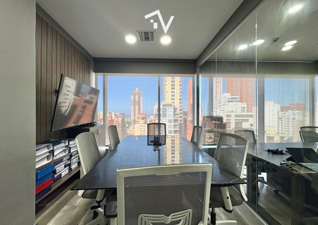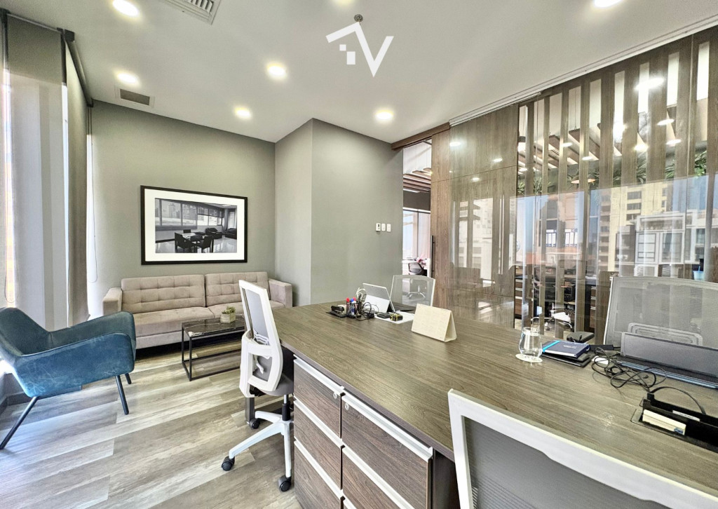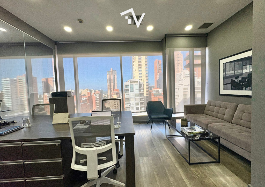 Una oficina que proyecta profesionalismo desde el primer día. Moderna oficina de 154,35 m² con diseño tipo industrial, pisos en madera, persianas Hunter Douglas, aires acondicionados y muebles empotrados para archivo. Cuenta con dos oficinas cerradas, dos salas de juntas (una grande y una mediana), zona de trabajo abierta adaptable, recepción y cocineta. Los baños comunes del piso están ubicados justo al lado. Incluye tres parqueaderos independientes. Ubicada en un edificio de arquitectura vanguardista con certificación LEED Oro, que ofrece lobby climatizado, terraza verde en primer piso, 20 pisos más altillo, 5 sótanos de parqueaderos con 412 cupos (112 para visitantes), recepción para visitantes y correspondencia y 8 ascensores de alta velocidad. El edificio cuenta además con un piso corporativo totalmente dotado: gimnasio, 2 auditorios para 100 personas, 6 salas de juntas, comedor para empleados y terraza tipo lounge. Un espacio diseñado para que tu operación fluya y tu empresa crezca.
