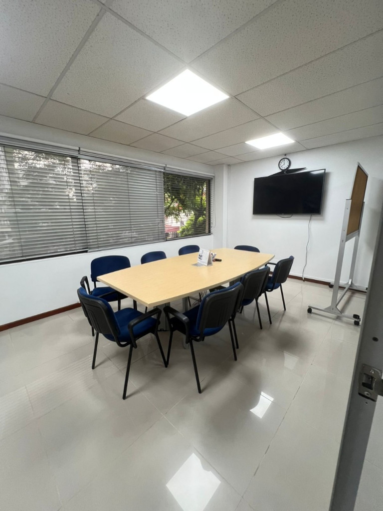 Oficina de dos niveles con un área total de 194.78 m², ubicada en el Centro Empresarial Centro de Empresa, en la ciudad de Cali, en el sector del Parque del Amor, dentro de la Comuna 2. Su ubicación dentro de un entorno empresarial consolidado la convierte en una opción funcional para empresas que buscan presencia corporativa y fácil acceso para colaboradores y visitantes. La oficina se distribuye de la siguiente manera: en el primer nivel cuenta con un salón múltiple, dos baños, cocineta, cuarto de aseo y escaleras internas que conectan con el segundo piso. En el segundo nivel dispone de un salón múltiple adicional, un baño y cuarto para equipos de aire acondicionado, permitiendo una operación cómoda y bien organizada. Como valor agregado, la propiedad cuenta con uso exclusivo de 6 garajes, un beneficio importante para equipos de trabajo o directivos. El edificio, construido en 1996, está conformado por tres niveles y un sótano, y ofrece vigilancia 24/7, circuito cerrado de televisión (CCTV), ascensor y recepción, brindando seguridad y control de acceso para una operación empresarial ordenada. Una oficina amplia, versátil y bien distribuida, ideal para compañías que requieren espacios funcionales en un entorno corporativo establecido.