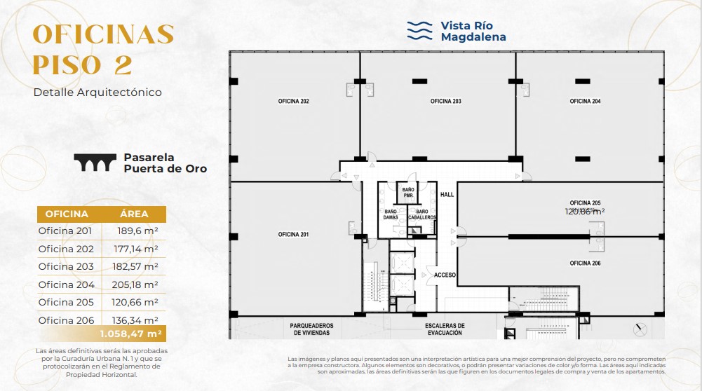 VIVE RIO BUSINESS es el primer proyecto de oficinas, EN CONSTRUCCION, desarrollandose en el Gran Malecón de Barranquilla, con entrega programada para Junio de 2026. Es una oportunidad de inversión en uno de los principales polos de desarrollo de la ciudad, contando con una espectacular vista al río Magdalena. Las oficinas estarán ubicadas en los pisos 2 y 3, DISPONIBLES EN VENTA una oficina del PISO 2, de 136.28m². El proyecto ofrece planta eléctrica de suplencia total, parqueaderos de uso exclusivo para oficinas en la planta baja, equivalentes a 55 parqueaderos comunes y 3 espacios para personas con movilidad reducida. Además, existe la opción de compra de parqueaderos adicionales: 1 por cada 50m². La entrega se realizará en obra negra, con muros divisorios entre locales de mampostería en bloque de cemento o material similar sin acabado, sin cielorraso, y con tuberías de PVC expuestas. 2 ascensores y una escalera eléctrica. Cada piso contará con una batería de baños.