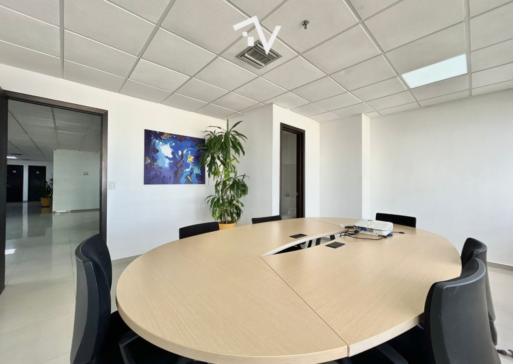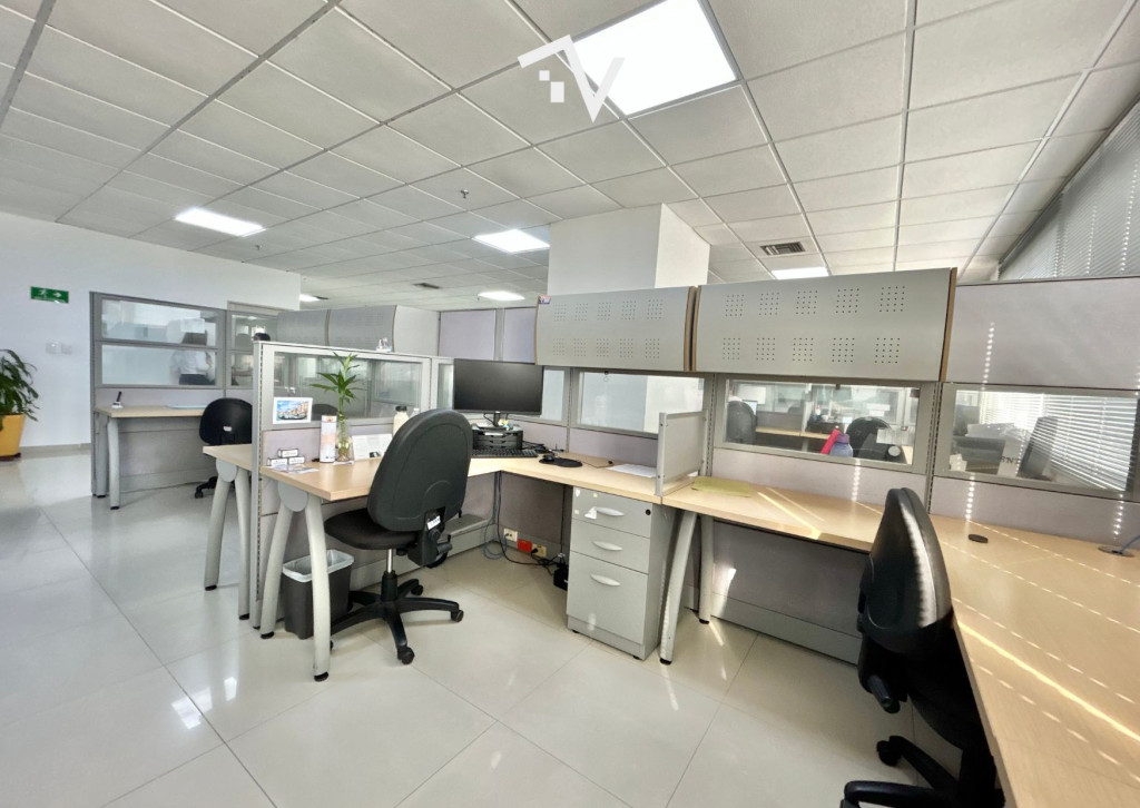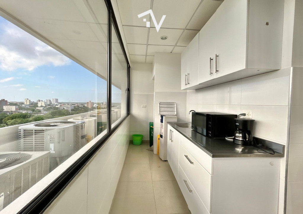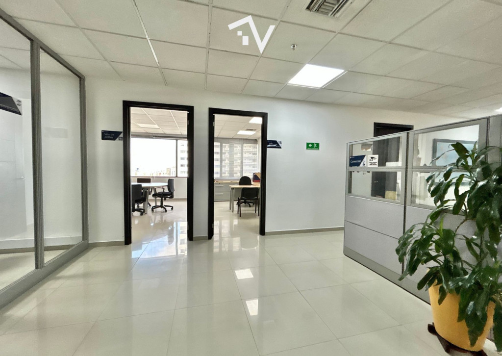 Oficina en Centro Empresarial Américas II – 286,73 m². Espacio corporativo de alto nivel, diseñado para empresas que buscan proyección, comodidad y eficiencia. Actualmente está organizada con 6 oficinas cerradas (2 con cerramientos en vidrio), y un área abierta que permite distribuir más de 20 cubículos de buen tamaño, con la flexibilidad para reconfigurar el espacio y aumentar la capacidad de puestos de trabajo según las necesidades de la empresa. Adicional está dotada con 3 aires centrales —dos de 55.000 BTU marca Midea renovados hace 3 años y uno de 60.000 BTU Confort Adicional—. También hay un espacio cerrado que puedes usar como cuarto de sistemas independiente. Dispone de 3 baños, cocineta y 6 parqueaderos privados. Ubicada en una torre de 12 pisos, reconocida por su arquitectura contemporánea y ubicación estratégica en Barranquilla, el Centro Empresarial Américas II se ha consolidado como uno de los íconos corporativos de la Costa Norte. El edificio ofrece lobby de doble altura, cinco ascensores, salón de conferencias, dos salas de juntas, planta eléctrica con suplencia total, baterías de baños por piso, sistema de rociadores, más de 360 parqueaderos internos y más de 100 para visitantes. Un entorno donde la infraestructura, el diseño y la ubicación se combinan para impulsar el crecimiento de tu empresa.