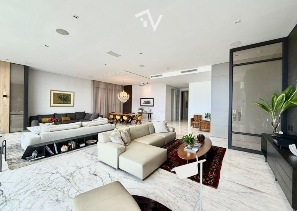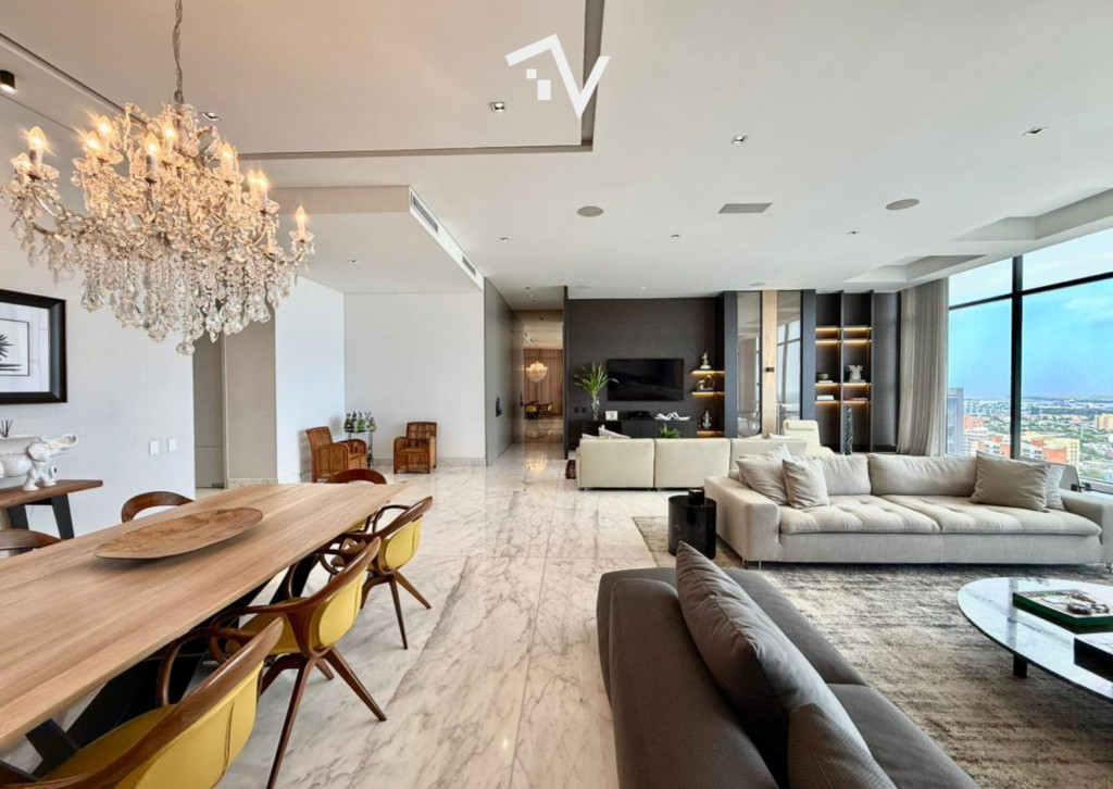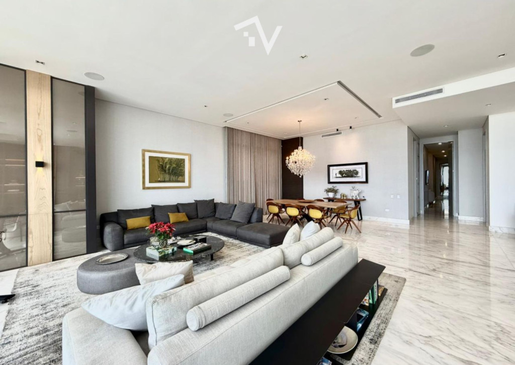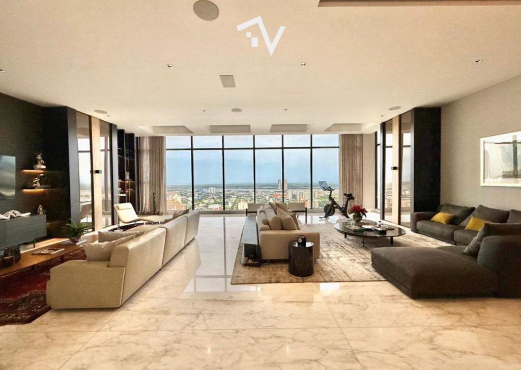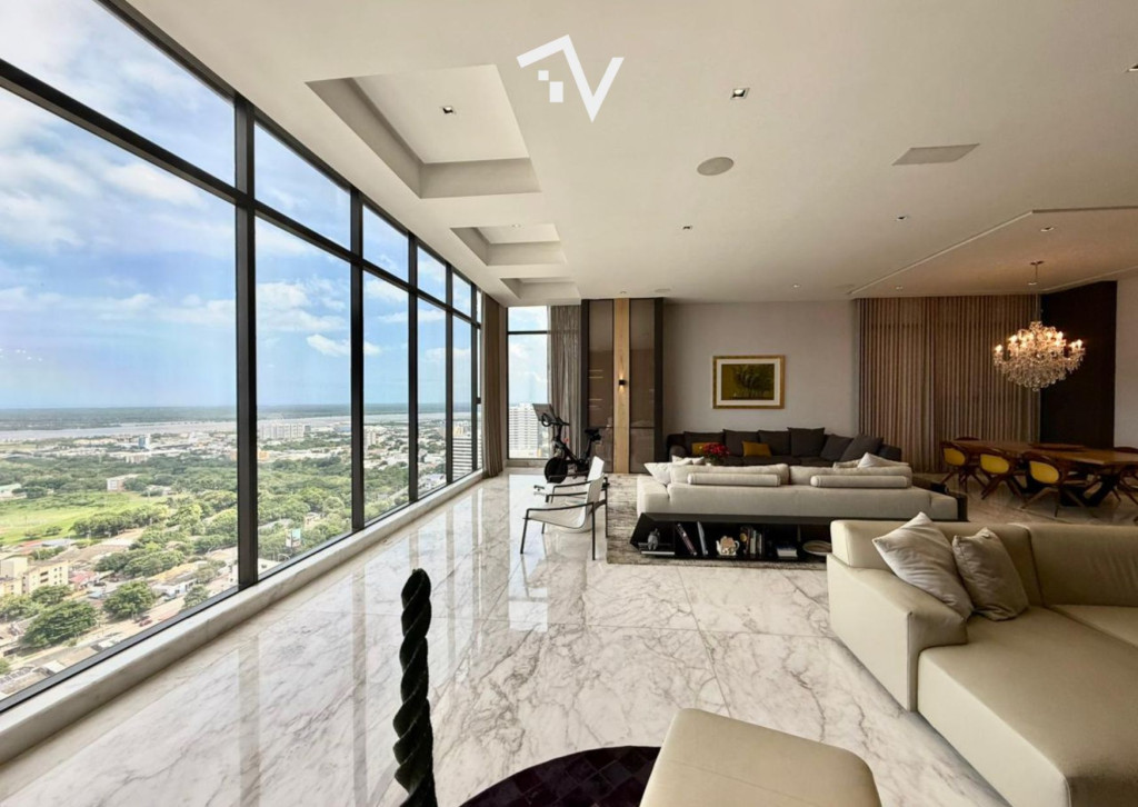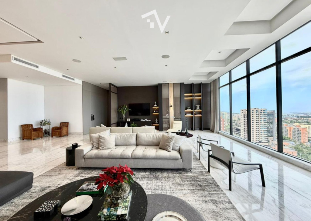 Hay espacios que no solo se habitan: se sienten. Donde cada detalle invita a mirar alrededor y recordar por qué vivir bien empieza por elegir un entorno que acompaña cada etapa de la vida. Este apartamento de 314 m² construidos y 294 m² privados está pensado para quienes valoran la privacidad como un verdadero privilegio. El acceso es totalmente reservado: los ascensores llegan directamente al piso, dando paso a una altura libre de 3.80m que abre la escena desde el primer momento. La zona social, con un diseño abierto y ventanales de piso a techo, integra la ciudad y el río en la experiencia cotidiana, envolviéndolo de luz natural y vistas que se vuelven parte de la rutina. El área privada reúne 3 alcobas, cada una con su baño y walking closet. La habitación principal incluye un minisplit adicional, y se complementa con un estar de alcobas y un baño social. La cocina es cerrada y cuenta también con alcoba y baño de servicio. El sistema de aire acondicionado central funciona tanto en las áreas sociales como en las habitaciones. Dispone de 3 parqueaderos (uno doble lineal de 25m² y uno independiente de 12.5m²), además de un depósito de 4.63m². El edificio, conformado por dos torres de 22 pisos unidas en el primer nivel y los sótanos, recibe con un lobby de doble altura y espacios diseñados para acompañar la vida diaria: gimnasio, sauna, turco, juegos infantiles, teatrino, salón social, sala de reuniones, piscinas para adultos y niños, terrazas abiertas y cubiertas, ca