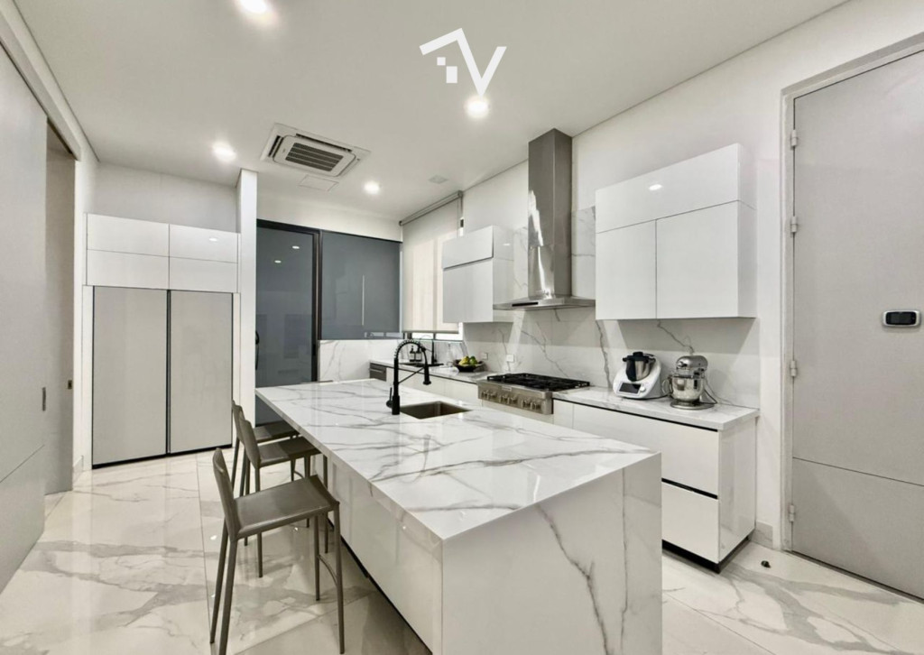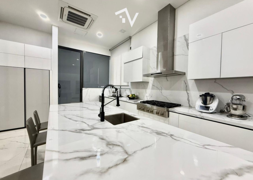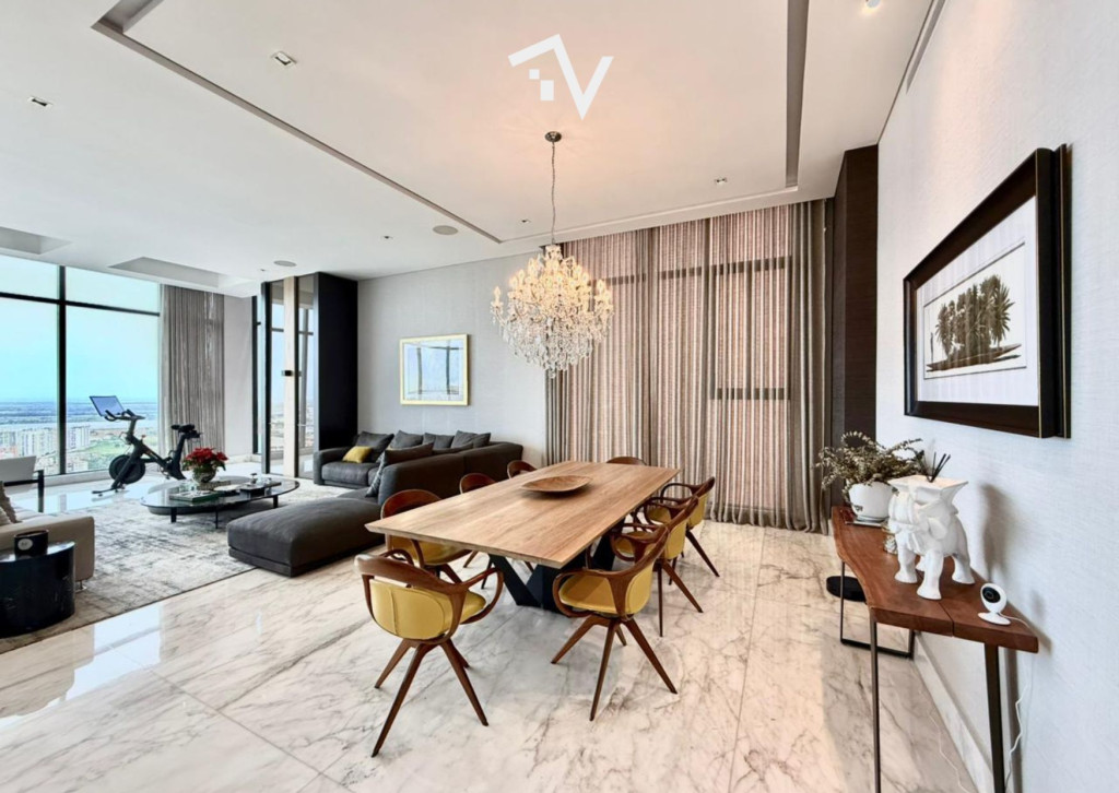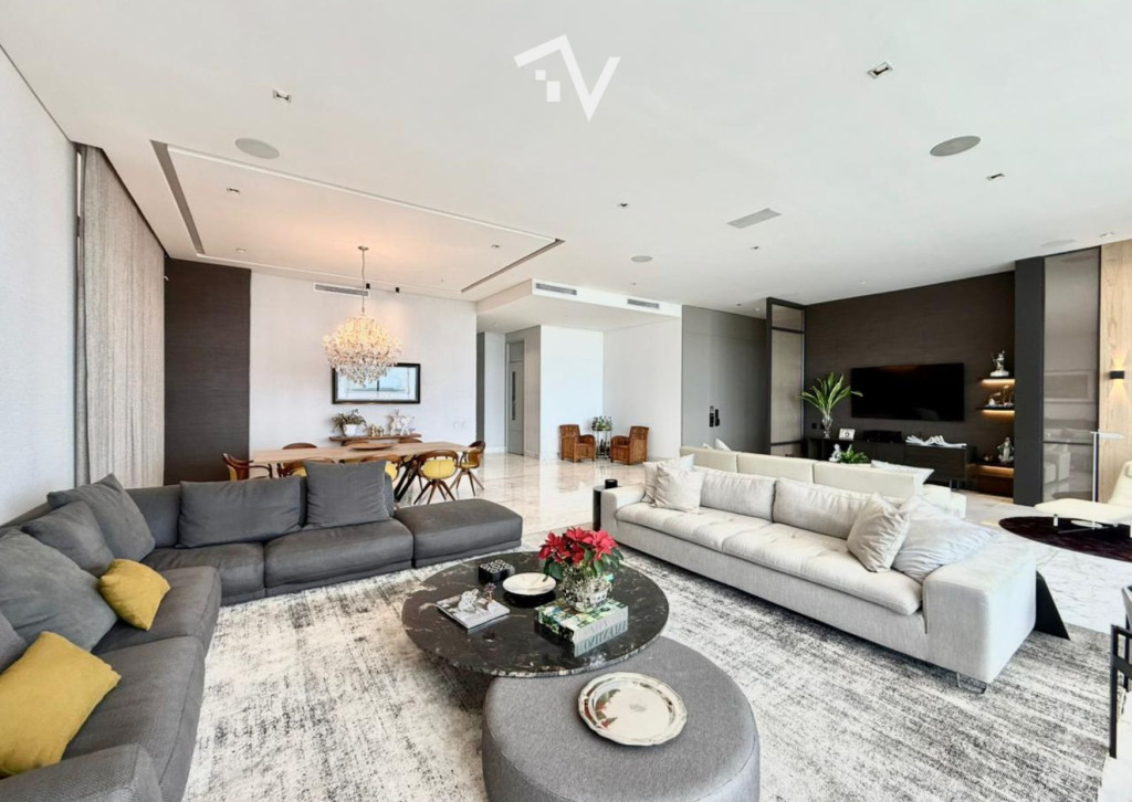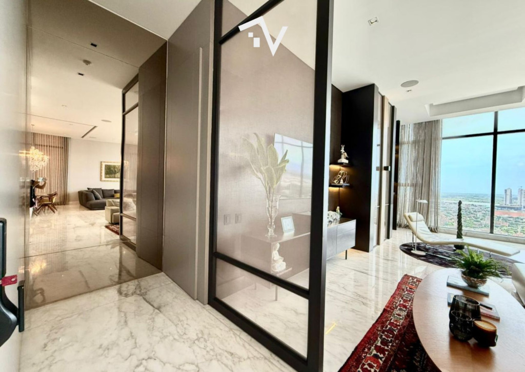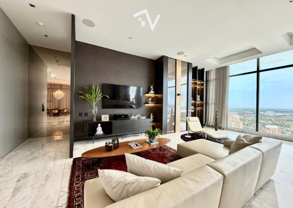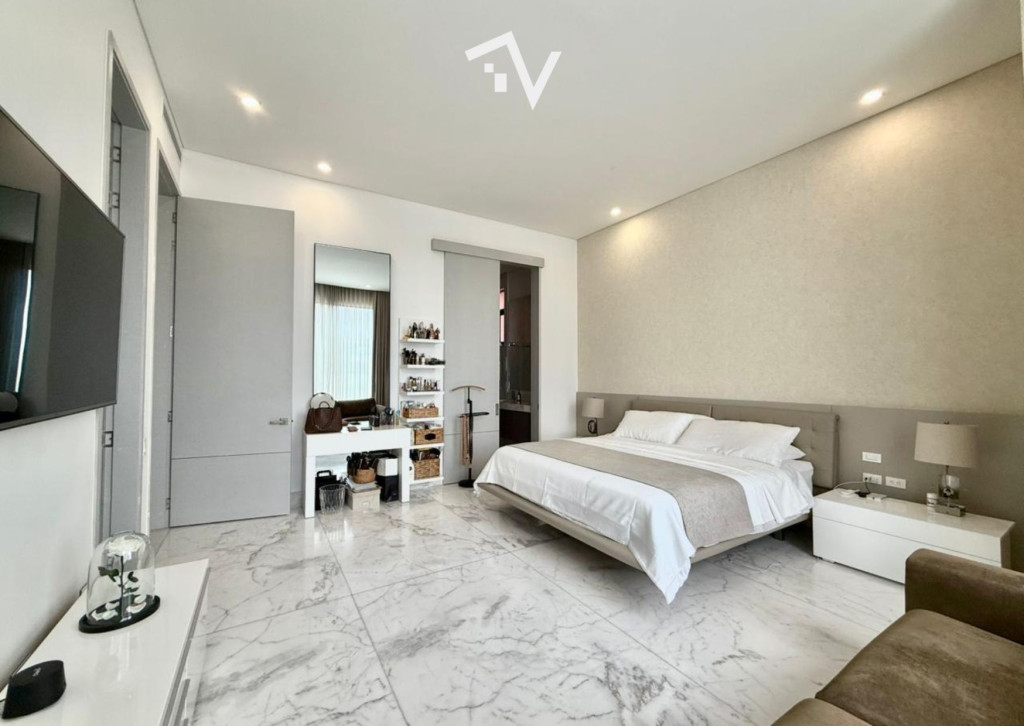 Hay espacios que no solo se habitan: se sienten. Donde cada detalle invita a mirar alrededor y recordar por qué vivir bien empieza por elegir un entorno que acompaña cada etapa de la vida. Este apartamento de 314 m² construidos y 294 m² privados está pensado para quienes valoran la privacidad como un verdadero privilegio. El acceso es totalmente reservado: los ascensores llegan directamente al piso, dando paso a una altura libre de 3.80m que abre la escena desde el primer momento. La zona social, con un diseño abierto y ventanales de piso a techo, integra la ciudad y el río en la experiencia cotidiana, envolviéndolo de luz natural y vistas que se vuelven parte de la rutina. El área privada reúne 3 alcobas, cada una con su baño y walking closet. La habitación principal incluye un minisplit adicional, y se complementa con un estar de alcobas y un baño social. La cocina es cerrada y cuenta también con alcoba y baño de servicio. El sistema de aire acondicionado central funciona tanto en las áreas sociales como en las habitaciones. Dispone de 3 parqueaderos (uno doble lineal de 25m² y uno independiente de 12.5m²), además de un depósito de 4.63m². El edificio, conformado por dos torres de 22 pisos unidas en el primer nivel y los sótanos, recibe con un lobby de doble altura y espacios diseñados para acompañar la vida diaria: gimnasio, sauna, turco, juegos infantiles, teatrino, salón social, sala de reuniones, piscinas para adultos y niños, terrazas abiertas y cubiertas, ca