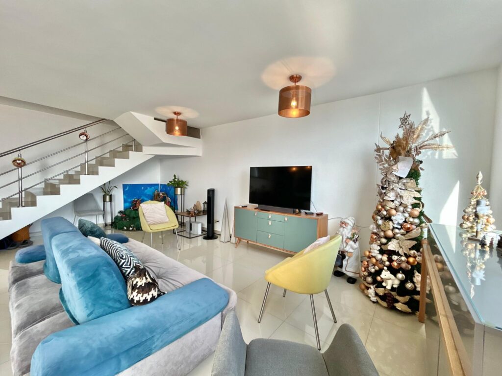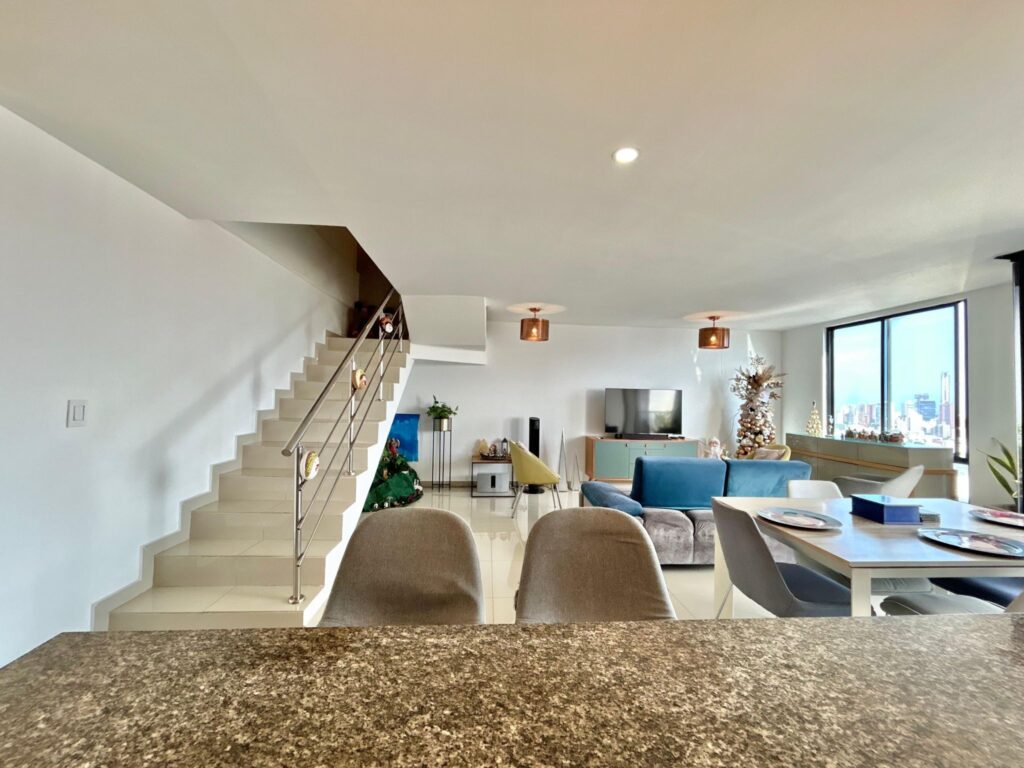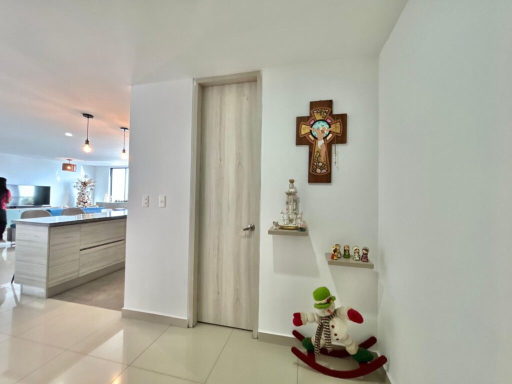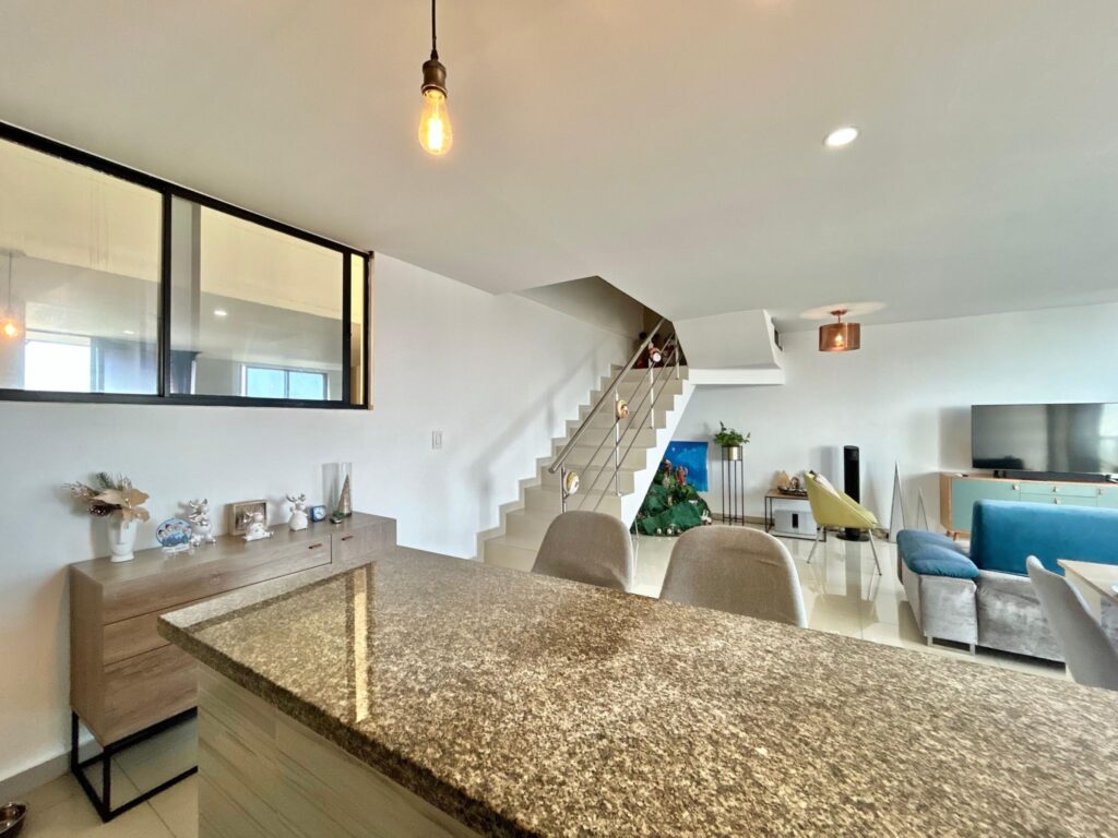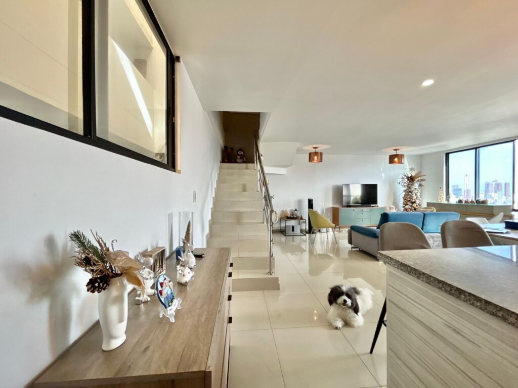 Este apartamento, (actualmente arrendado), ofrece una atmósfera clara y acogedora, con espacios que se conectan de manera natural. En el primer nivel, los pisos en porcelanato beige aportan calidez a un ambiente contemporáneo. El recibo da paso a un baño social, una cocina abierta integrada al área social y un amplio espacio de sala–comedor, bien iluminado y con salida a un balcón que suma aire y luz.