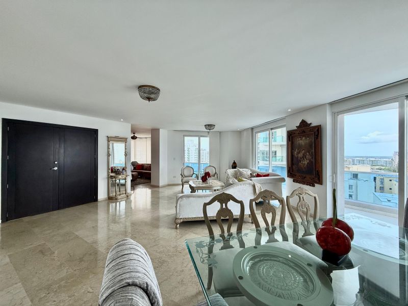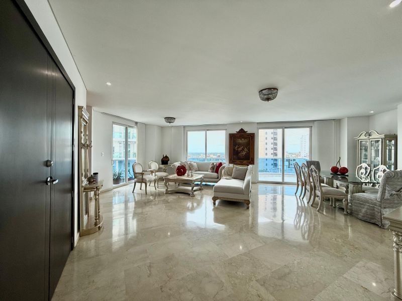 La amplitud de sus espacios se percibe desde el recibo y la sala-comedor, rodeados de balcones y ventanales de piso a techo que llenan de luz cada rincón.