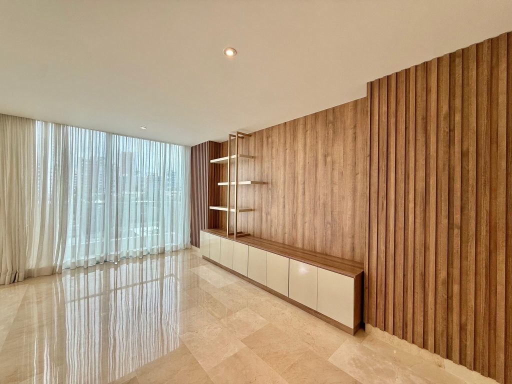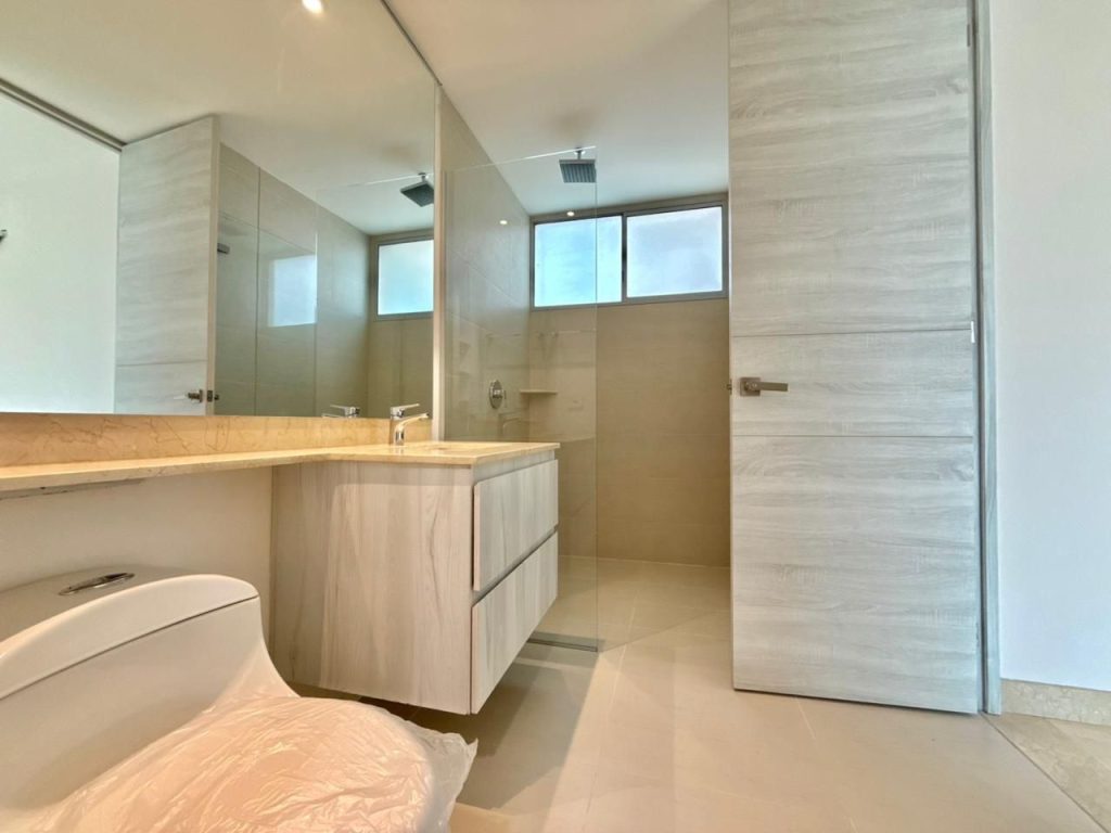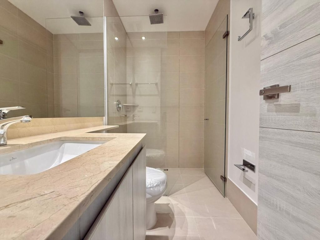 Todas las habitaciones cuentan con baño privado, y la principal se roba el protagonismo con su amplitud, walk-in closet y closet de linos. Para mayor confort: blackout en alcobas y cortinas de velo en sala-comedor.