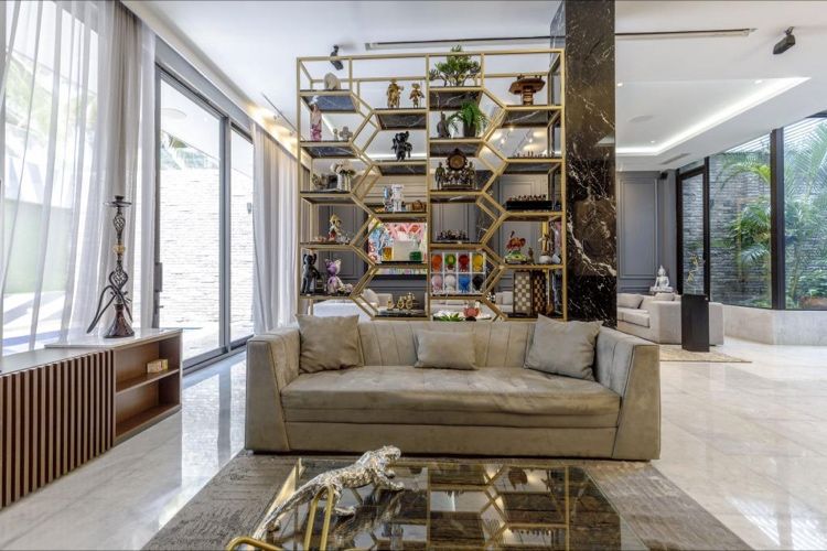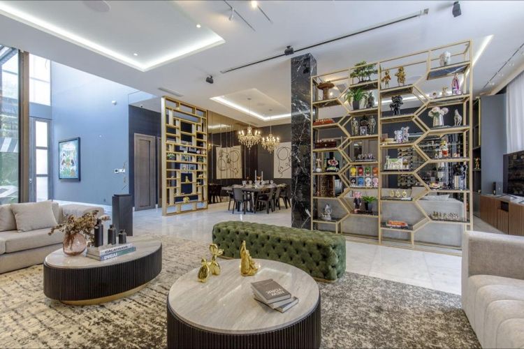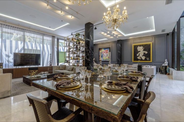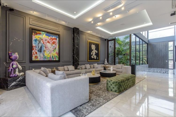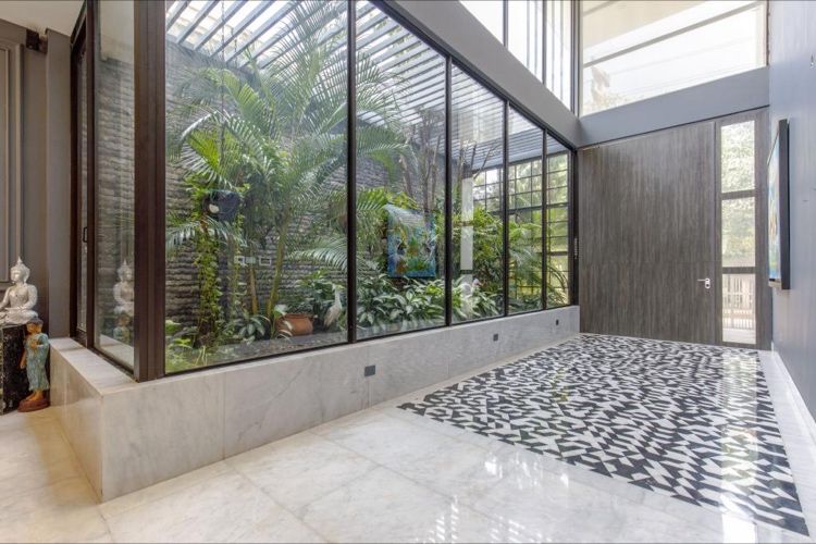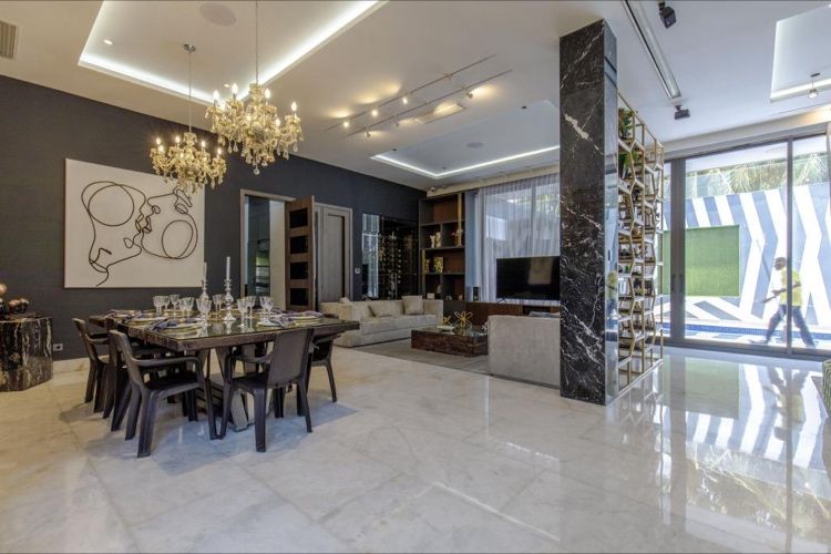 Esta dream home se distribuye así:Imponente foyer de 8M con un jardín interior que inunda de luz toda la casa.