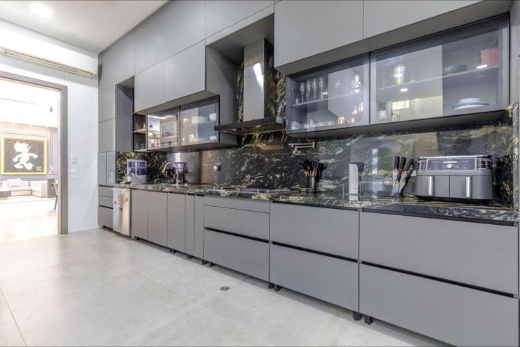 En el lounge una cava de vinos-bar moderno. Baño social, amplia cocina cerrada con vista hacia el ante jardín.