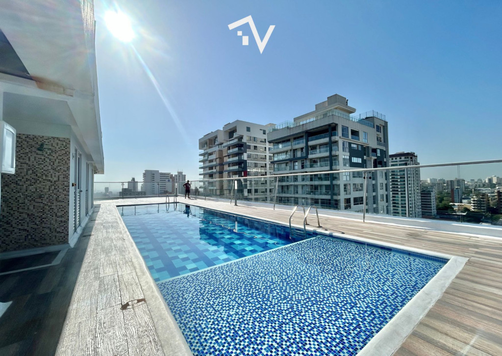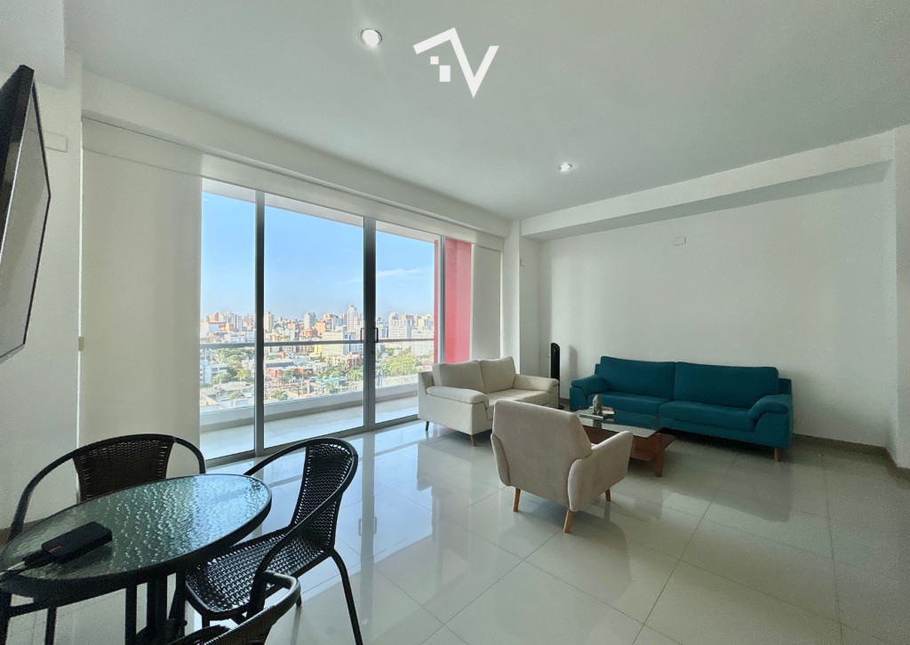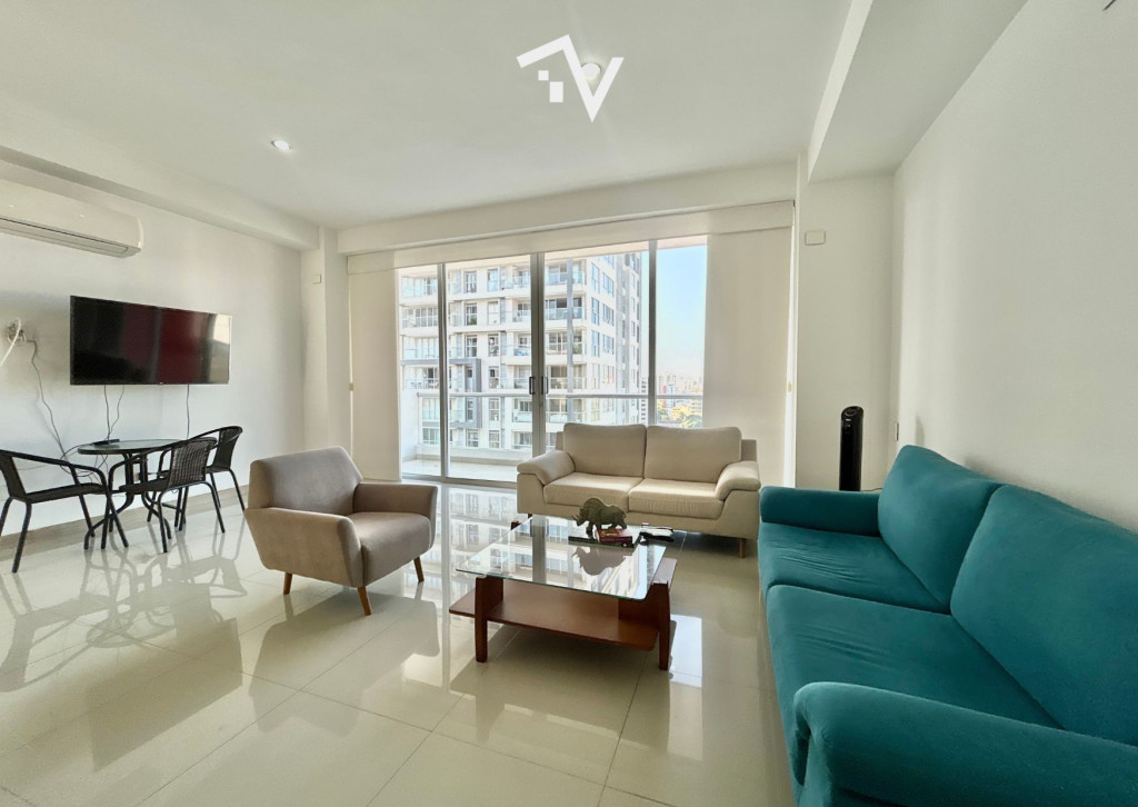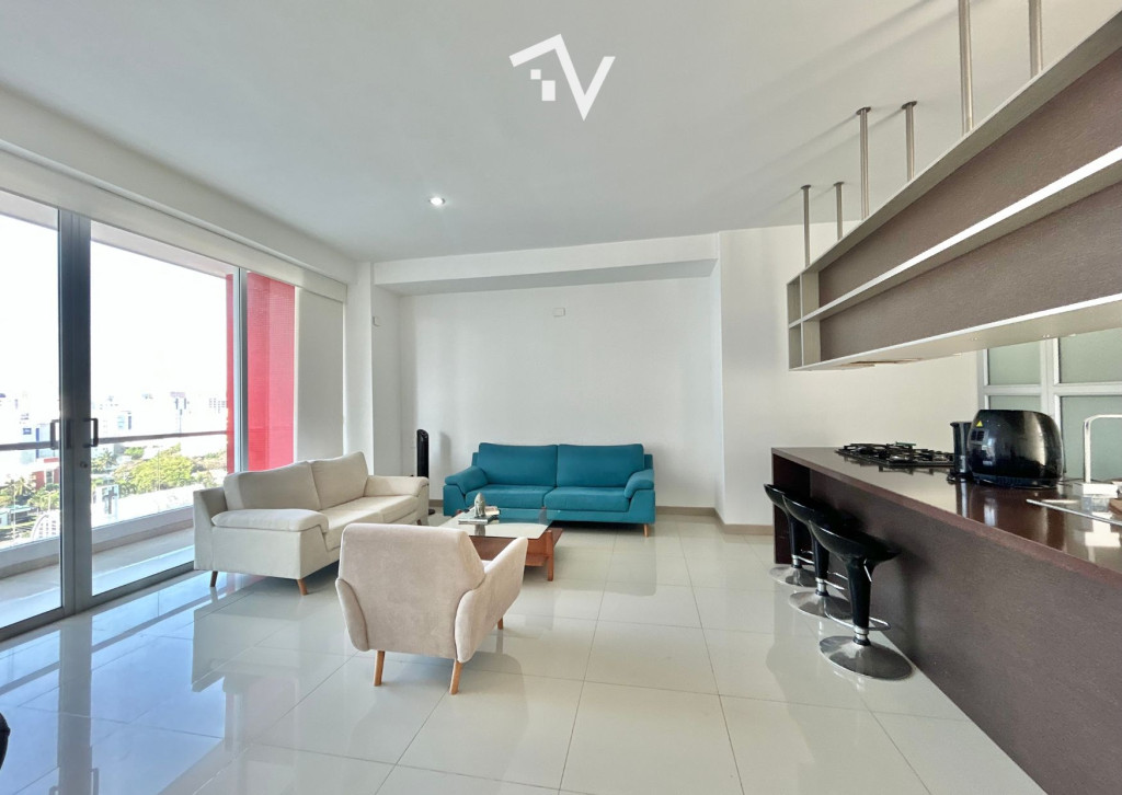 En el piso 13 de un edificio contemporáneo en Alto Prado, se eleva este apartamento de 125,16 m², donde la luz, la amplitud y la ciudad son protagonistas. Su vista totalmente despejada se disfruta a través de grandes ventanales piso a techo y dos amplios balcones: uno integrado a la zona social y otro privado en la habitación principal, ideales para conectar con el exterior y el ritmo urbano. Su layout moderno y funcional ofrece una distribución equilibrada y cómoda: tres dormitorios, un estar o estudio que se adapta a nuevas dinámicas de vida, dos baños familiares y baño social, todo enmarcado por una altura piso-techo imponente que realza cada espacio. Ubicado en uno de los barrios más tradicionales y valorados de Barranquilla, el apartamento se complementa con completas amenidades, ascensores, seguridad permanente y estacionamientos para visitantes, atributos que elevan la experiencia de vivir bien. Un hogar que combina diseño, ubicación y vistas que inspiran.