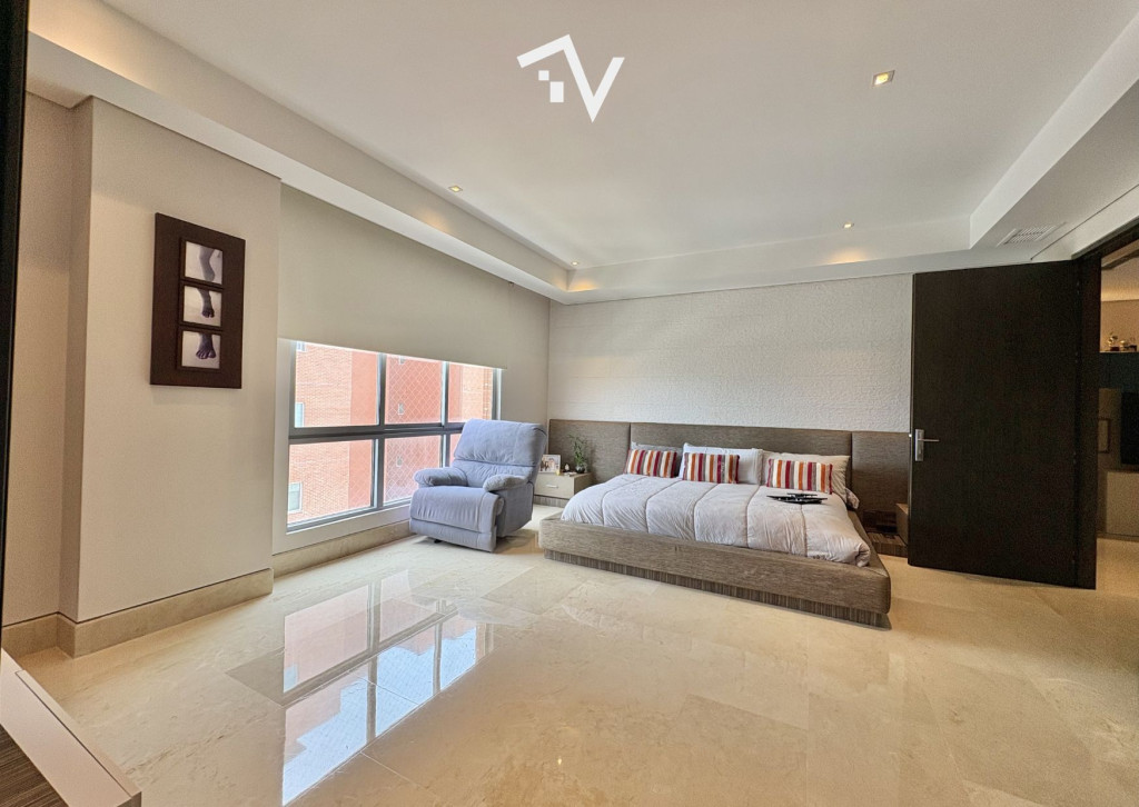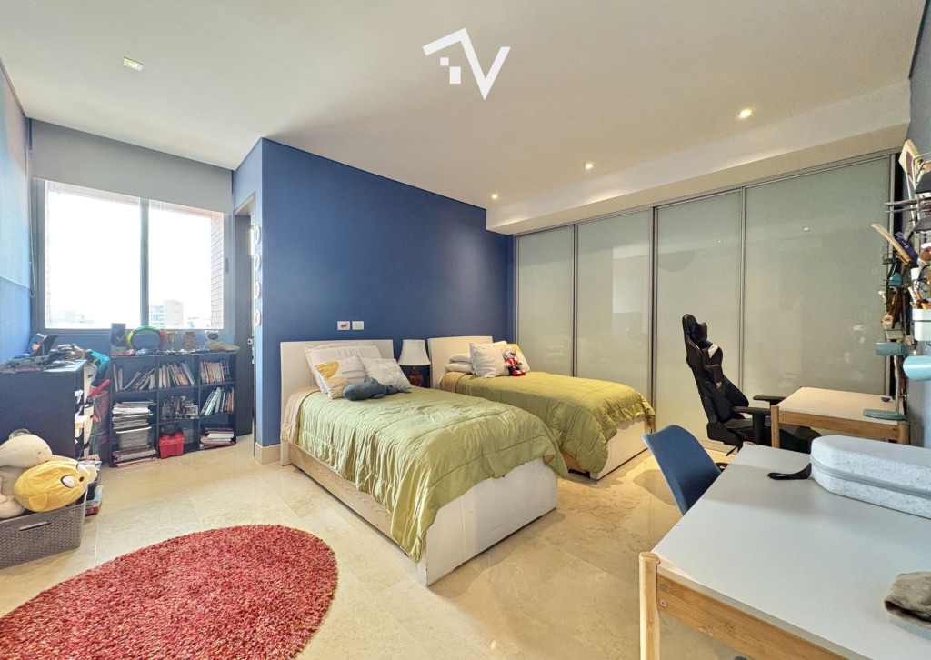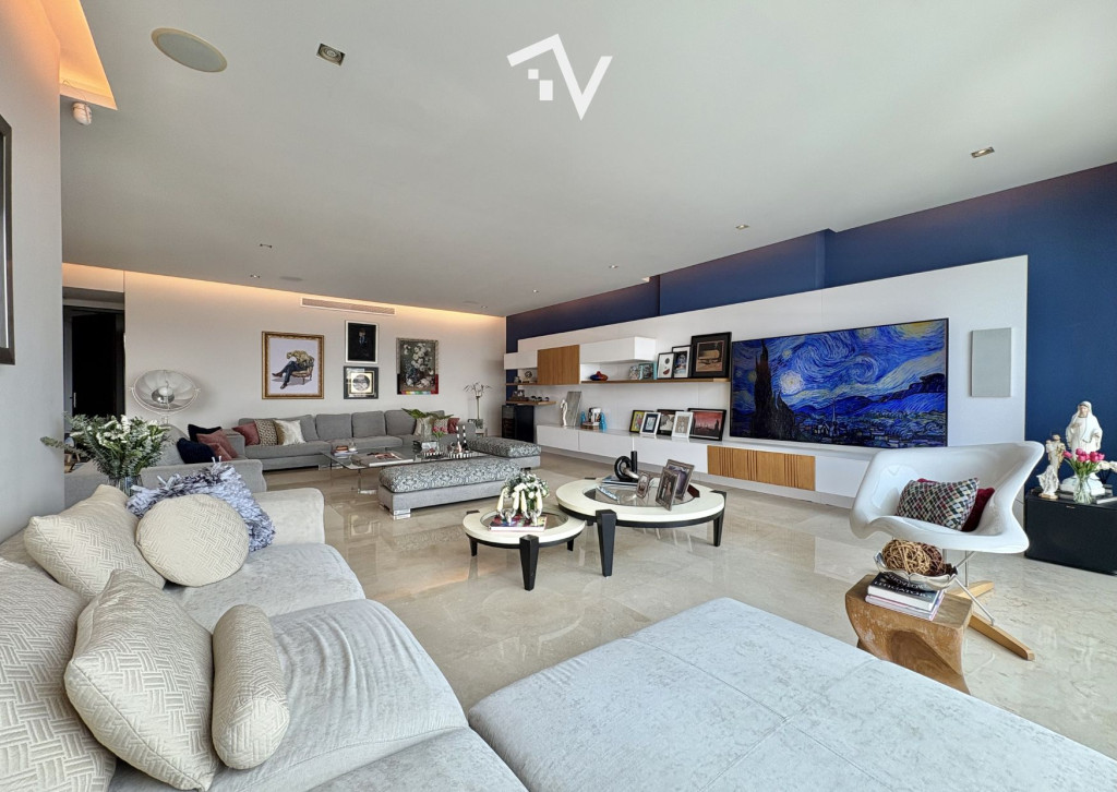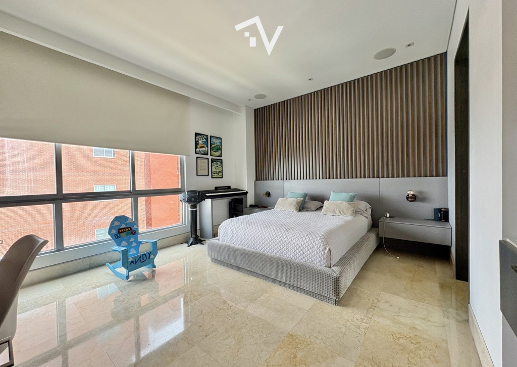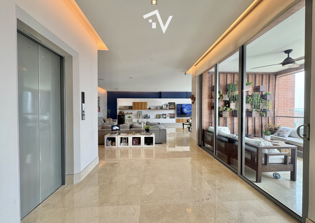 ¿Y si el verdadero lujo no fuera lo que se ve… sino lo que no te molesta? Este apartamento de 327,75 m² en piso alto no compite con lo convencional — juega en otra liga. Aquí, la ciudad se ve, se disfruta… pero no interrumpe. Desde el primer momento, el ascensor privado marca la diferencia: llegas directo a tu espacio, sin escalas, sin ruido, sin concesiones. Todo está pensado para que la vida fluya con discreción — incluso el servicio tiene su propio acceso independiente. Los espacios sociales no solo son amplios, son escenarios. Luz natural que entra sin pedir permiso, ventanales de piso a techo y una distribución que permite vivir, recibir y disfrutar sin límites. El comedor se abre hacia una terraza con BBQ que invita a quedarse más de lo planeado… y la cava de vinos no es un detalle: es una declaración. La cocina, funcional y generosa, acompaña sin invadir. Mucho espacio, mucha lógica, cero improvisación. En la zona privada, cada habitación tiene su propio mundo: baño, privacidad y proporciones que se sienten. La principal, por supuesto, eleva la experiencia con su walking clóset. ¿Extras? Todos los que deberían estar — y bien resueltos: baño social, cuarto y baño de servicio, depósito y dos garajes independientes. El edificio entiende algo clave: el verdadero lujo es la tranquilidad. Solo 20 familias, piscina, salón social, parque infantil y planta eléctrica total… todo está, pero nada estorba. “Para quienes ya no buscan más espacio… sino mejor vida.”