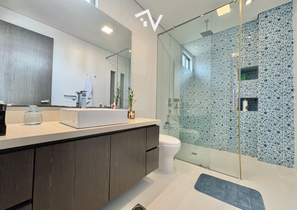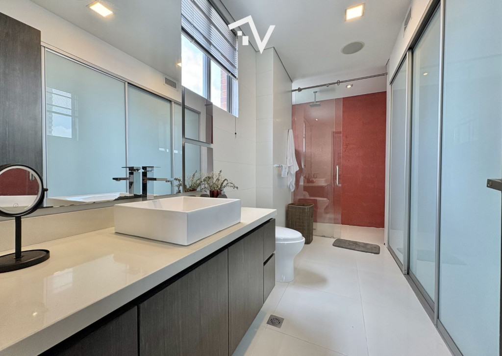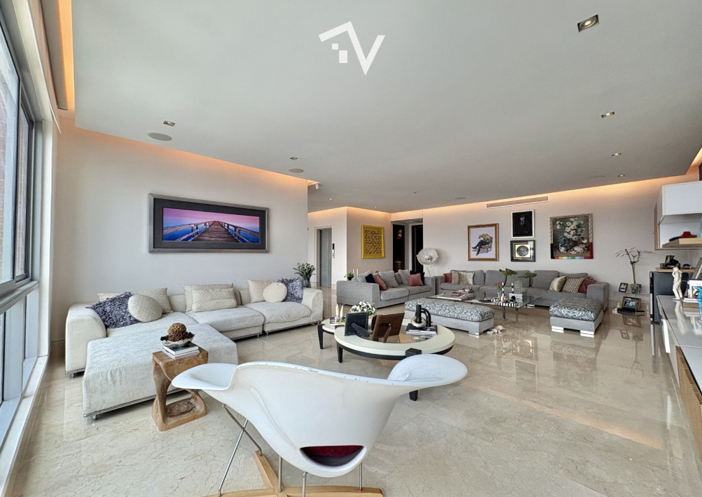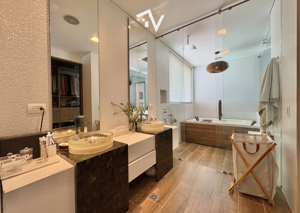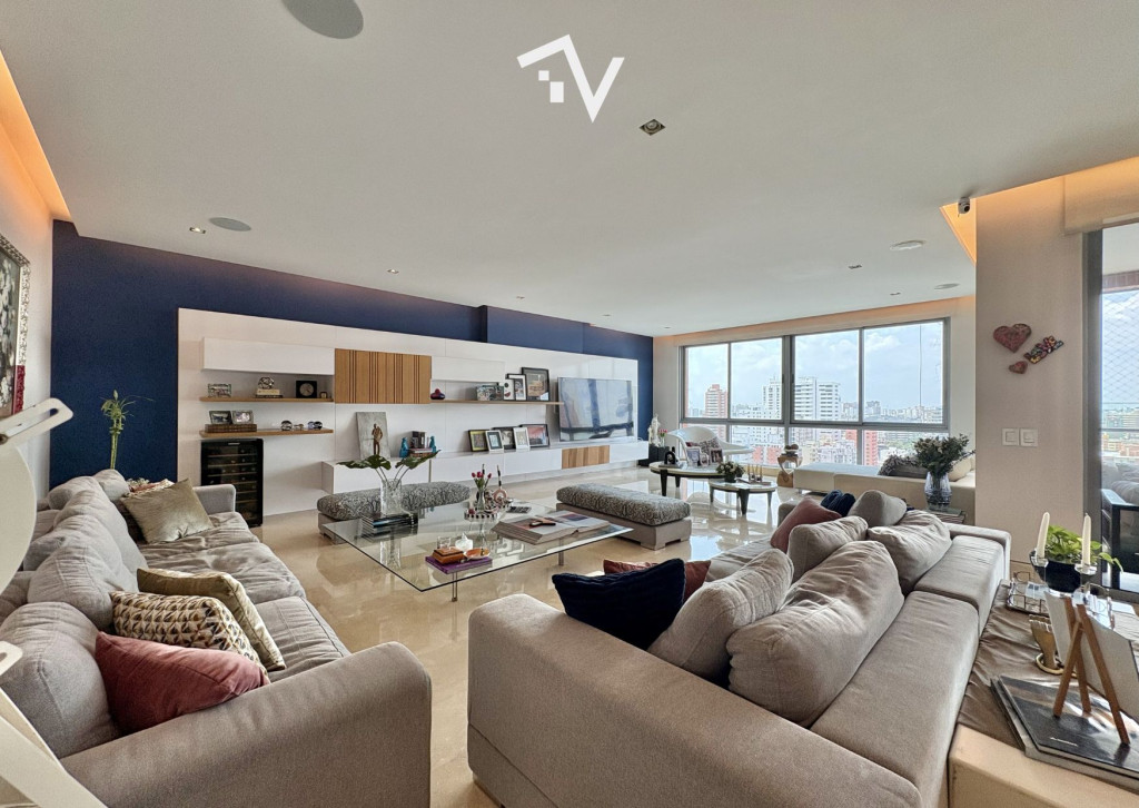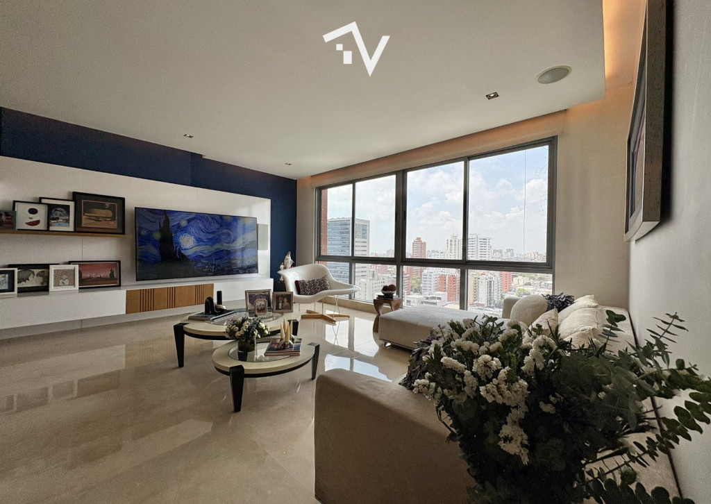 ¿Y si el verdadero lujo no fuera lo que se ve… sino lo que no te molesta? Este apartamento de 327,75 m² en piso alto no compite con lo convencional — juega en otra liga. Aquí, la ciudad se ve, se disfruta… pero no interrumpe. Desde el primer momento, el ascensor privado marca la diferencia: llegas directo a tu espacio, sin escalas, sin ruido, sin concesiones. Todo está pensado para que la vida fluya con discreción — incluso el servicio tiene su propio acceso independiente. Los espacios sociales no solo son amplios, son escenarios. Luz natural que entra sin pedir permiso, ventanales de piso a techo y una distribución que permite vivir, recibir y disfrutar sin límites. El comedor se abre hacia una terraza con BBQ que invita a quedarse más de lo planeado… y la cava de vinos no es un detalle: es una declaración. La cocina, funcional y generosa, acompaña sin invadir. Mucho espacio, mucha lógica, cero improvisación. En la zona privada, cada habitación tiene su propio mundo: baño, privacidad y proporciones que se sienten. La principal, por supuesto, eleva la experiencia con su walking clóset. ¿Extras? Todos los que deberían estar — y bien resueltos: baño social, cuarto y baño de servicio, depósito y dos garajes independientes. El edificio entiende algo clave: el verdadero lujo es la tranquilidad. Solo 20 familias, piscina, salón social, parque infantil y planta eléctrica total… todo está, pero nada estorba. “Para quienes ya no buscan más espacio… sino mejor vida.”