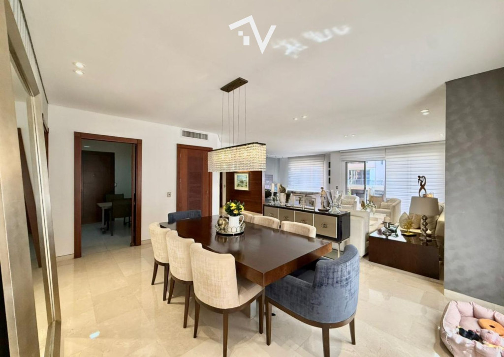 En Alto Prado, encontrar un buen apartamento dentro de un buen edificio no siempre es tan evidente. Aquí, ambos lados de la ecuación funcionan. Desde el recibo, elegante y bien proporcionado, se marca el tono: una distribución que privilegia la independencia sin renunciar a la integración. Sala y comedor conviven de forma natural, amplios, iluminados y conectados a un balcón con una vista fresca que aporta aire y pausa al día a día. La cocina, cerrada y funcional, mantiene su carácter original, al igual que los baños: bien conservados, listos para quien valore lo existente o quiera reinterpretarlo a su medida. La zona de labores es independiente y se complementa con alcoba y baño de servicio. En la zona privada, un hall de alcobas aporta transición y privacidad. Tres habitaciones, cada una con su baño y vestier, resuelven el confort sin discusión. La principal suma ventanas termoacústicas, elevando la experiencia de descanso. El estudio, con mueble empotrado, funciona como un espacio contenido y versátil. Los materiales hablan de permanencia: mármol en la zona social, madera en el hall, y bajo el tapete de las alcobas, una base sólida en cerámica. Dos unidades de aire acondicionado central ya instaladas, puertas de seguridad y cortinas incluidas completan lo esencial sin ruido. El edificio acera sombra, fachada en ladrillo, de excelente calidad constructiva, 2 ascensores, piscina, gimnasio, planta eléctrica de 110V.