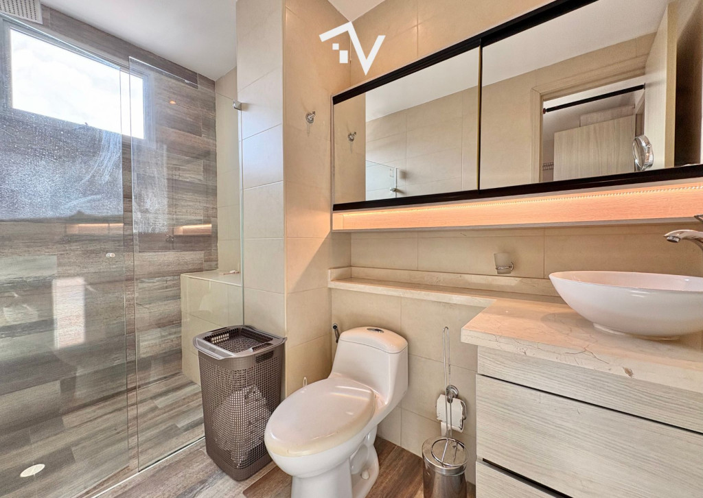 Ubicado en una cuadra residencial tranquila de Altos de Riomar, este apartamento de 177,28 m² se distingue por su ambiente fresco y por un cuidado diseño interior que transmite calidez y bienestar. El área social se abre hacia un balcón con vista al río, generando una agradable conexión con el exterior. Sala, comedor y estudio se disponen en espacios independientes, bien definidos y funcionales, ideales para la vida diaria y para recibir visitas con comodidad. Cuenta con tres habitaciones, cada una con su baño privado, cocina cerrada, cuarto y baño de servicio, y dos parqueaderos ubicados uno junto al otro. Los pisos en porcelanato aportan continuidad visual y facilidad de mantenimiento. Su orientación favorece la ventilación natural, haciendo del apartamento un espacio naturalmente fresco. El edificio, de fachada en ladrillo y construido en 2015, tiene 10 pisos con solo dos apartamentos por nivel, lo que mantiene un ambiente tranquilo y ordenado. Dispone de ascensor, planta eléctrica de suplencia total, y zonas comunes pensadas para el disfrute cotidiano: gimnasio y terraza en el último piso, además de una piscina pequeña y parque infantil en el primer nivel. El apartamento cuenta con leasing habitacional activo con BBVA, lo que permite una cesión del contrato y un proceso de adquisición más ágil, sin los costos de escrituración propios de una compraventa tradicional en esta etapa. Un hogar agradable, bien ubicado y pensado para vivir con calma y confort.