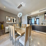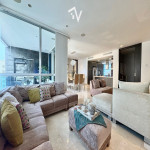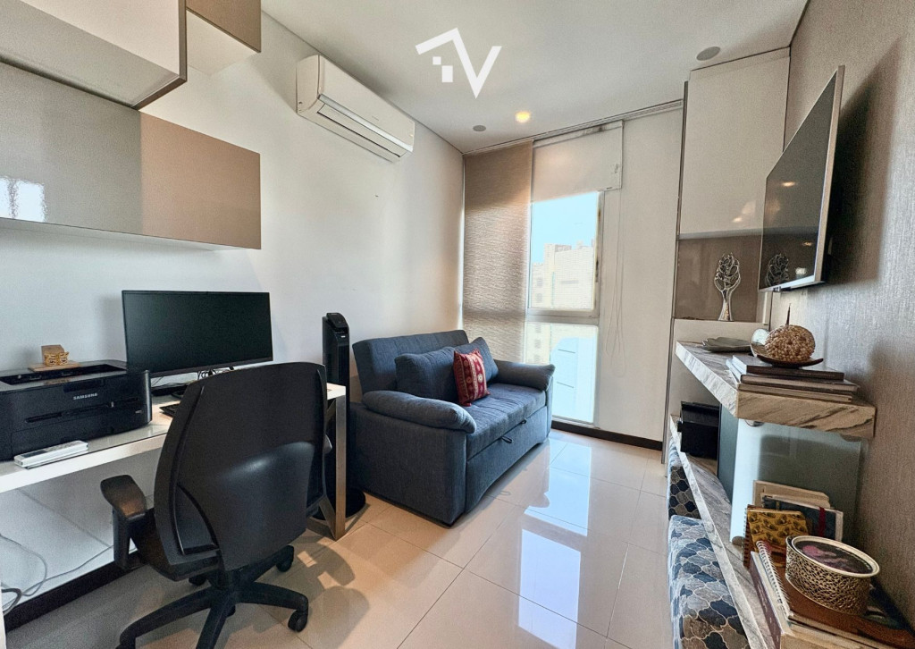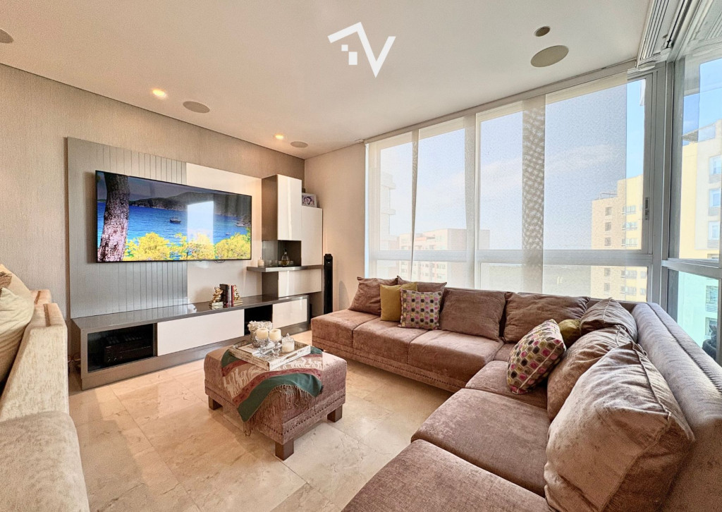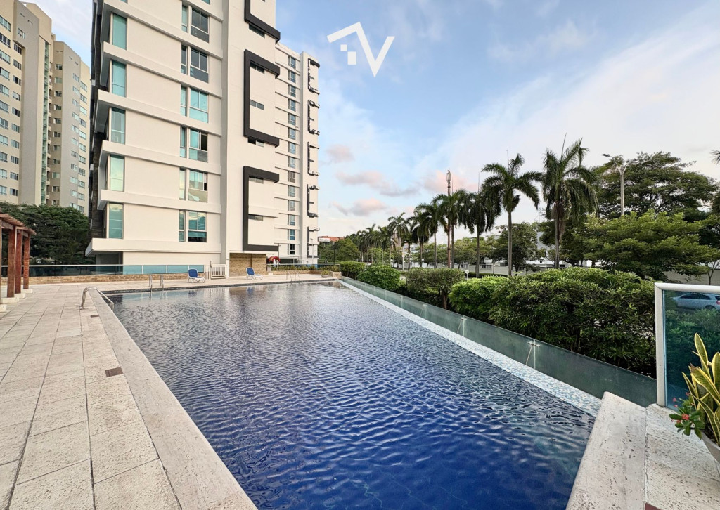 Un oasis en medio de la ciudad, en “la nueva Barranquilla”, (barrio La Castellana) en un condominio rodeado de verde vegetación nativa, modernos edificios, convenientes centros comerciales, excelentes vías de acceso, completas amenidades y seguridad. Mi recomendado de hoy es un confortable apartamento de área total construida 193.33M2 y privada 180.36M2, en piso 13, donde el ascensor principal entrega directamente al recibo acogedor y discreto. El área social en planta libre se abre imponente, integrando todos los ambientes: dos salas, comedor, terraza y cocina, con mucha iluminación natural, ventanales piso-techo, sombra y ventilación generando una sensación de bienestar y amplitud increíble. La zona íntima compuesta por un estudio-estar de alcobas con muchos muebles empotrados y espacio para almacenamiento y tres cómodas habitaciones, todas con baño privado y vestier.