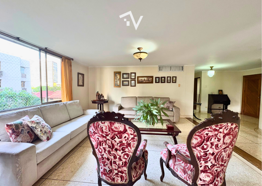 Sobre el boulevard de Villa Country, se encuentra este apartamento de 272 m², que conserva el encanto de los espacios amplios y bien distribuidos de los apartamentos de antes. Su diseño privilegia la comodidad y la funcionalidad: cuenta con sala, comedor, estudio, baño social, cocina, área de labores y alcoba de servicio con baño, además de un práctico clóset de ropa blanca. En la zona privada, se distribuyen tres habitaciones y un estar de alcobas que puede adaptarse como cuarta habitación. Las alcobas principales, de aproximadamente 5 x 4 m² y 4 x 4 m², ofrecen una excelente iluminación natural y una sensación de amplitud difícil de encontrar hoy. En total, dispone de tres baños completos. El apartamento incluye bodega independiente y dos garajes privados cubiertos. El edificio, de 11 pisos y solo 10 apartamentos, donde los vecinos se convierten en amigos y goza de un jardín encantador, donde los niños aún pueden correr y jugar con libertad. Además, cuenta con parqueaderos internos descubiertos para visitantes.
