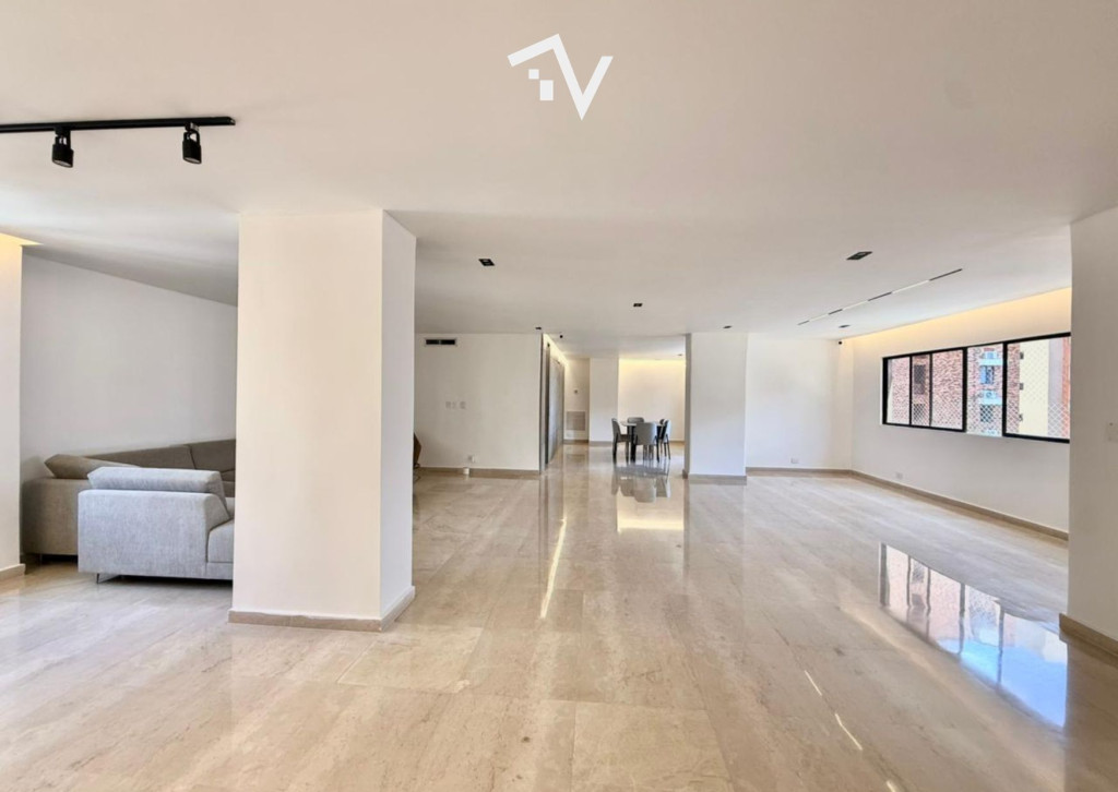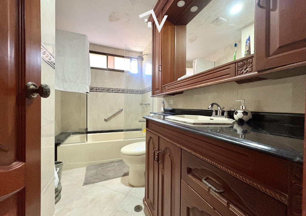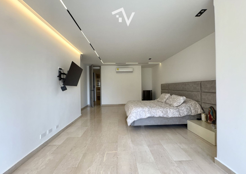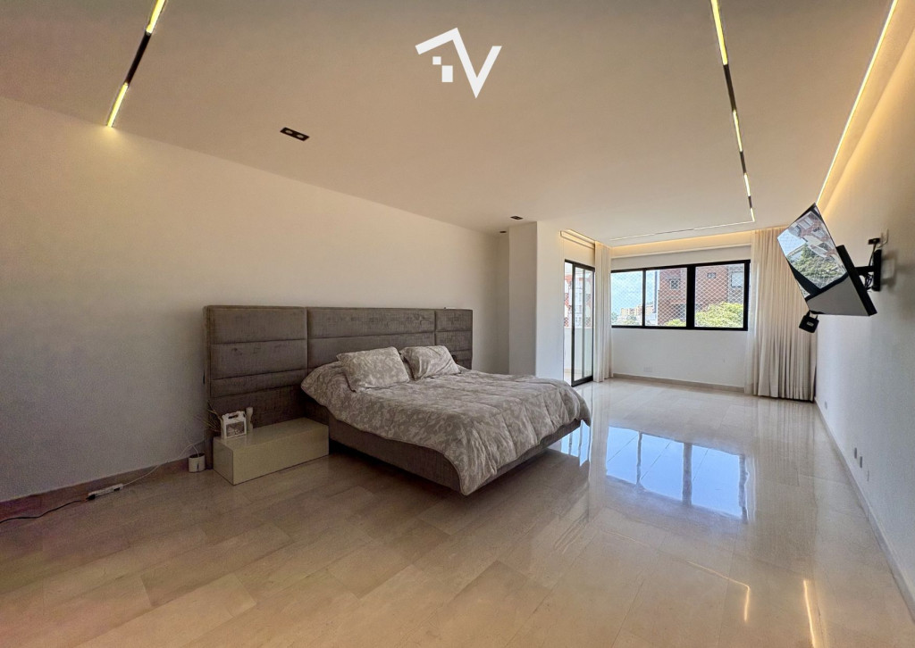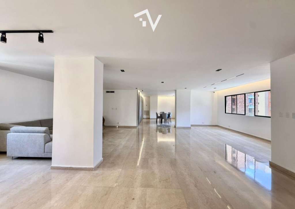 El verdadero lujo: espacio sin restricciones. En Villa Country, este apartamento de 395 m² en planta completa redefine la amplitud como punto de partida. Aquí, cada ambiente respira, se expande y encuentra su lugar sin esfuerzo. El ascensor llega directo al interior, abriendo paso a una zona social generosa donde sala, comedor y estudio conviven en proporciones amplias y bien definidas. La luz recorre los espacios con naturalidad, potenciando la sensación de apertura que solo este metraje permite. La distribución privada mantiene esa misma lógica: cuatro habitaciones de gran tamaño, cada una con su baño, pensadas para una vida cómoda y sin limitaciones. La habitación principal incorpora walking closet y un balcón íntimo, reservado, como un pequeño escape dentro del mismo hogar. Un estar de alcobas complementa este sector con funcionalidad. La cocina es cerrada y eficiente, acompañada de zona de labores y servicio. La iluminación domotizable suma una capa adicional de control y ambientación a los espacios. Tres parqueaderos independientes y tres depósitos resuelven con holgura las necesidades prácticas. El edificio, de aproximadamente 30 años, responde a una arquitectura de otra época: una sola residencia por piso, estructura sólida y espacios que hoy son difíciles de encontrar. Cuenta con planta eléctrica de suplencia total y zonas comunes como piscina, gimnasio, salón social y área infantil. Una propiedad donde el valor está claro: metros, distribución y privacidad.