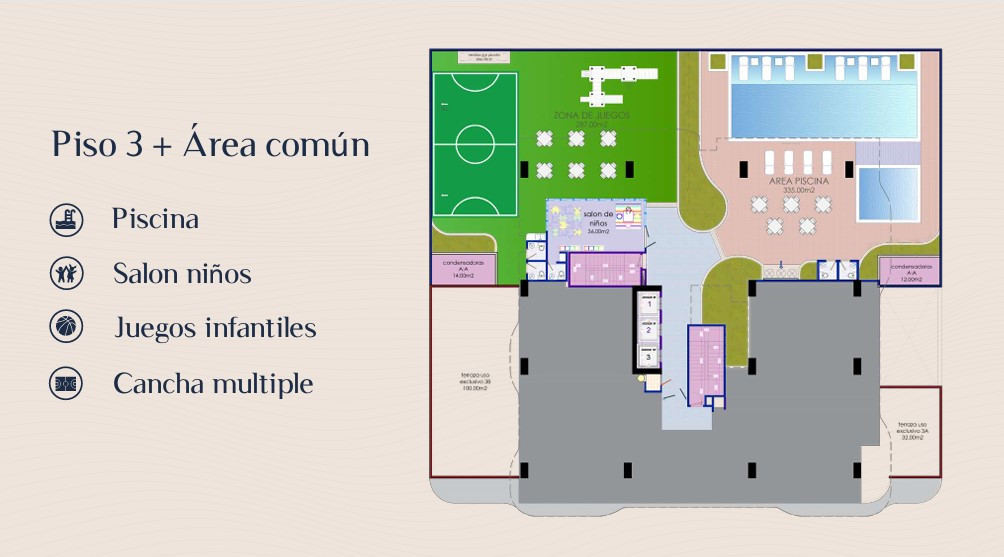 Un proyecto que se siente antes de habitarse. Frente al emblemático Boulevard de Villa Country se desarrolla Brezza —brisa en italiano—, una propuesta concebida para quienes valoran la calma, la proporción y los detalles bien pensados. Un proyecto en etapa de construcción, con entrega estimada hacia finales de 2028, respaldado por Conterra SAS. Este apartamento, disponible sobre plano, propone 140 m² construidos (129.61 m² privados) donde la arquitectura contemporánea se expresa en alturas generosas y materiales sobrios: pisos en mármol en formato longitudinal y una altura libre que favorece la luz y la ventilación natural. La distribución contempla tres habitaciones, cada una con su baño, además de cuarto y baño de servicio, con una vista orientada hacia la calle 79. El edificio, de construcción tradicional y fachada en ladrillo claro, ha sido pensado para acompañar el ritmo del sector con discreción y solidez. Contará con 20 pisos, cuatro apartamentos por nivel ( de 140M2, 170M2, 188M2 y 220M2,) desde el piso 4, y una oferta completa de espacios comunes: piscina, zona húmeda, gimnasio, salón social, terraza con vista al Boulevard, teatrino, sala de juntas, área infantil y cancha múltiple. Una inversión que toma forma con el tiempo, en una ubicación que ya está consolidada.