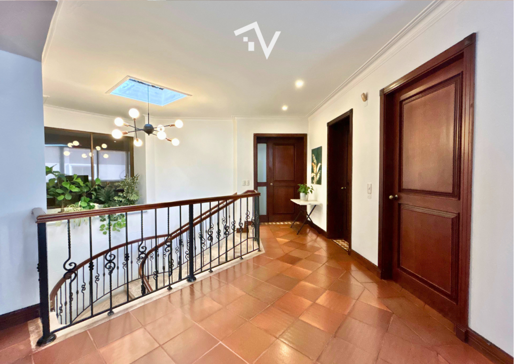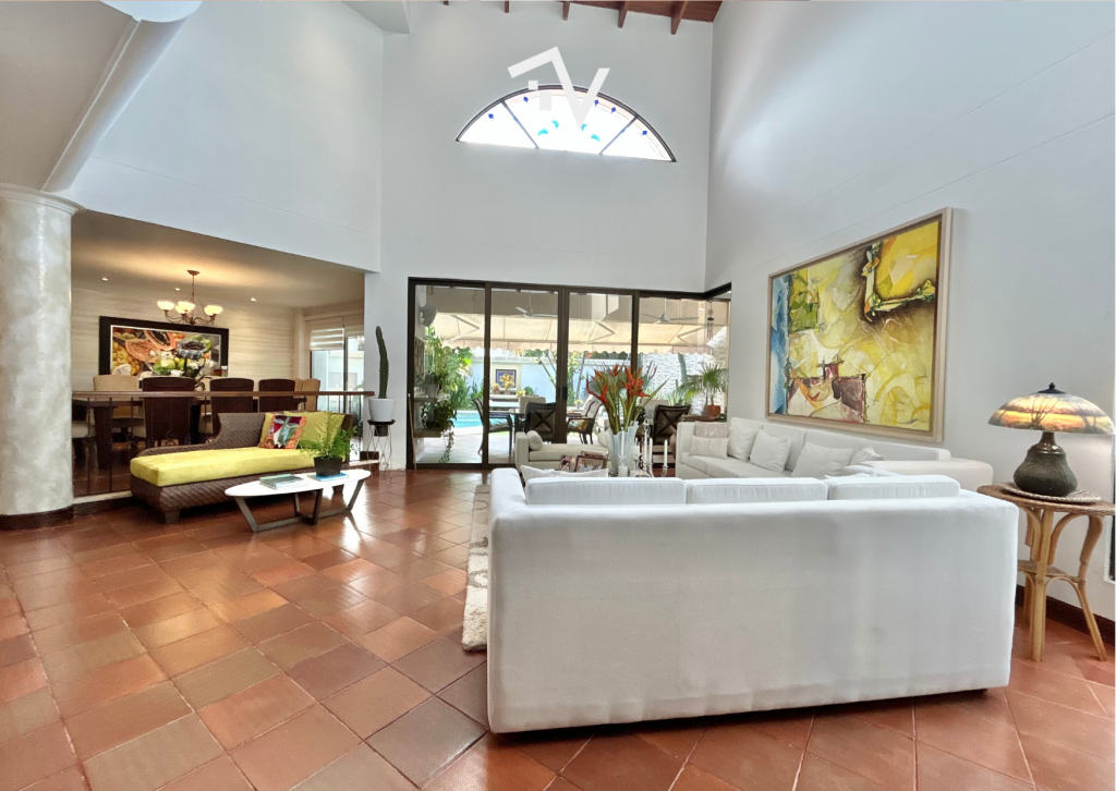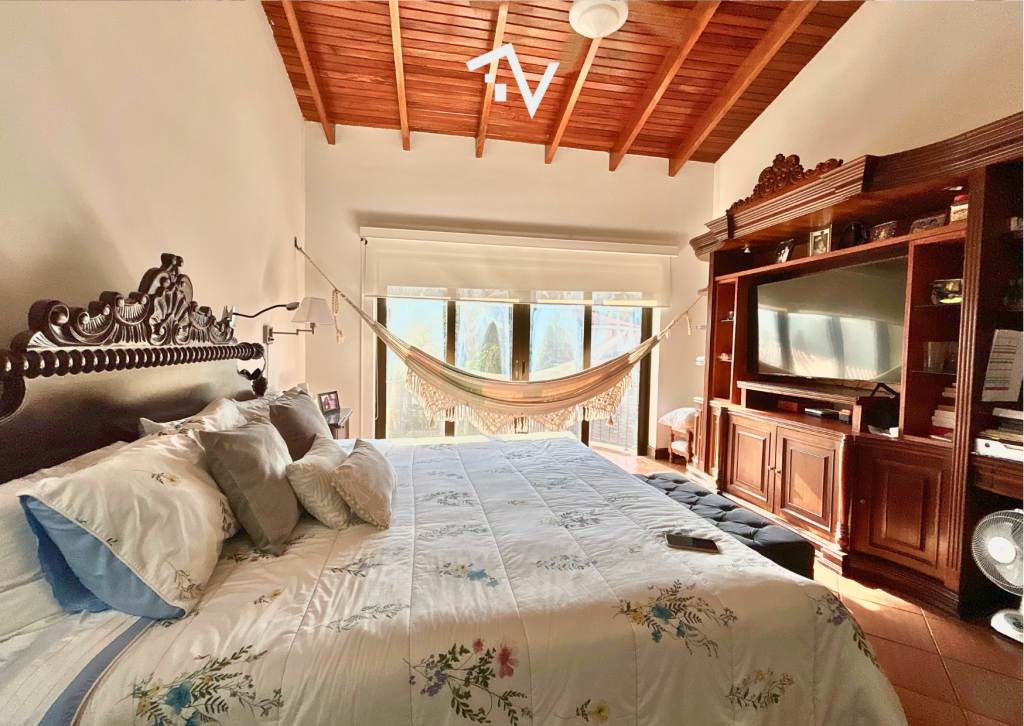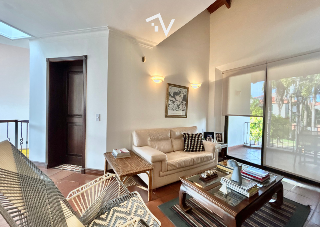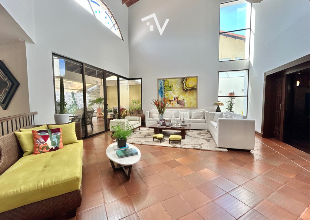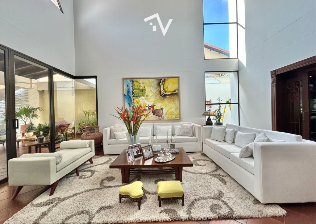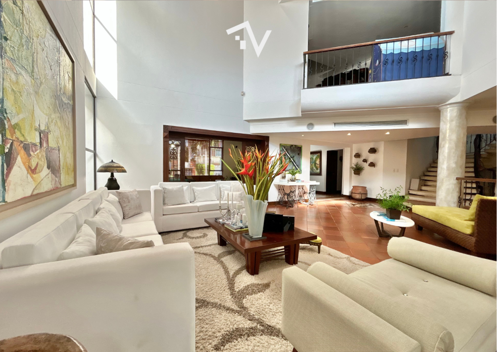 Vive con estilo, comodidad y sostenibilidad. Casa exclusiva en Lomas de Villa Campestre, con un área de 651 m² construidos sobre un lote de terreno de 749.7 m². Conjunto cerrado con vigilancia 24/7. Distribución: Sala amplia, comedor independiente, estudio privado, cocina integral, baño social, área de servicio, lavadero y patio de ropas, alcoba y baño para celador o personal de servicio, sauna y baño para piscina. Cuatro habitaciones, cada una con baño privado, vestier, habitación principal con oficina privada adicional, cuarto pequeño de ejercicios, clóset de ropa blanca. Garaje cubierto para 4 vehículos cómodamente (capacidad total hasta 6 carros), piscina privada. Equipamiento y tecnología: Catorce paneles solares con batería de reserva (autonomía de más de 2 horas en caso de cortes nocturnos). Sistema de motobomba con dos tanques elevados de agua. Dos aires acondicionados centrales inverter nuevos (solo 3 meses de uso – cubren sala, comedor y estudio). Punto de carga eléctrica 220V para automóvil en el garaje.