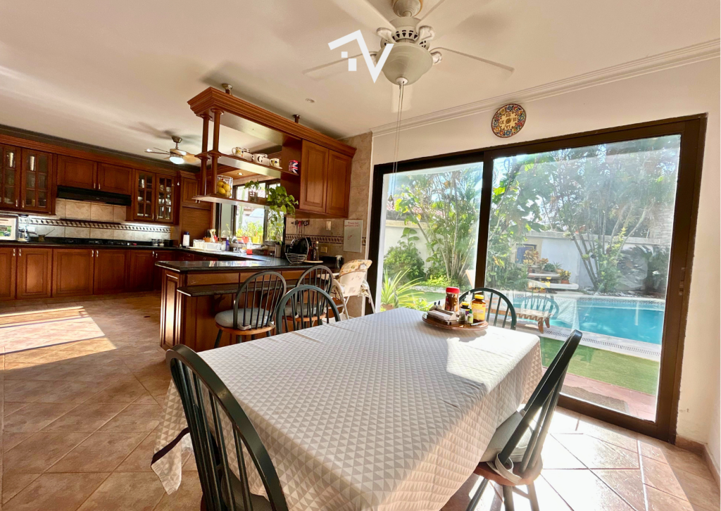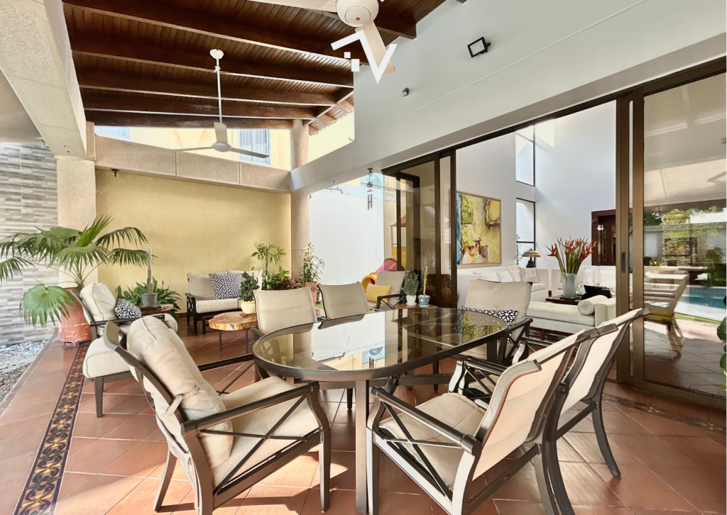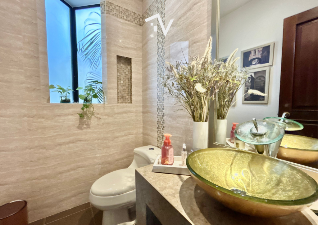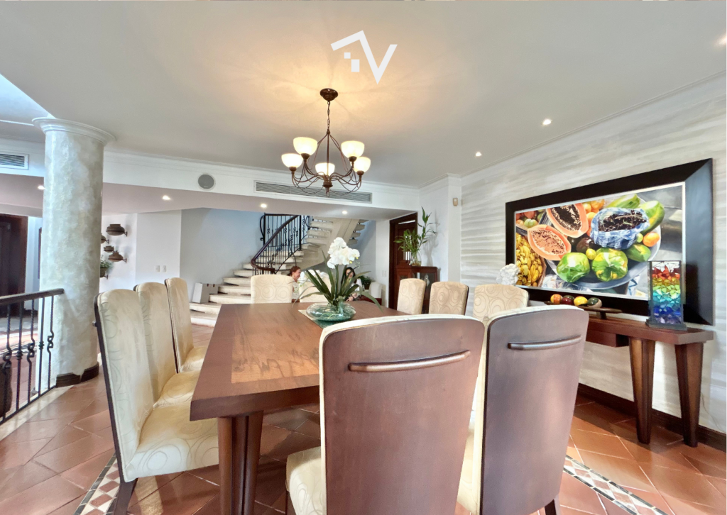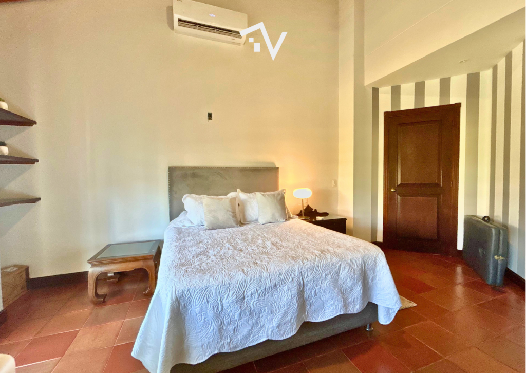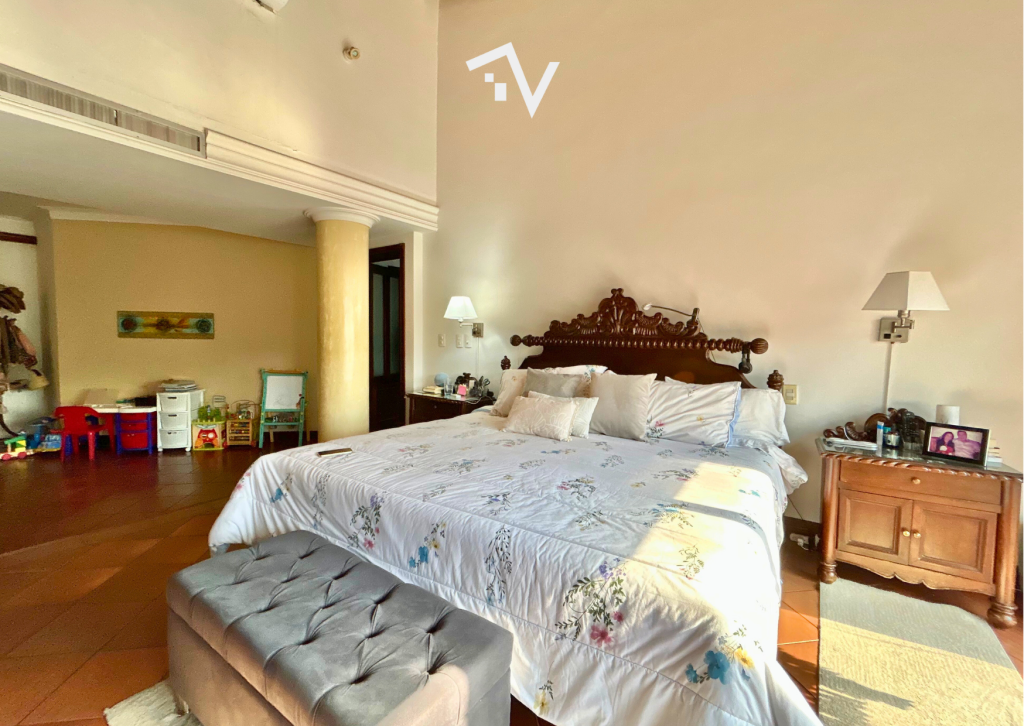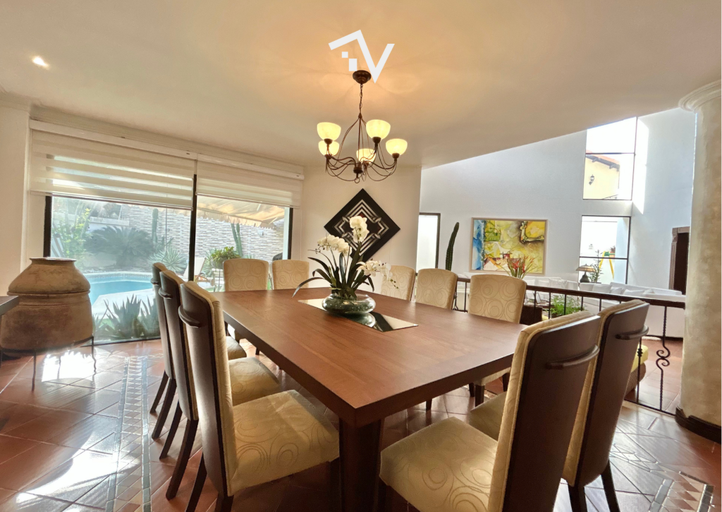 Vive con estilo, comodidad y sostenibilidad. Casa exclusiva en Lomas de Villa Campestre, con un área de 651 m² construidos sobre un lote de terreno de 749.7 m². Conjunto cerrado con vigilancia 24/7. Distribución: Sala amplia, comedor independiente, estudio privado, cocina integral, baño social, área de servicio, lavadero y patio de ropas, alcoba y baño para celador o personal de servicio, sauna y baño para piscina. Cuatro habitaciones, cada una con baño privado, vestier, habitación principal con oficina privada adicional, cuarto pequeño de ejercicios, clóset de ropa blanca. Garaje cubierto para 4 vehículos cómodamente (capacidad total hasta 6 carros), piscina privada. Equipamiento y tecnología: Catorce paneles solares con batería de reserva (autonomía de más de 2 horas en caso de cortes nocturnos). Sistema de motobomba con dos tanques elevados de agua. Dos aires acondicionados centrales inverter nuevos (solo 3 meses de uso – cubren sala, comedor y estudio). Punto de carga eléctrica 220V para automóvil en el garaje.