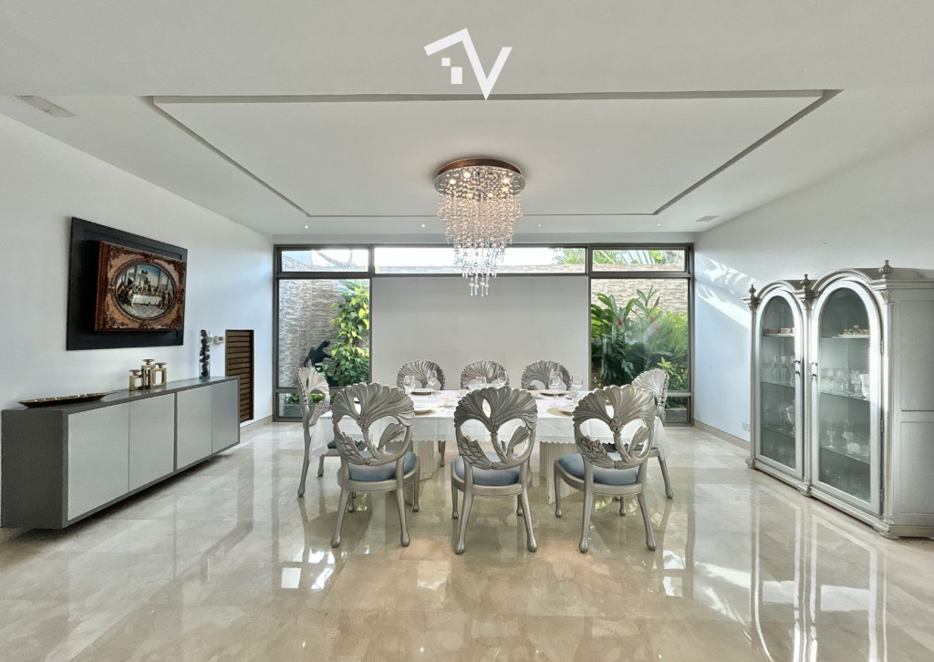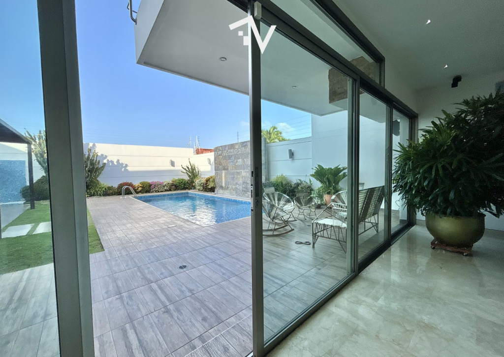 Casa con piscina privada ubicada en uno de los conjuntos tradicionales de Villa Campestre, rodeado de amplias residencias y una atmósfera tranquila. Desde el ingreso, una doble altura marca la llegada y aporta una sensación inmediata de amplitud. Los pisos en mármol recorren las áreas sociales, aportando continuidad y sobriedad al conjunto. La casa se desarrolla en dos plantas y un sótano, con una arquitectura contemporánea que privilegia la amplitud, la luz natural y la relación con el exterior. Las zonas sociales se componen de dos salas, comedor independiente y una amplia cocina, además de baño social, cuarto y baño de servicio. Hacia el interior de la propiedad, los espacios se abren hacia la piscina privada y la zona BBQ, creando un ambiente sereno y reservado para disfrutar la casa con tranquilidad. El sótano ha sido acondicionado como sala de música y bar con baño, un espacio pensado para encuentros más íntimos. En el área familiar, 4 habitaciones, cada una con su baño y walking closet, garantizando comodidad e independencia. Además cuenta con ascensor, que conecta los niveles principales. En el exterior, la piscina, la zona BBQ y el baño para el área húmeda completan un entorno pensado para disfrutar la vida en casa con discreción y comodidad.