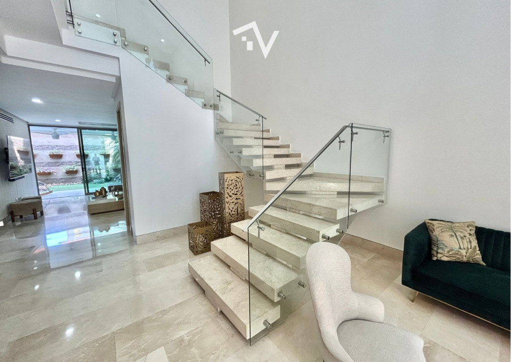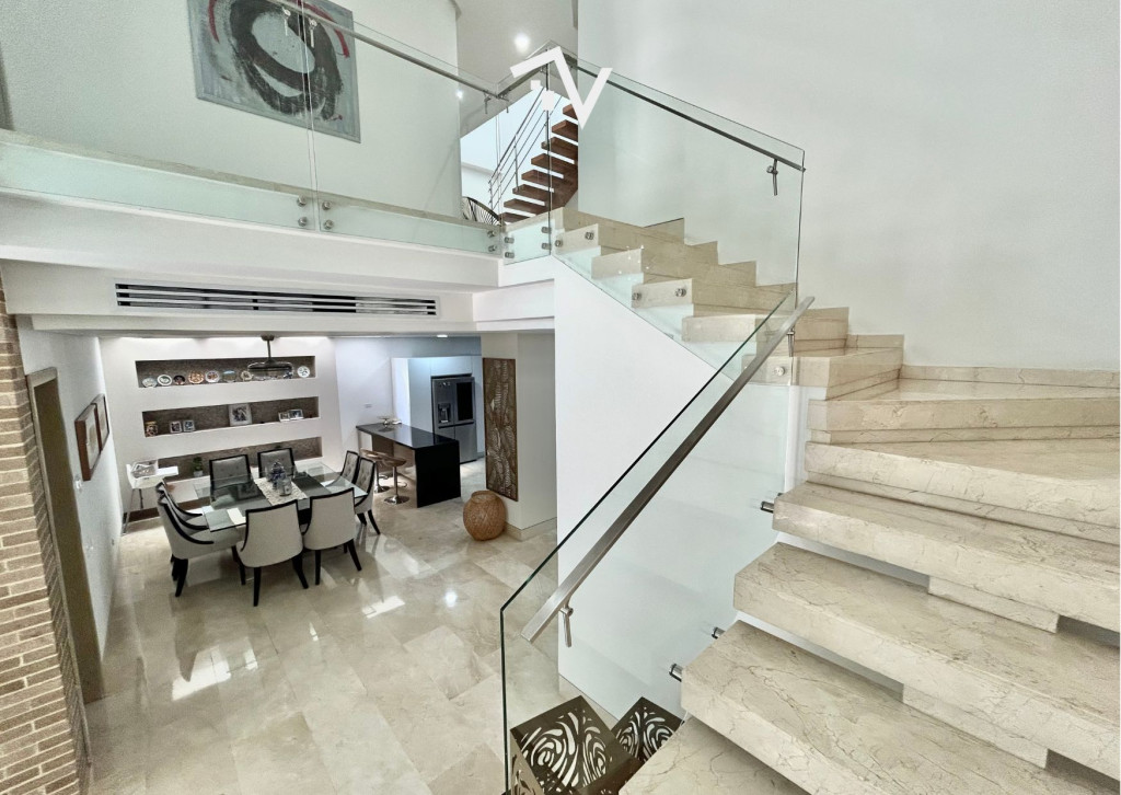 En el exclusivo condominio se encuentra esta impresionante casa con un total de 378 metros cuadrados distribuidos de manera elegante y funcional. Sala de recibo, sala, comedor, zona de labores, patio, baño social, estar de alcobas, cuatro habitaciones cada una con su baño, cuarto y baño de servicio. Gran terraza mirador en el tercer piso, con puntos para instacion de jacuzzi. Pisos de mármol. Cuenta con cuatro parqueaderos, para dos vehiculos internos y dos externos Su diseño moderno y acabados de alta calidad la convierten en una verdadera joya arquitectónica. Disfruta de amplios espacios, luminosidad y privacidad en cada rincón de esta propiedad. El conjunto cuenta con vigilancia armada 24 horas, piscina, jacuzzi, turco, sauna, gimnasio, terraza, gran salón social.