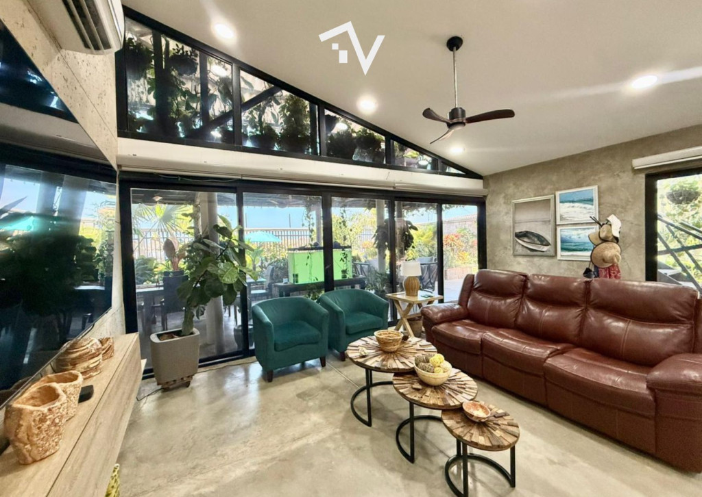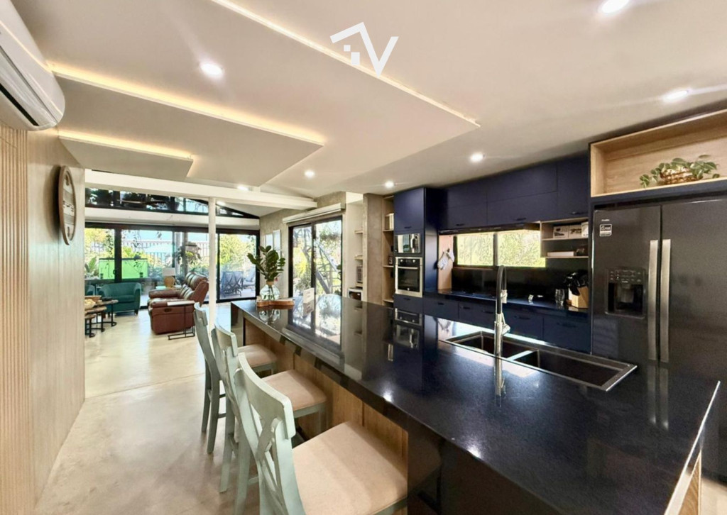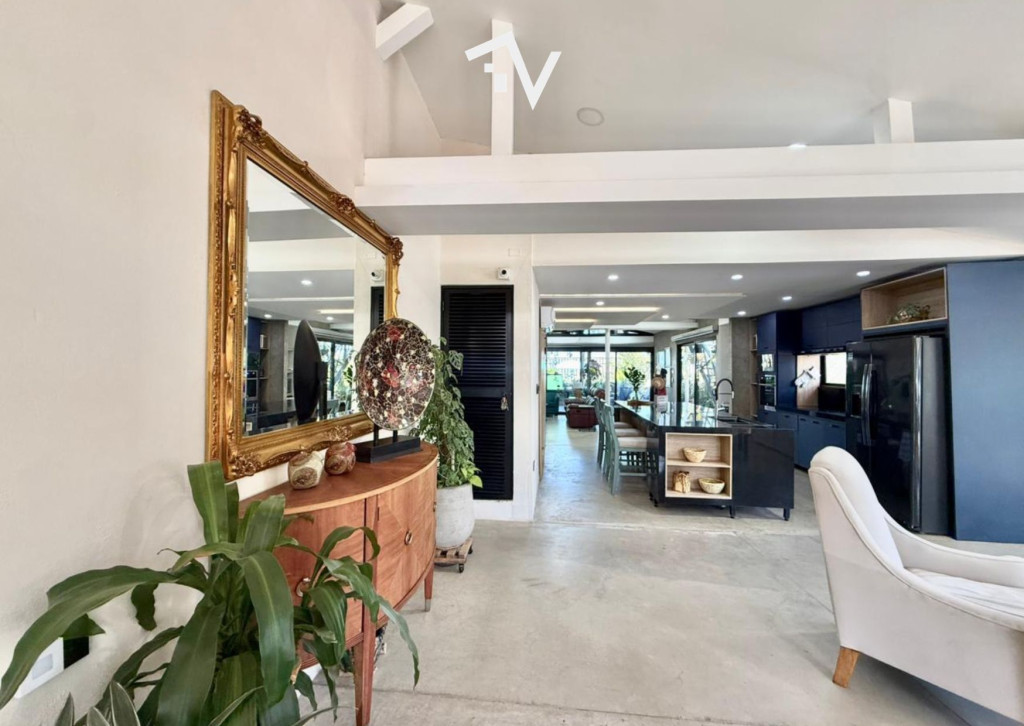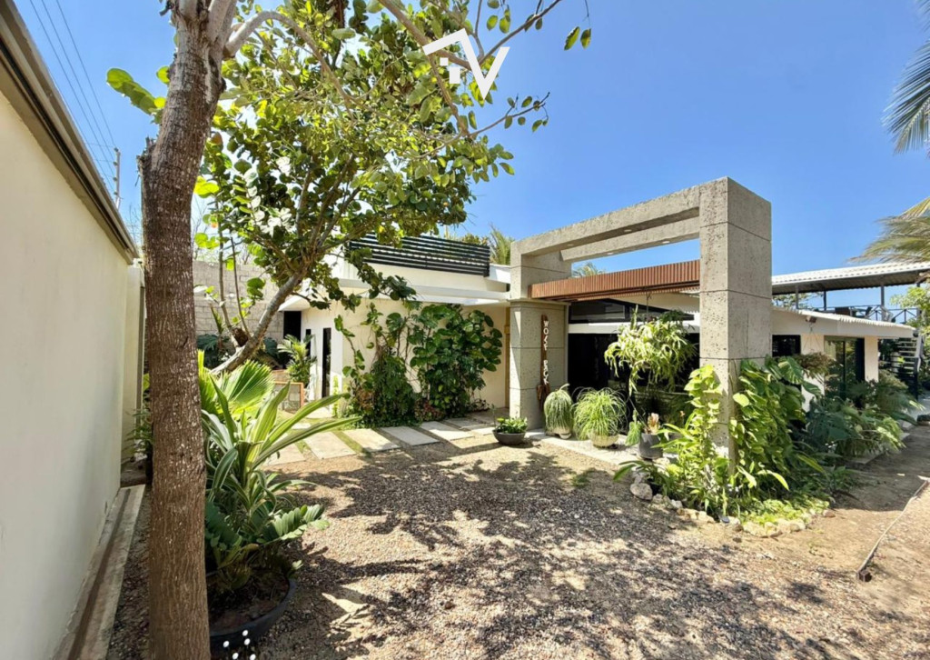 Cerca del faro “Ventana de Sueños”, esta propiedad ofrece lo que muy pocas pueden: salida directa a la playa de Pradomar desde su propio patio. Aquí el frente no es el protagonista. La verdadera escena se abre hacia atrás, donde el sonido del oleaje y la brisa marina marcan el ritmo de cada día. Desarrollada en una sola planta, la casa fue concebida para disfrutarse sin protocolos, con una arquitectura abierta y materiales honestos como el concreto pulido, que dialogan con su esencia costera. Al ingresar, un amplio espacio social integra la sala principal con una cocina abierta equipada con pantry, estufa de inducción, lavavajillas y despensa, además de cuarto eléctrico y sistema de CCTV. A continuación, una segunda sala se conecta, a través de grandes ventanales, con la terraza y el patio. Desde allí se contempla el mar y, si así lo decides, simplemente abres el cerramiento y sales caminando directo a la playa. La casa está climatizada con minisplits por zonas. Dispone de 5 habitaciones amplias, cada una con baño privado; 2 baños sociales (uno interior y otro exterior); ducha externa y lavapiés pensados para después del mar; cuarto-baño de servicio; cocina oculta, ideal para preparaciones propias de la playa; área de ropas; un contenedor mimetizado con el exterior que cumple función de depósito; y un mezzanine 61.7M2 con vista al mar. Una propiedad donde el lujo está en la libertad: caminar descalzo, recibir amigos sin formalidades y tener el mar como extensión de la casa.