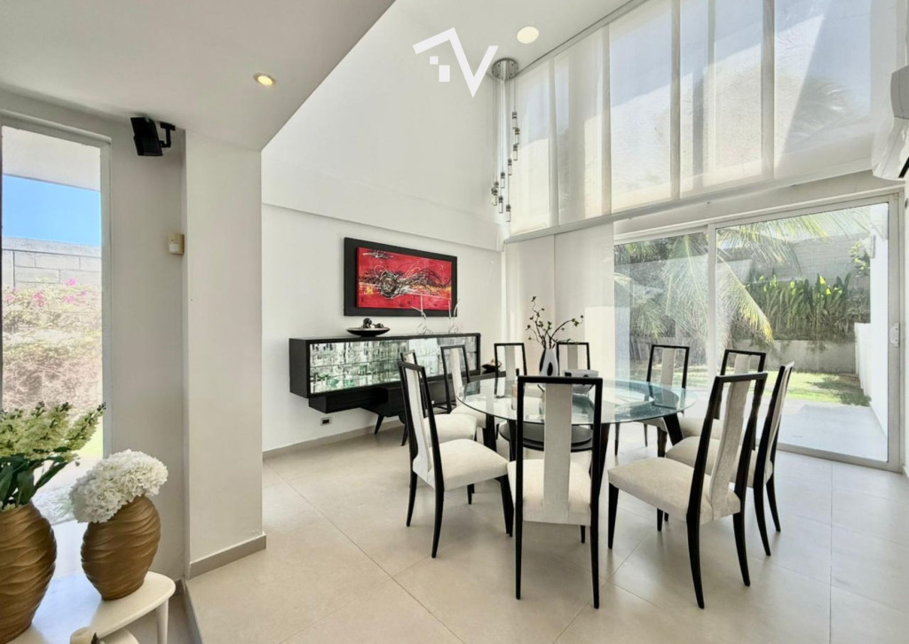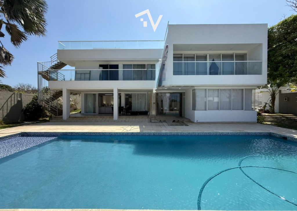 Casa en Pradomar – Sector Castillo de Salgar. En uno de los sectores más tradicionales y apetecidos de la zona costera atlanticense, se encuentra esta propiedad de 800 m² construidos sobre un lote esquinero de 1.200 m², concebida para disfrutarse como un verdadero segundo hogar frente al mar. La arquitectura privilegia los espacios abiertos y la vida social. En el primer nivel, dos salas y el comedor se integran en un ambiente amplio que se proyecta hacia el patio y una piscina de 5 x 14 metros, creando el escenario perfecto para reuniones, descanso y días de verano sin prisa. La casa cuenta con cocina cerrada, área de ropas, cuarto y baño de servicio, apartamento independiente para el personal y planta eléctrica. En el segundo nivel, un estar de alcobas distribuye cuatro habitaciones con baño privado y balcón. La suite principal ofrece vestier, baño con doble lavamanos, terraza privada y una vista privilegiada hacia las playas y el Castillo de Salgar. A pocos minutos en carro, la playa y los restaurantes con servicio frente al mar complementan el estilo de vida y el entorno y la vista permanente al mar convierten esta propiedad en un refugio ideal para quienes buscan amplitud, privacidad y un lugar donde desconectarse sin salir del Caribe. Una casa pensada para vivir fines de semana largos, vacaciones familiares y momentos que merecen repetirse.