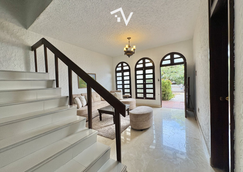 En Santa Mónica, sobre un lote generoso de 377 m² y 324 m² construidos, en acera sombra, esta propiedad de aproximadamente 48 años guarda algo que hoy escasea: proporciones, independencia en sus espacios y una estructura que permite replantearla con carácter propio. Desde el acceso, la casa marca una distribución clara: sala principal, baño social y una escalera que no solo conecta, sino que separa sutilmente los ambientes. Una segunda sala se abre paso hacia el comedor independiente y, a través de puertas en madera con vidrio, aparece un estar que funciona perfecto como sala de TV o zona de entretenimiento, con vista directa al jardín. El primer nivel, revestido en mármol crema, se complementa con una cocina independiente de estilo industrial, patio de ropas, alcoba y baño de servicio. Afuera, el espacio suma valor: garaje para dos vehículos, un callejón con capacidad para tres más, y un patio con árboles frutales y zona de barbacoa. En el segundo piso, la zona privada: tres alcobas, dos con baño interno, una con baño externo, y un estudio que fácilmente puede convertirse en una cuarta habitación. Sí, es una casa que requiere actualización. Baños, carpintería y cocina conservan su época. Pero ahí está precisamente su oportunidad: no pagas por acabados que vas a cambiar. Aquí partes de una estructura sólida y espacios bien resueltos para diseñar algo verdaderamente a tu medida. Más que una casa terminada, es un punto de partida con criterio.