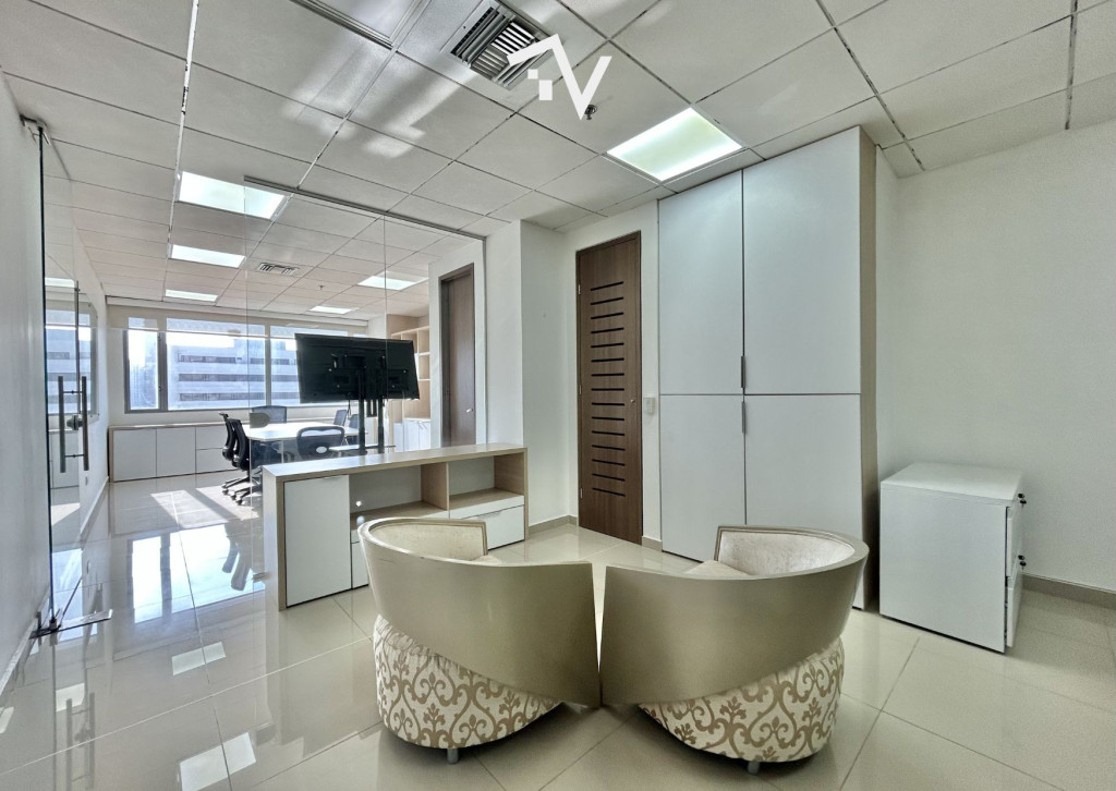 Se arrienda oficina de 55 m² totalmente amoblada. Haz que tu empresa esté donde realmente importa. Los negocios se construyen a partir de relaciones, y estas comienzan en espacios que transmiten confianza, comodidad y profesionalismo. Esta oficina te ofrece el entorno ideal para recibir a tus clientes: fácil acceso, parqueadero cómodo, ascensor de alta velocidad y un ambiente fresco con excelente iluminación natural y una agradable vista exterior. Disfruta de un espacio diseñado para la productividad, donde cada detalle suma: lobby a doble altura, planta eléctrica de suplencia total, cafetería, ventanería termoacústica de alta categoría en vidrio laminado, 20 Pisos, 6 ascensores, 7 niveles de parqueos, 440 parqueaderos, locales comerciales con mezzanine, sala de juntas, salón de conferencias, baños para damas y para caballeros en cada piso, escalera presurizada con puerta cortafuegos, sistema de sprinklers (rociadores), detectores de humo, shut de basuras, ascensor de tráfico invertido para parqueos de visitantes. Imagina recibir a tus clientes con un buen café en un lugar que refleja la calidad de tu marca. ¿Te gustaría llevar tu negocio a este nivel? Contáctanos y agenda tu visita.
