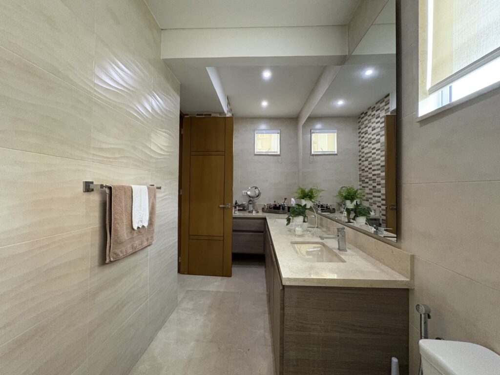 La habitación principal es un santuario impoluto, tipo suite de hotel boutique, con dos vestieres independientes (his and hers), su baño muy confortable e iluminado.