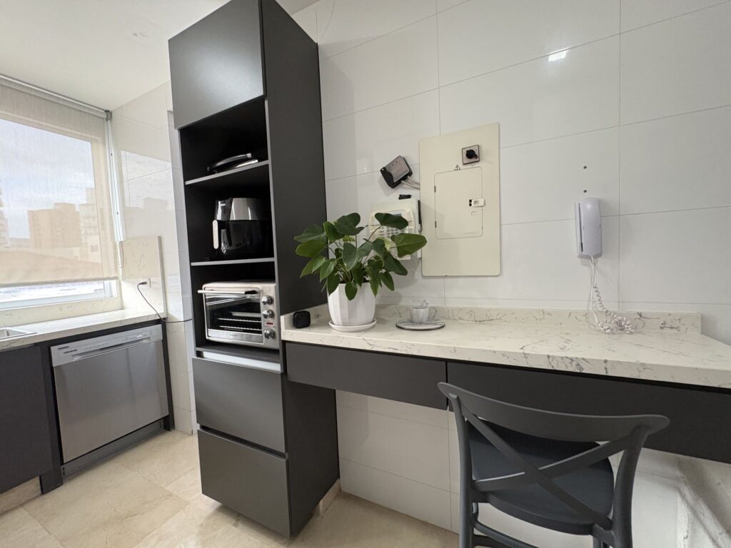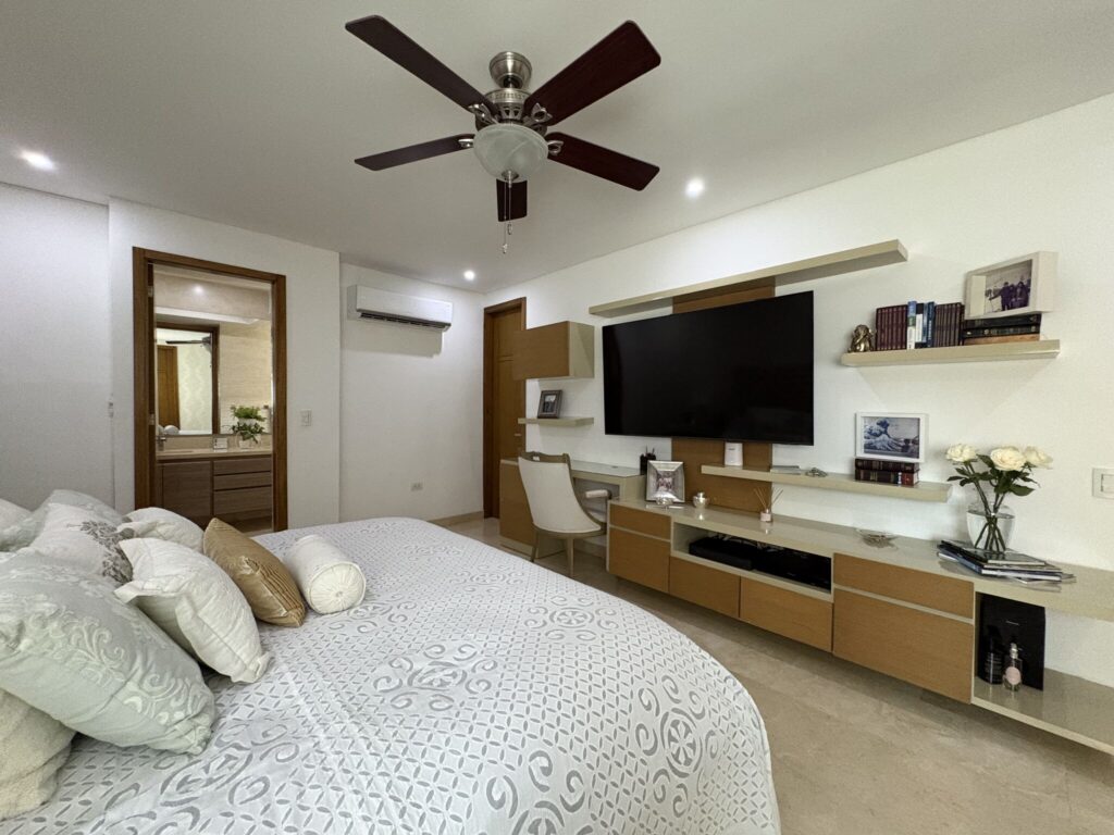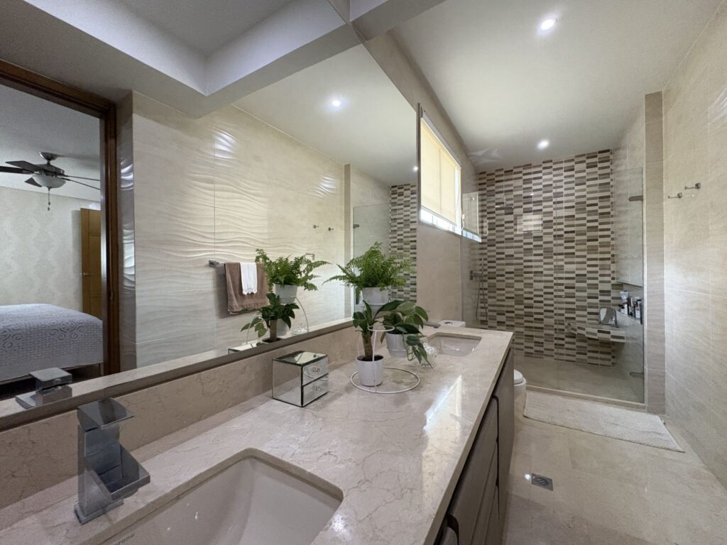 Todos sus pisos en mármol crema, impecablemente mantenido, con una funcional cocina cerrada recientemente remodelada, zona de lavandería y alcoba y baño de servicio.
