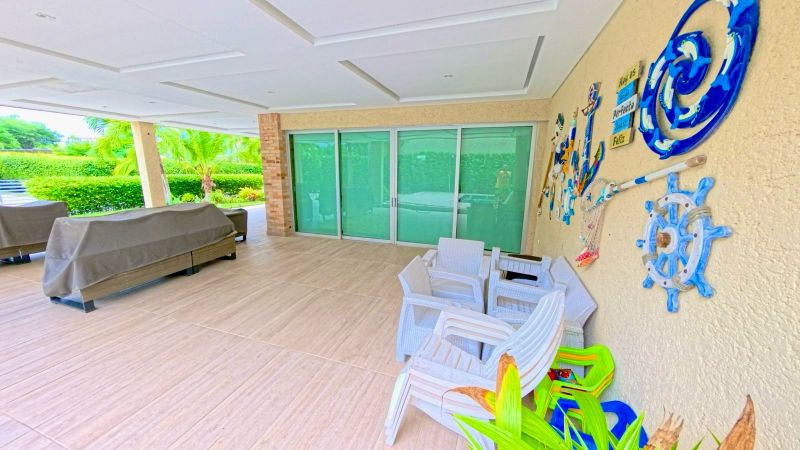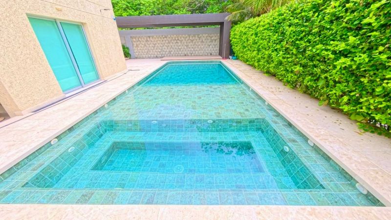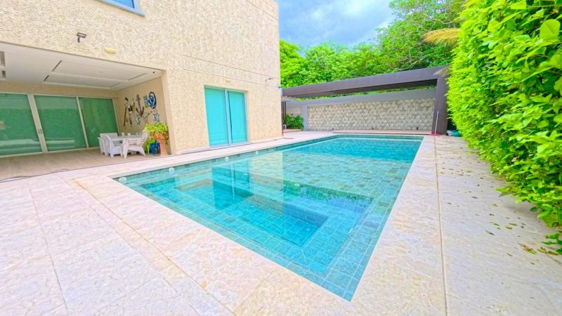 Exteriores de lujo:Jardines tropicales, terraza perimetral, piscina con chorros de agua y pagoda ideal para disfrutar de inolvidables atardeceres.