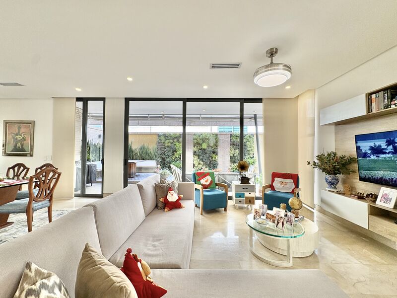 Luminosidad, a través de sus grandes ventanales se inundan de luz todas sus estancias, integrando la vegetación tropical de su jardín y terraza privada con el interior de la vivienda.