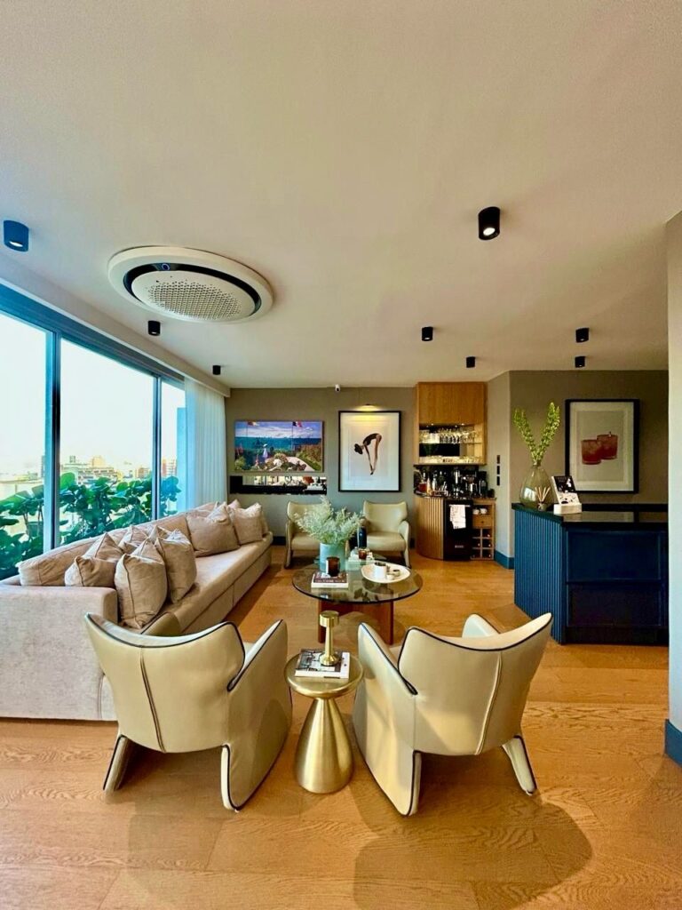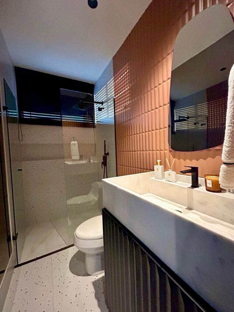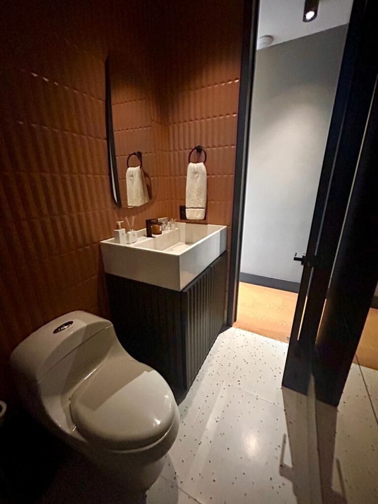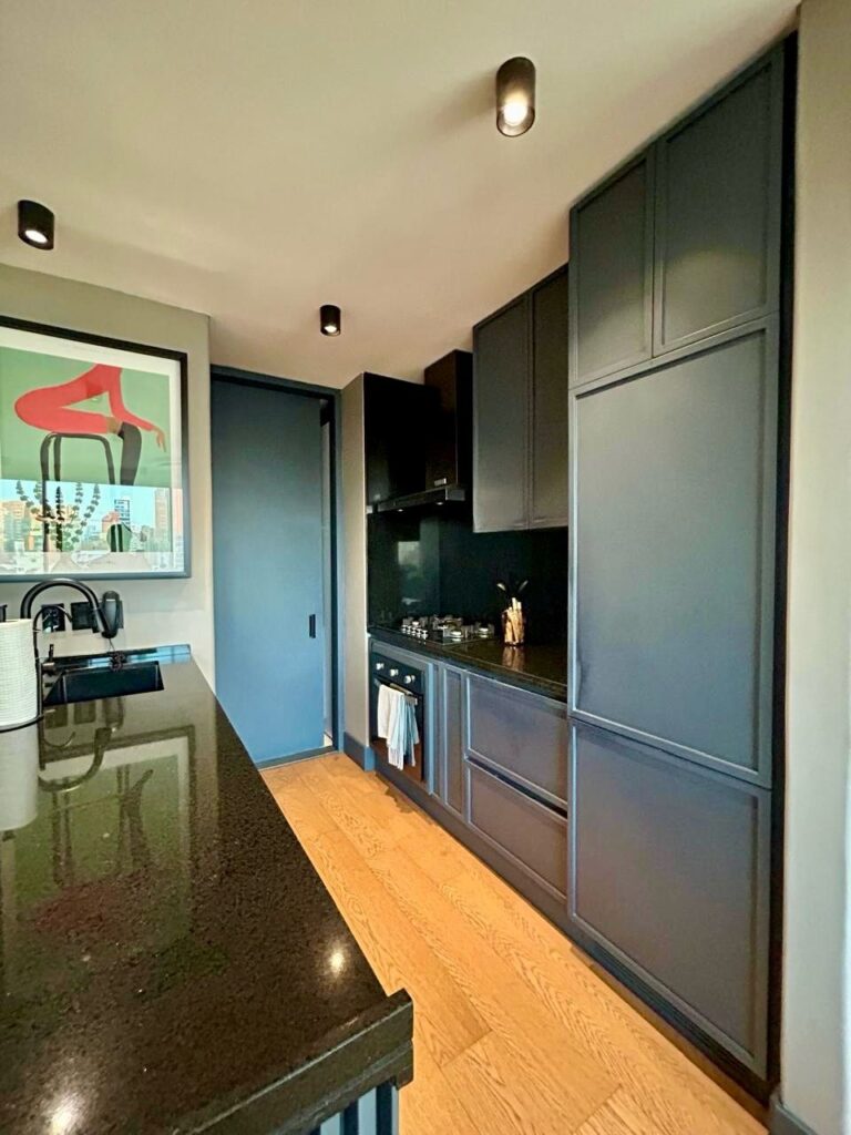 Diseñado para solteros o parejas sin hijos que entienden que vivir bien también es disfrutar, este espacio combina pisos en madera, tonos oscuros y una estética contemporánea que se siente sofisticada desde el primer paso.
