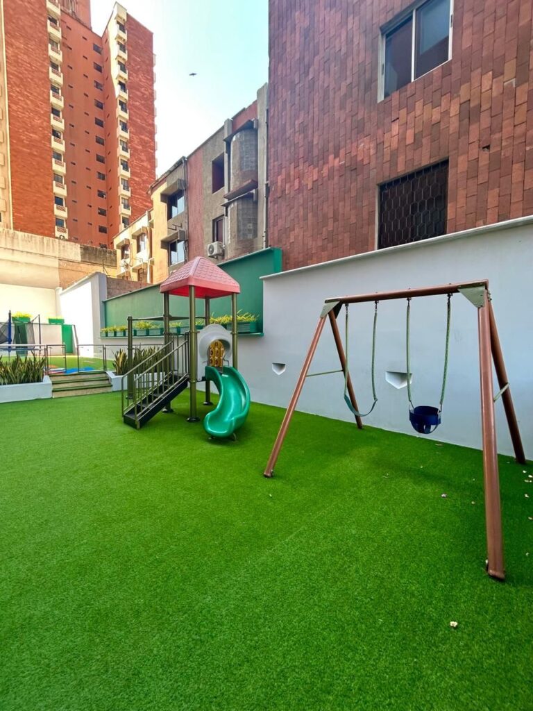 El edificio, con menos de 10 años de construcción, eleva la experiencia con una espectacular piscina en la azotea con vista panorámica, gimnasio completamente dotado con vista al skyline de la ciudad, planta eléctrica de suplencia total, dos ascensores, vigilancia privada 24/7 y parqueaderos para visitantes.