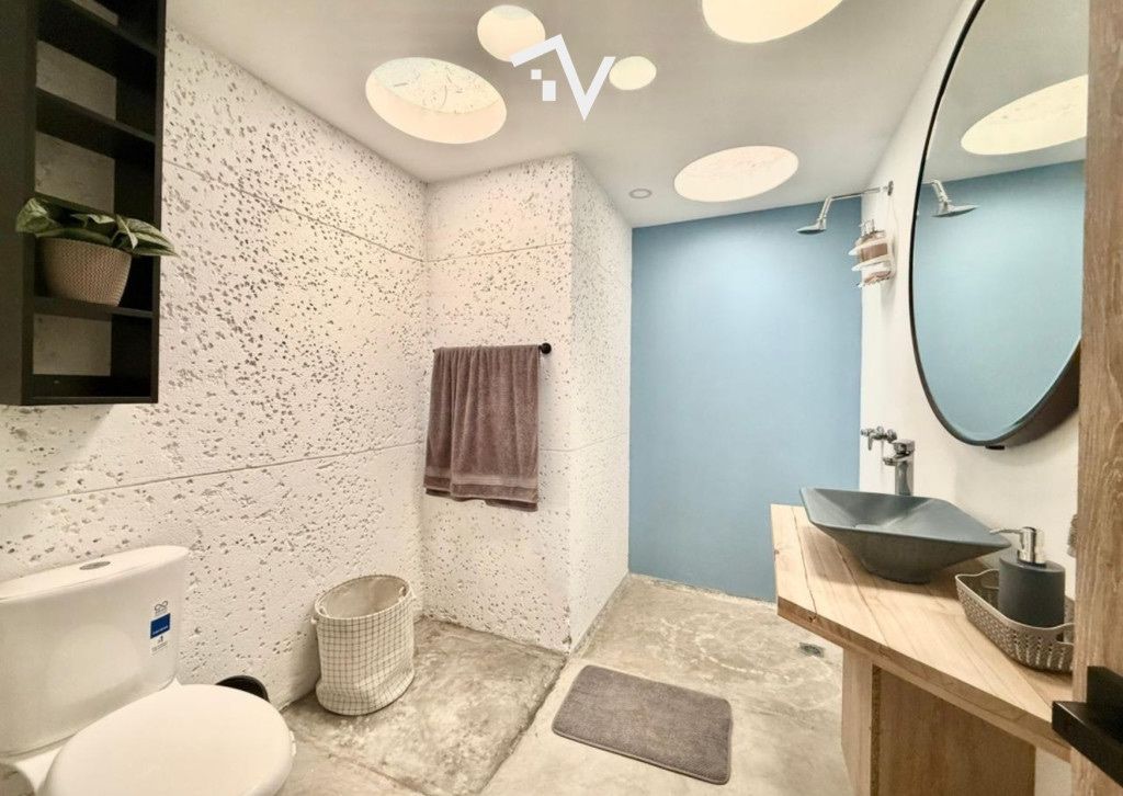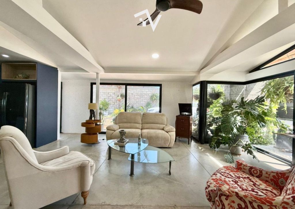 Una segunda sala se conecta a través de grandes ventanales con la terraza y el patio. Desde allí se contempla el mar… y si así lo decides, simplemente abres el cerramiento y caminas directo a la playa.